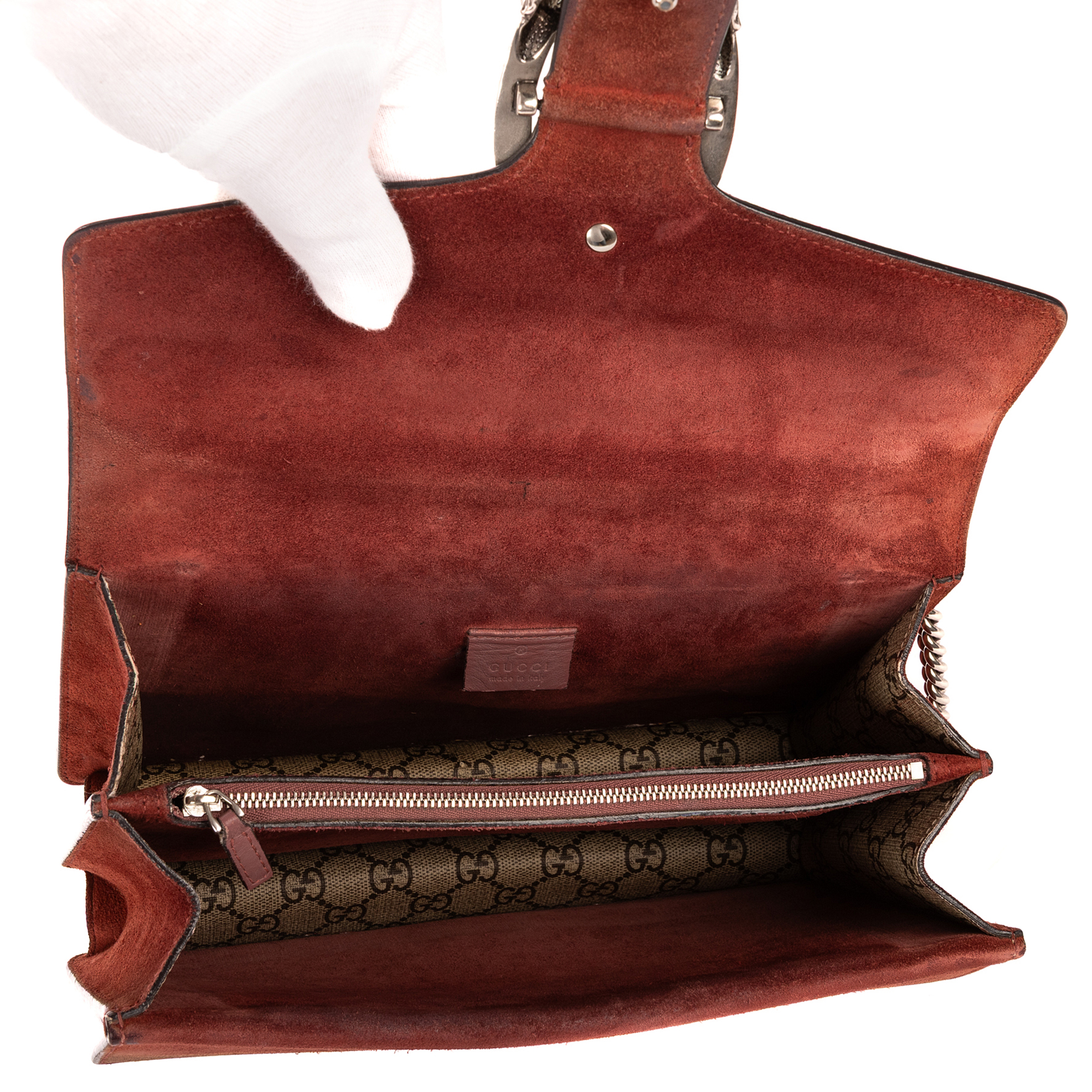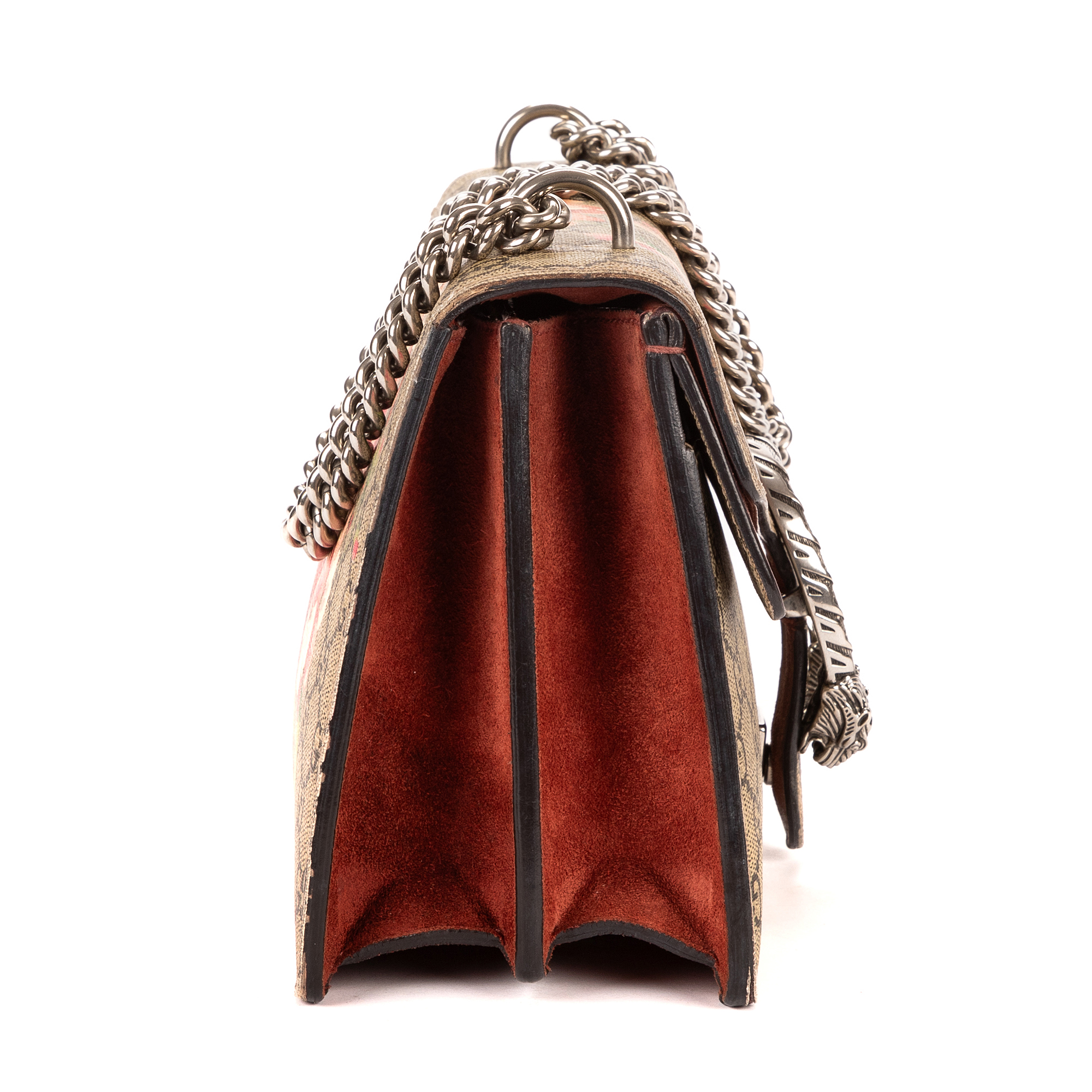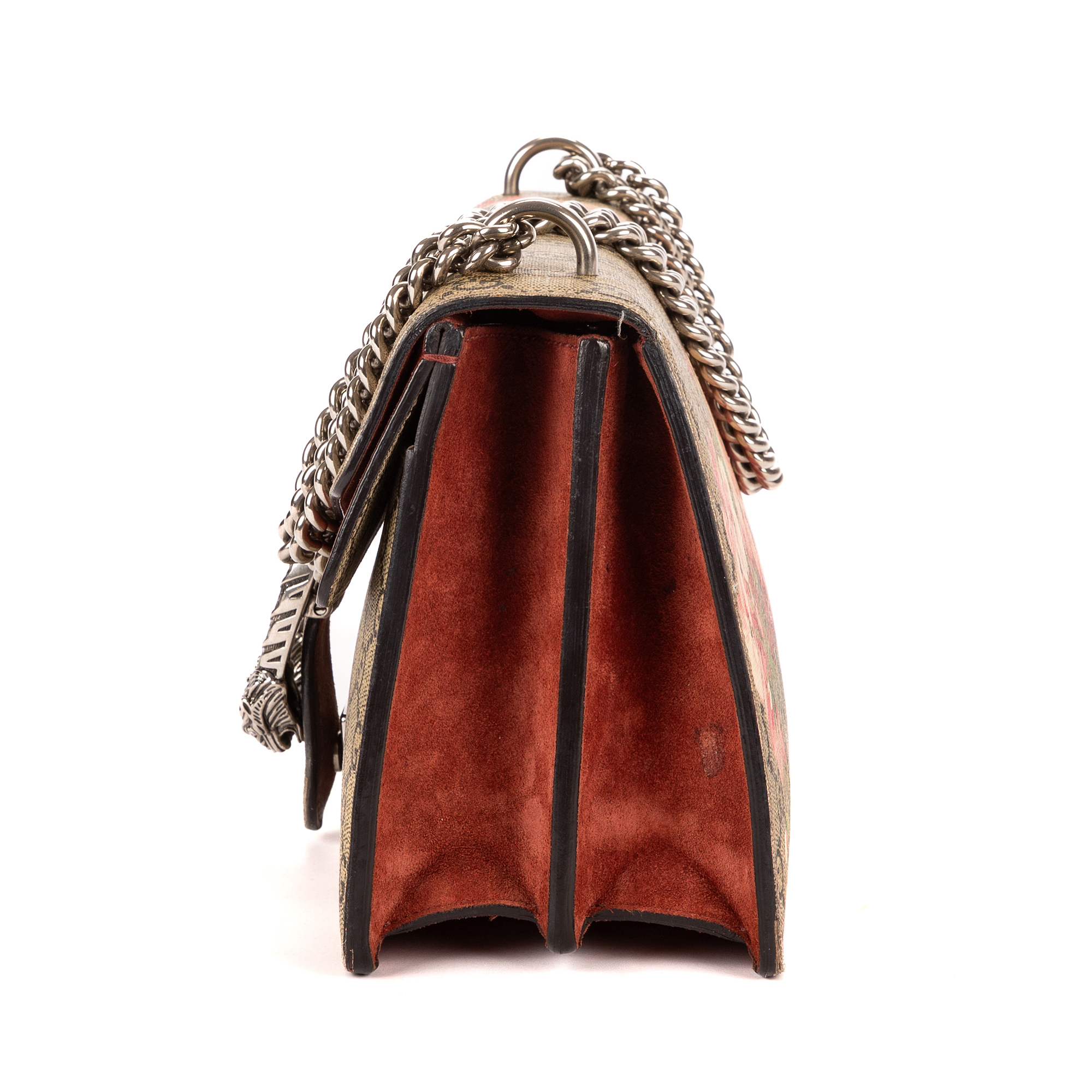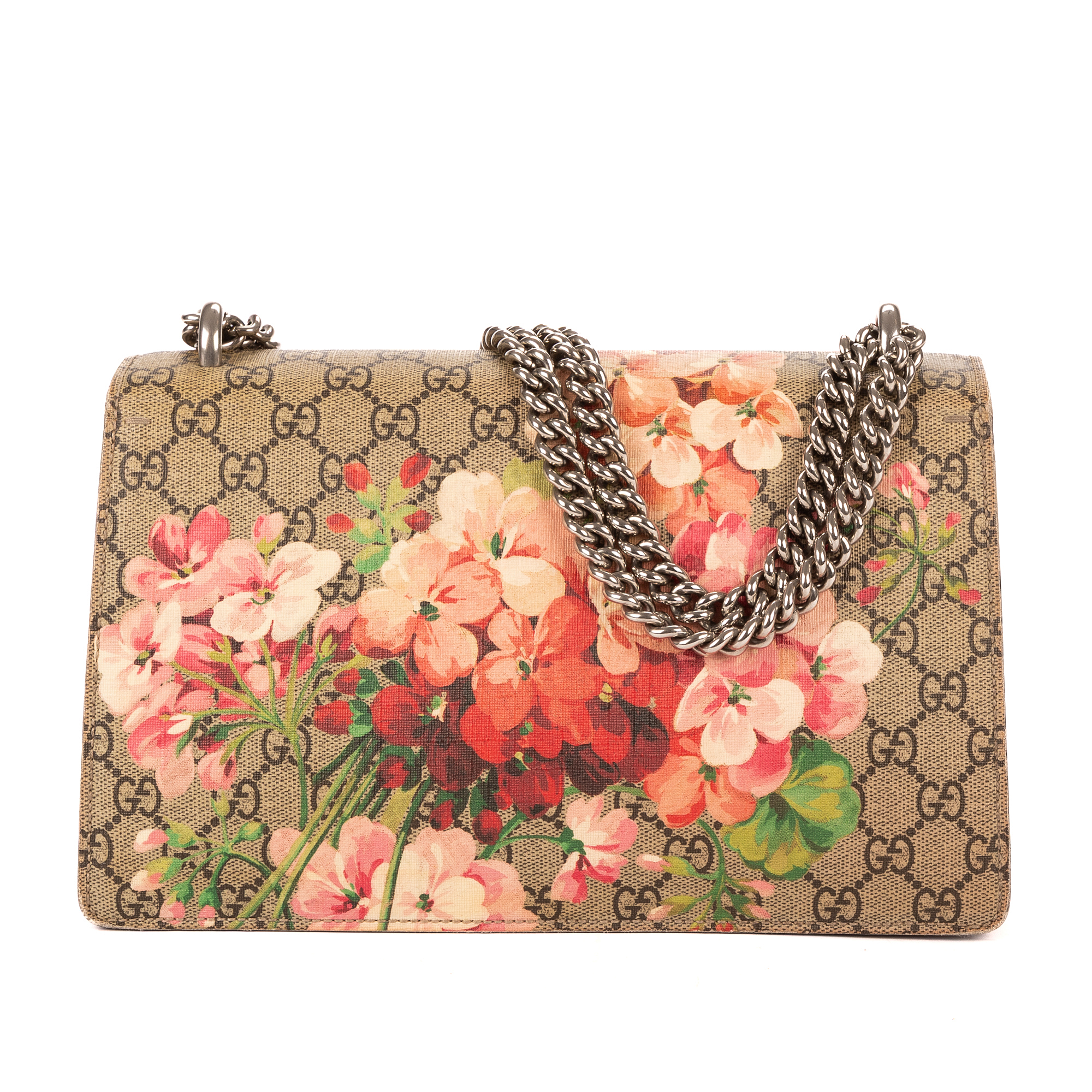 Gucci Shoulder Bag Blooms Dionysus Small in Beige/Burgundy Blooms Supreme Coated Canvas and Silver hardware. The product is in Very Good Condition (AB).