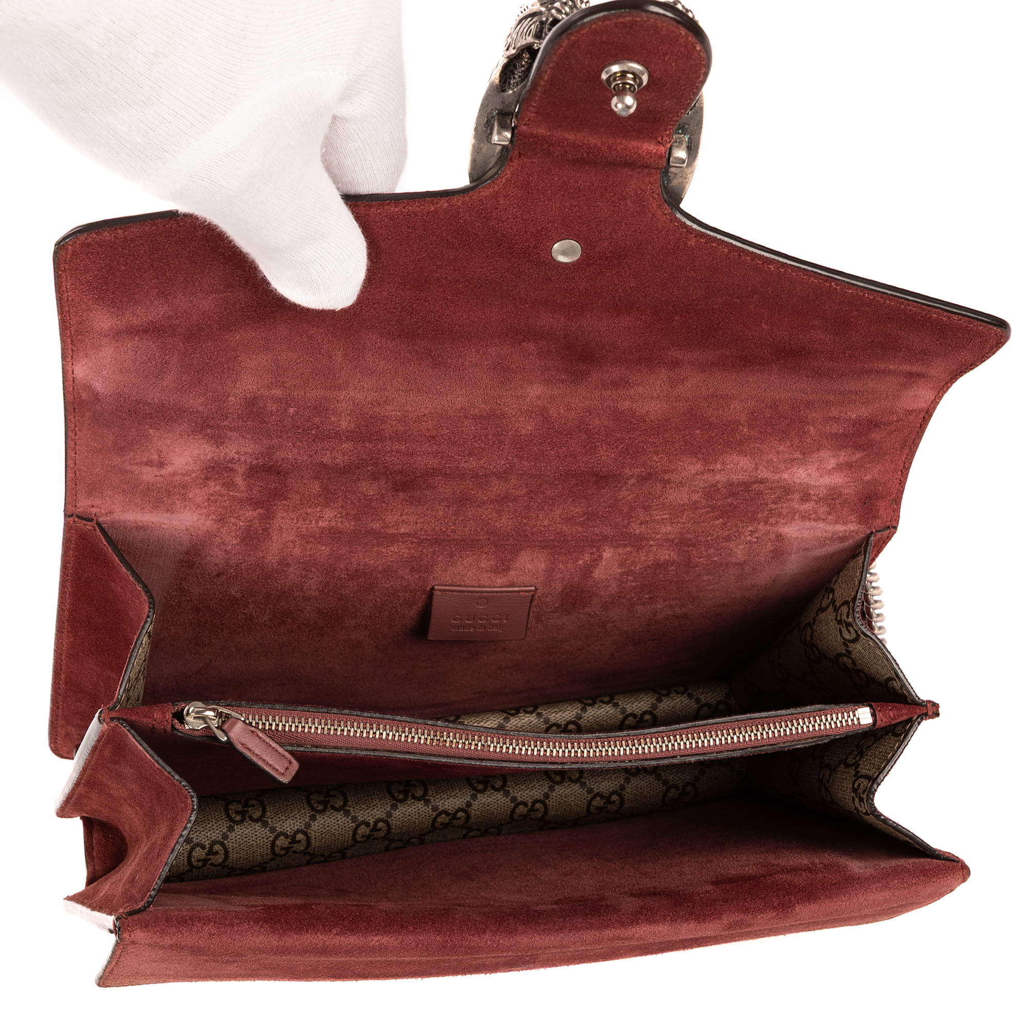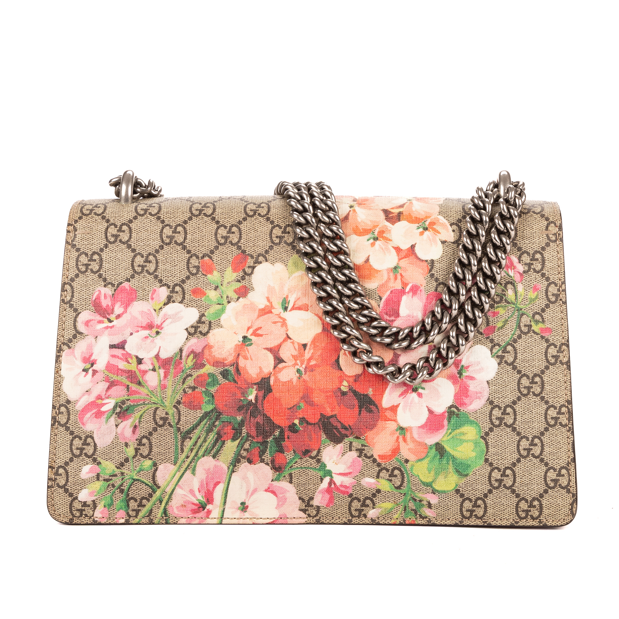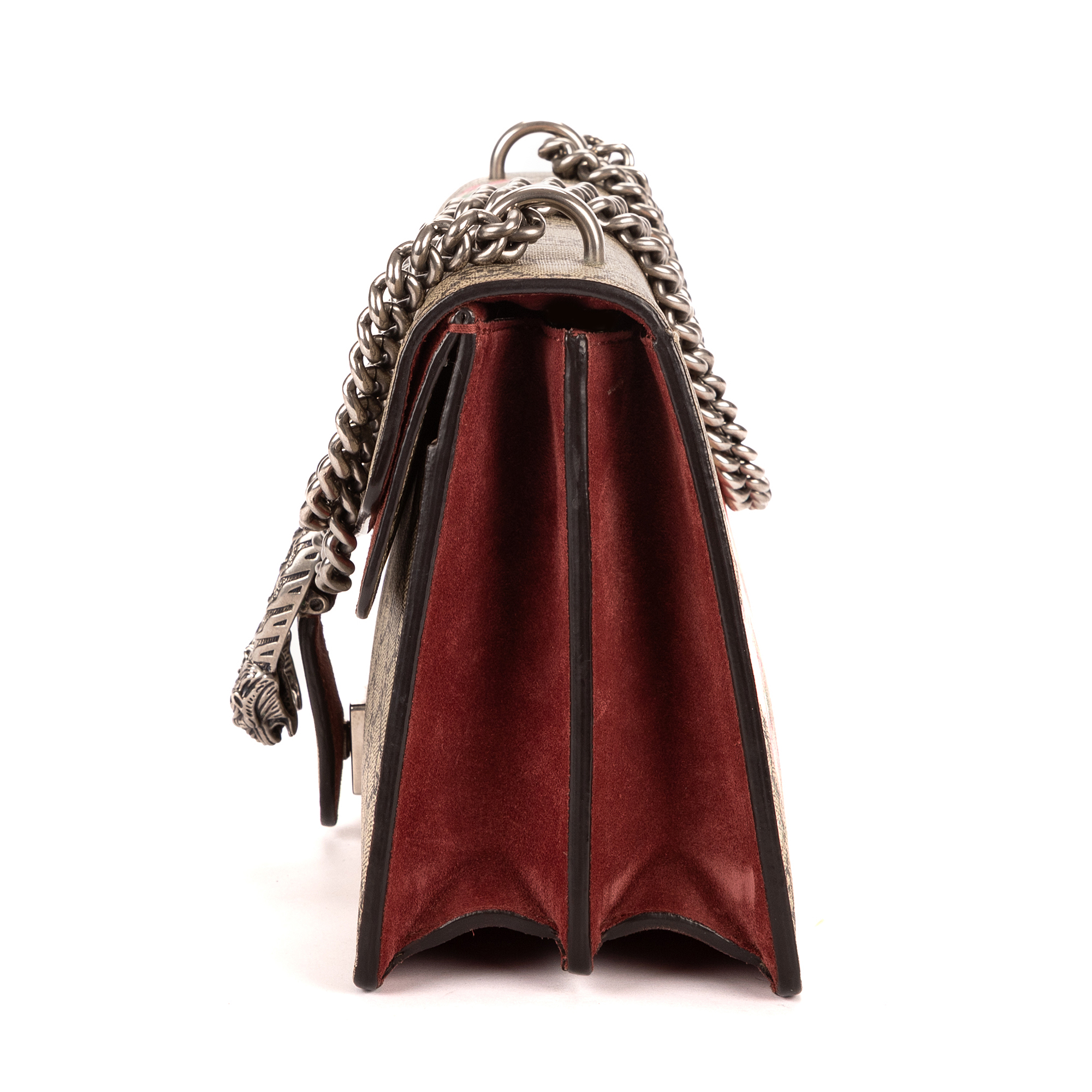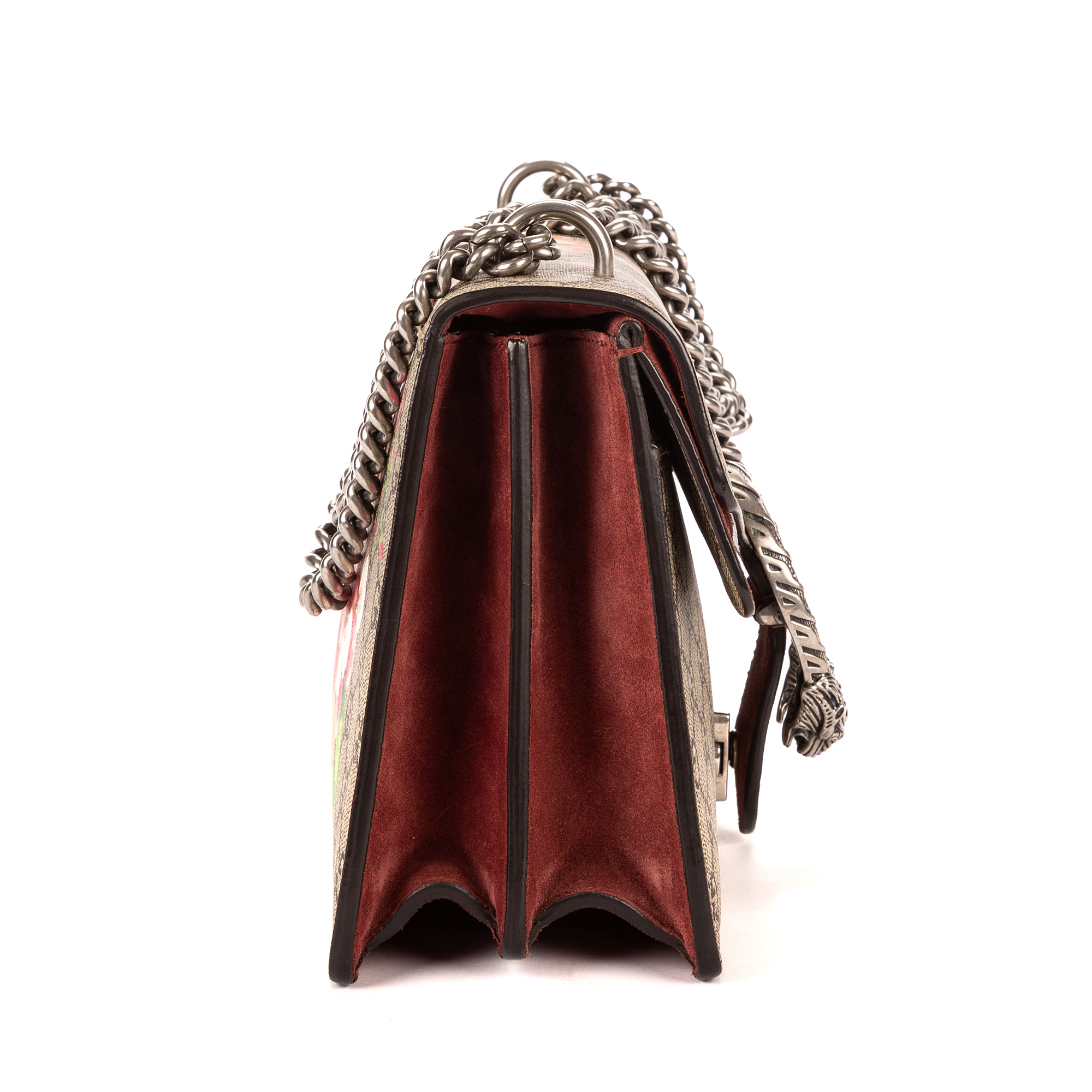 Gucci Shoulder Bag Blooms Dionysus Small in Beige/Burgundy Blooms Supreme Coated Canvas and Silver hardware. The product is in Excellent Condition (A).