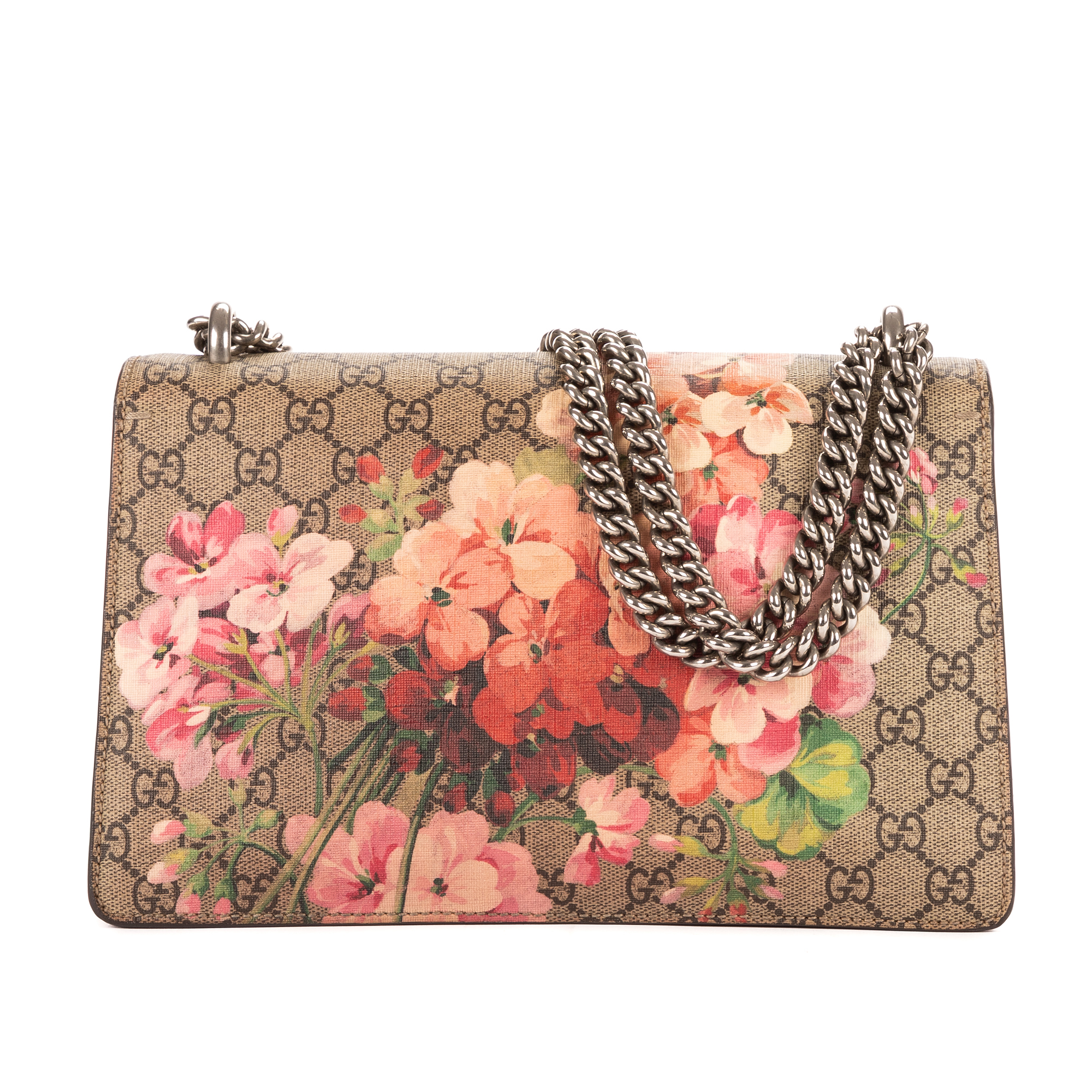 Gucci Shoulder Bag Blooms Dionysus Small in Beige/Burgundy Blooms Supreme Coated Canvas and Silver hardware. The product is in Excellent Condition (A).