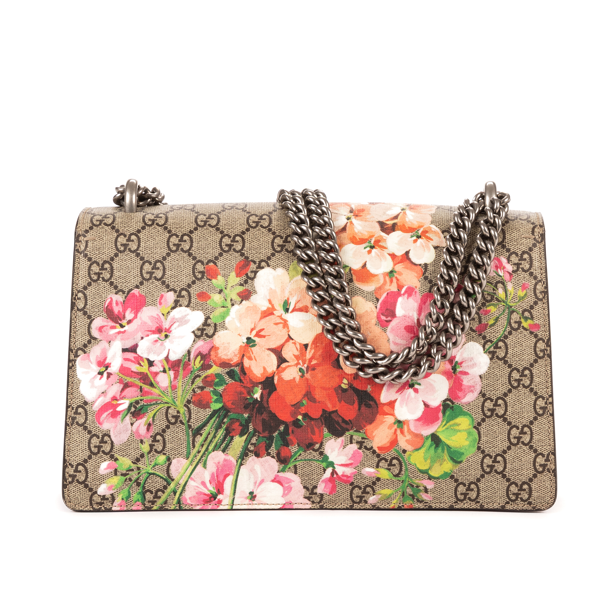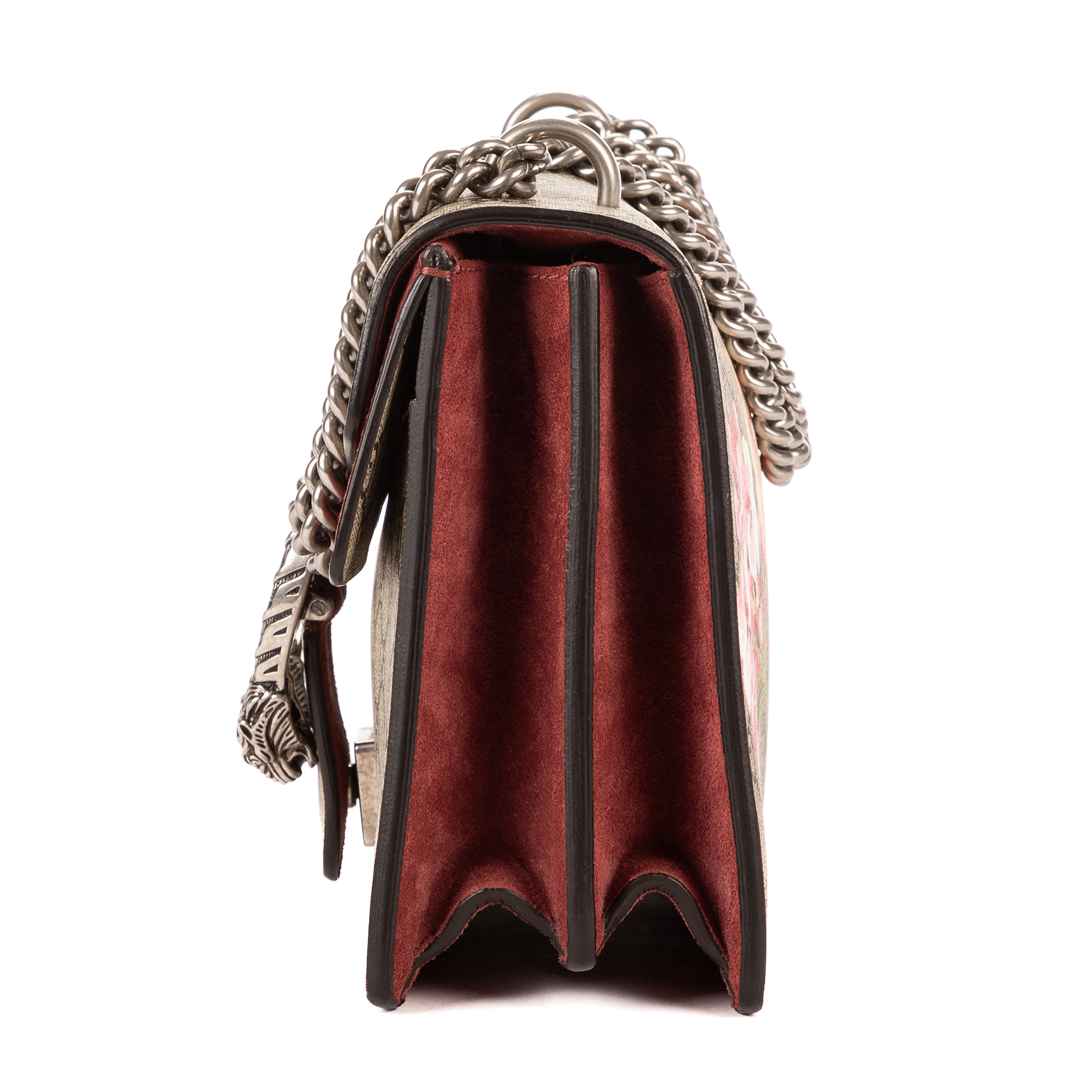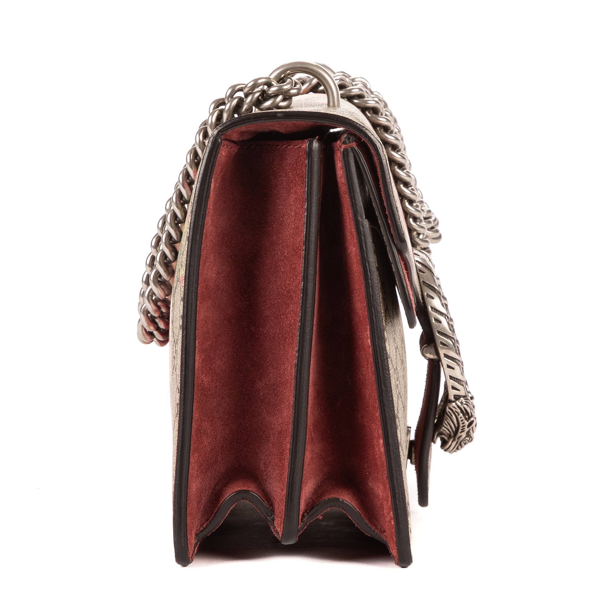 Gucci Shoulder Bag Blooms Dionysus Small in Beige/Burgundy Blooms Supreme Coated Canvas and Silver hardware. The product is in Excellent Condition (A).