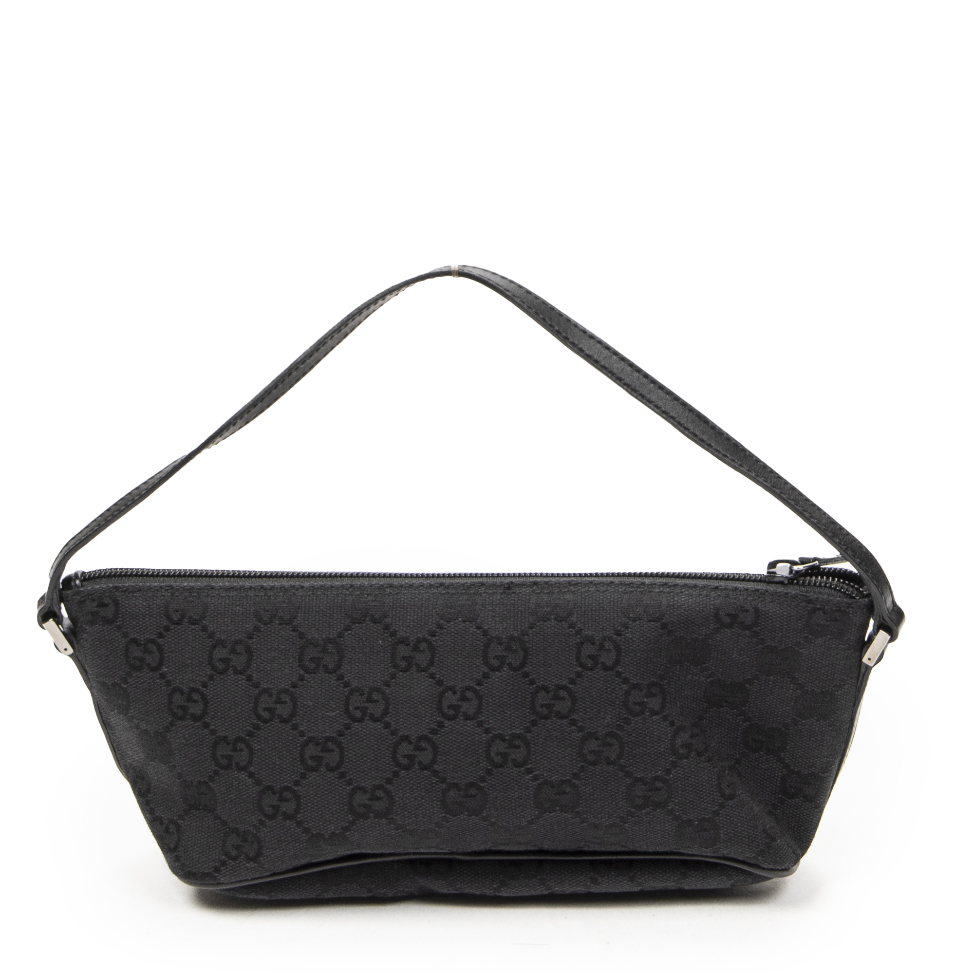 Description : Gucci Shoulder Bag Boat Pochette in Black Monogrammed Canvas and Silver hardware. The product is in Excellent Condition (A). Dimensions: 22x10x6 cm SKU: ABC8216 Serial number: 07198-2123 Accessories Included: Dustbag Delivery: We have a 5 to 7 business days delivery policy, hassle-free and duties/tariffs included! BrandCo Paris finds rare and top condition items at great deals, they are worth your patience! Shop with confidence - All BrandCo Paris items are carefully selected and authenticated by our team of experts. All the items come with an authenticity certificate and packaging delivered by BrandCo Paris. Item Condition Grading Table N (Like New) AA (Perfect Condition) A (Excellent Condition) AB (Very Good Condition) B (Good/Fair)