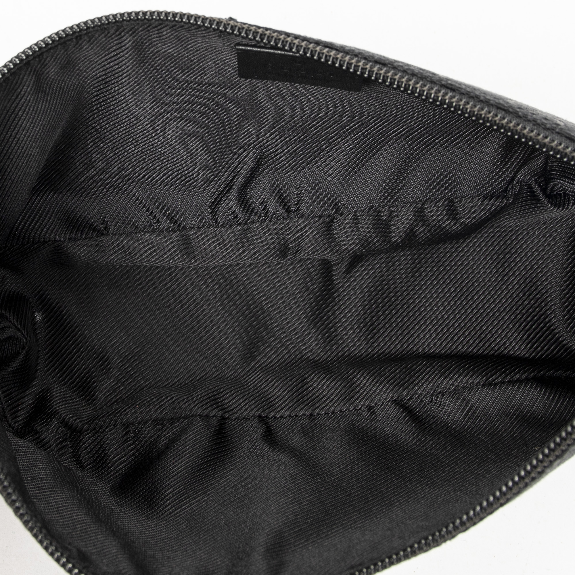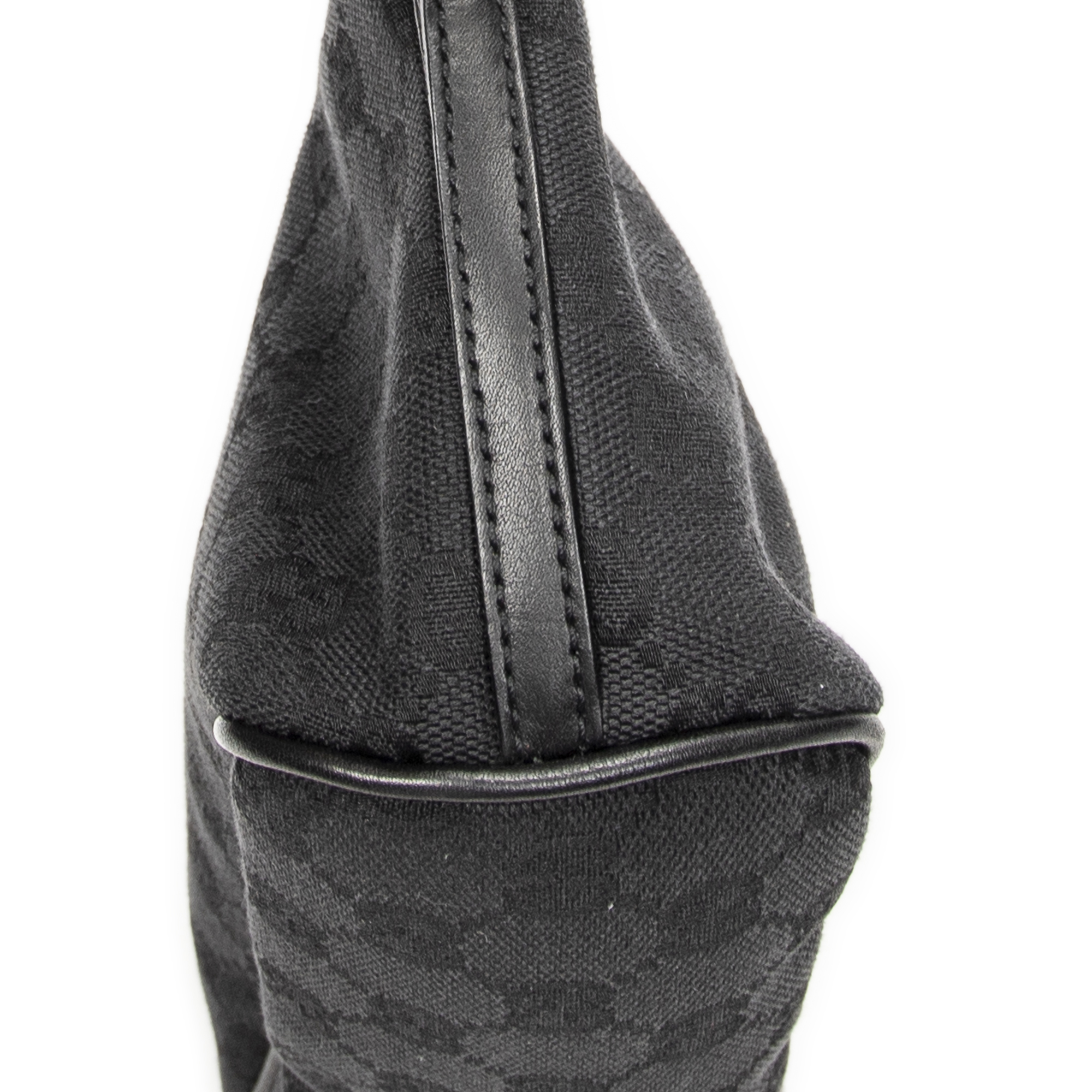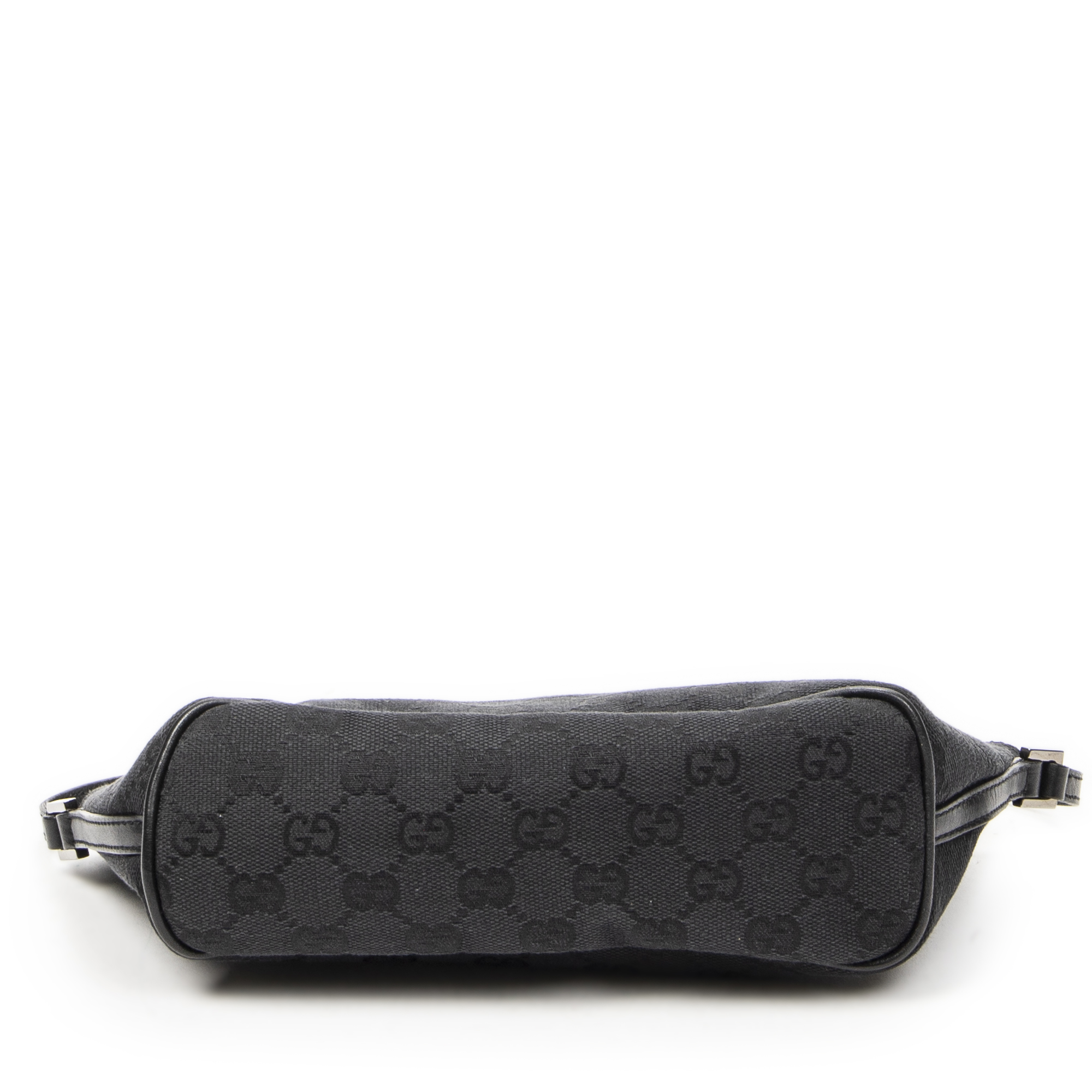 Gucci Shoulder Bag Boat Pochette in Black Monogrammed Canvas and Silver hardware. The product is in Excellent Condition (A).
