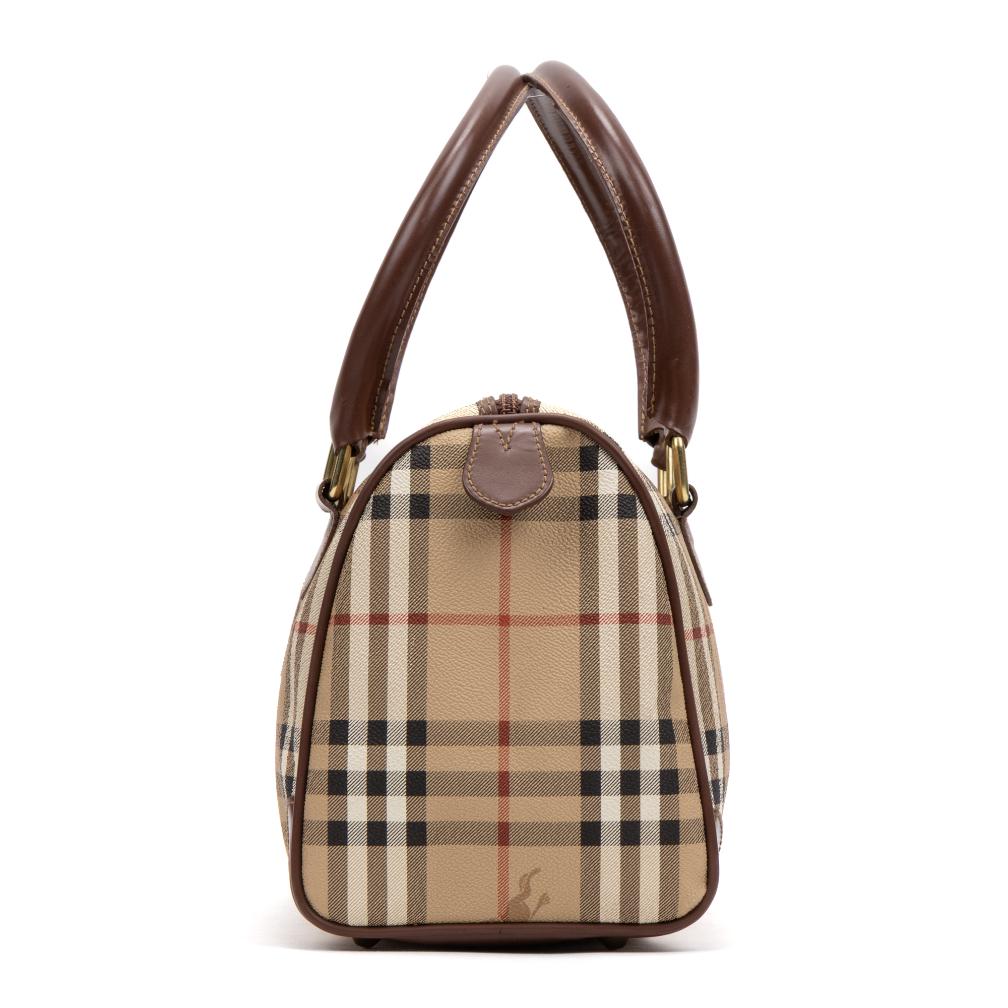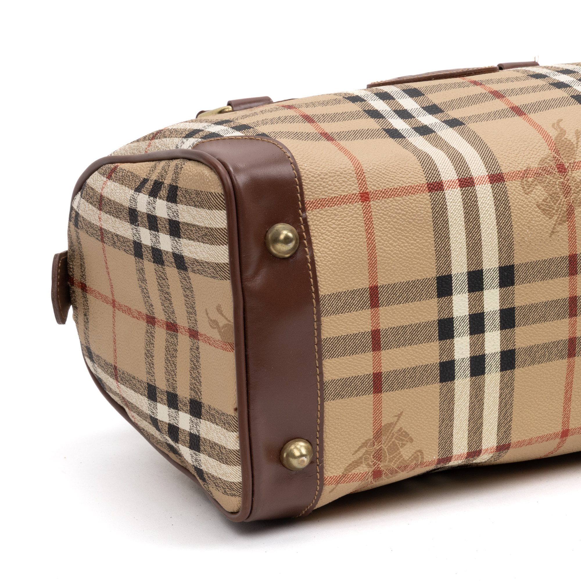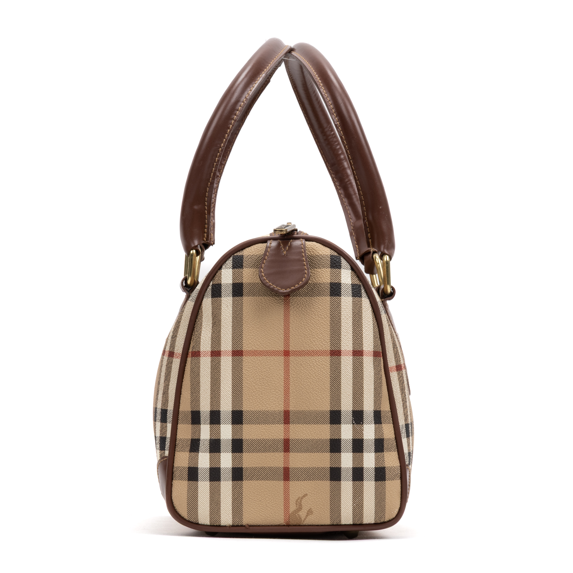 Burberry Shoulder Bag Boston in Beige Nova Check Canvas and Gold hardware. The product is in Very Good Condition (AB).