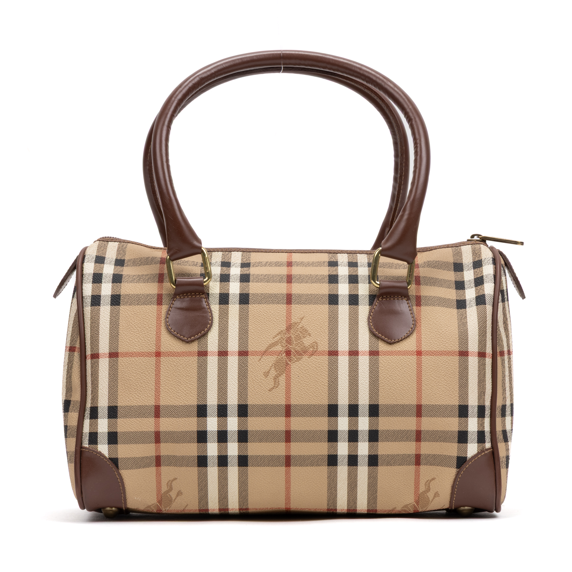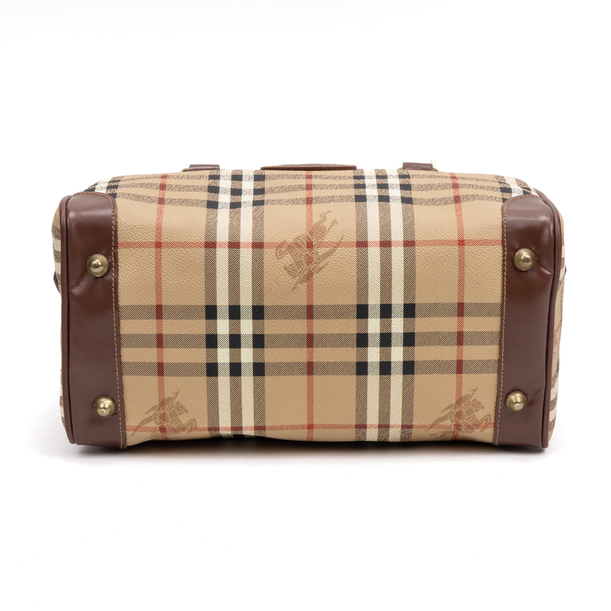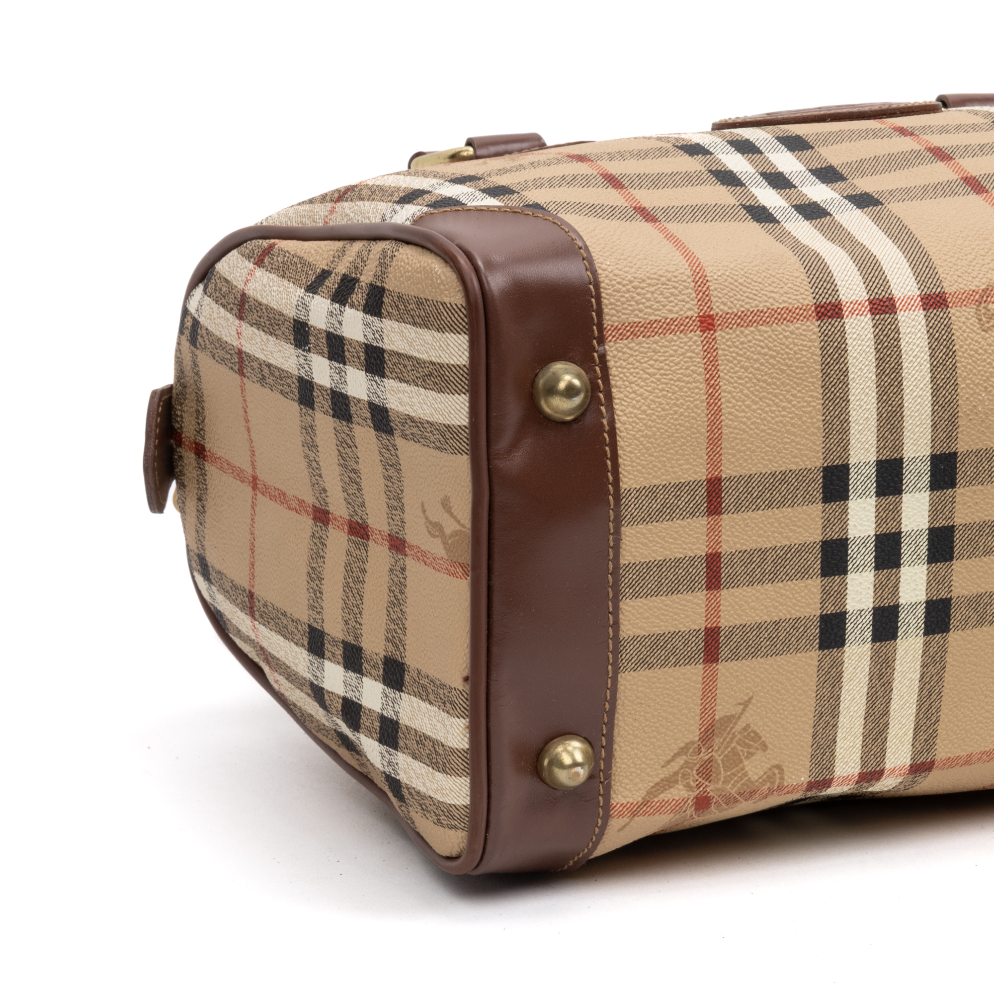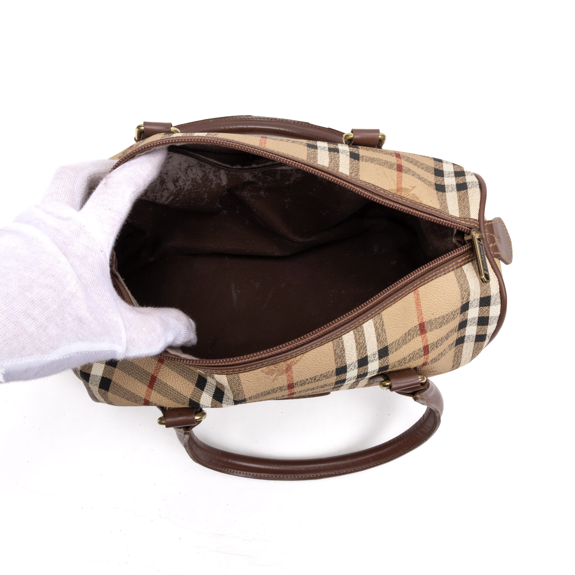 Burberry Shoulder Bag Boston in Beige Nova Check Canvas and Gold hardware. The product is in Very Good Condition (AB).
