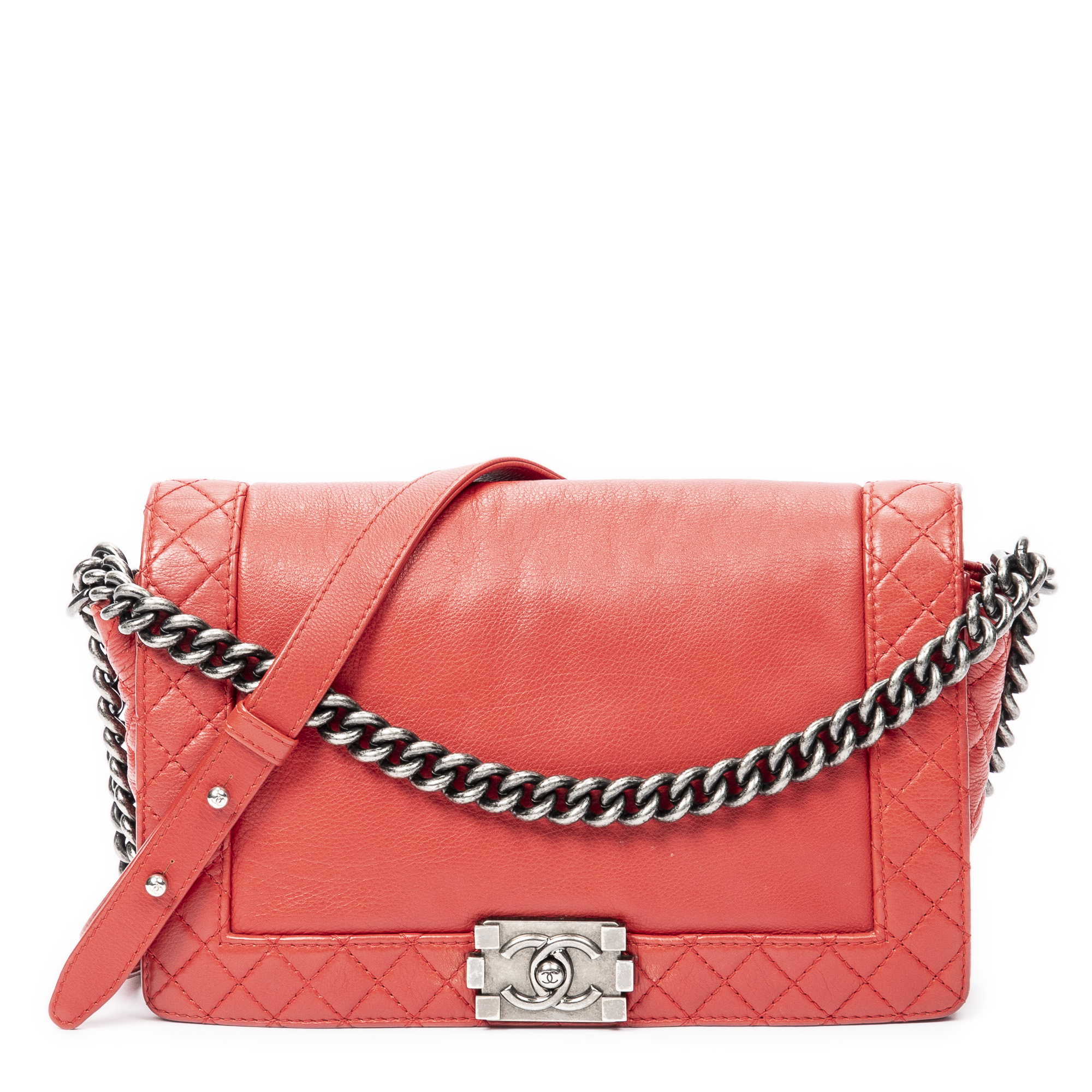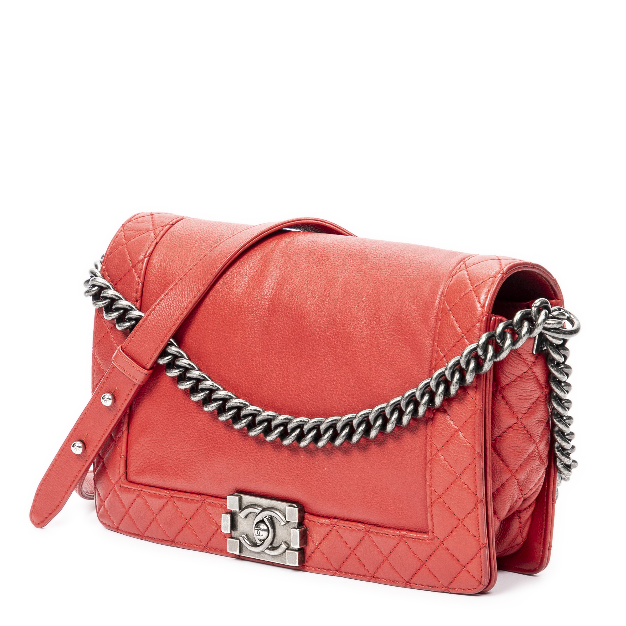 Description : Chanel Shoulder Bag Boy in Red Quilted Lambskin Leather and Aged Brass hardware. The product is in Excellent Condition (A). Dimensions: 28x18x7 cm SKU: AAX9234 Serial number: 18909469 (2013-2014) Accessories Included: sticker; card Delivery: We have a 5 to 7 business days delivery policy, hassle-free and duties/tariffs included! BrandCo Paris finds rare and top condition items at great deals, they are worth your patience! Shop with confidence - All BrandCo Paris items are carefully selected and authenticated by our team of experts. All the items come with an authenticity certificate and packaging delivered by BrandCo Paris. Item Condition Grading Table N (Like New) AA (Perfect Condition) A (Excellent Condition) AB (Very Good Condition) B (Good/Fair)