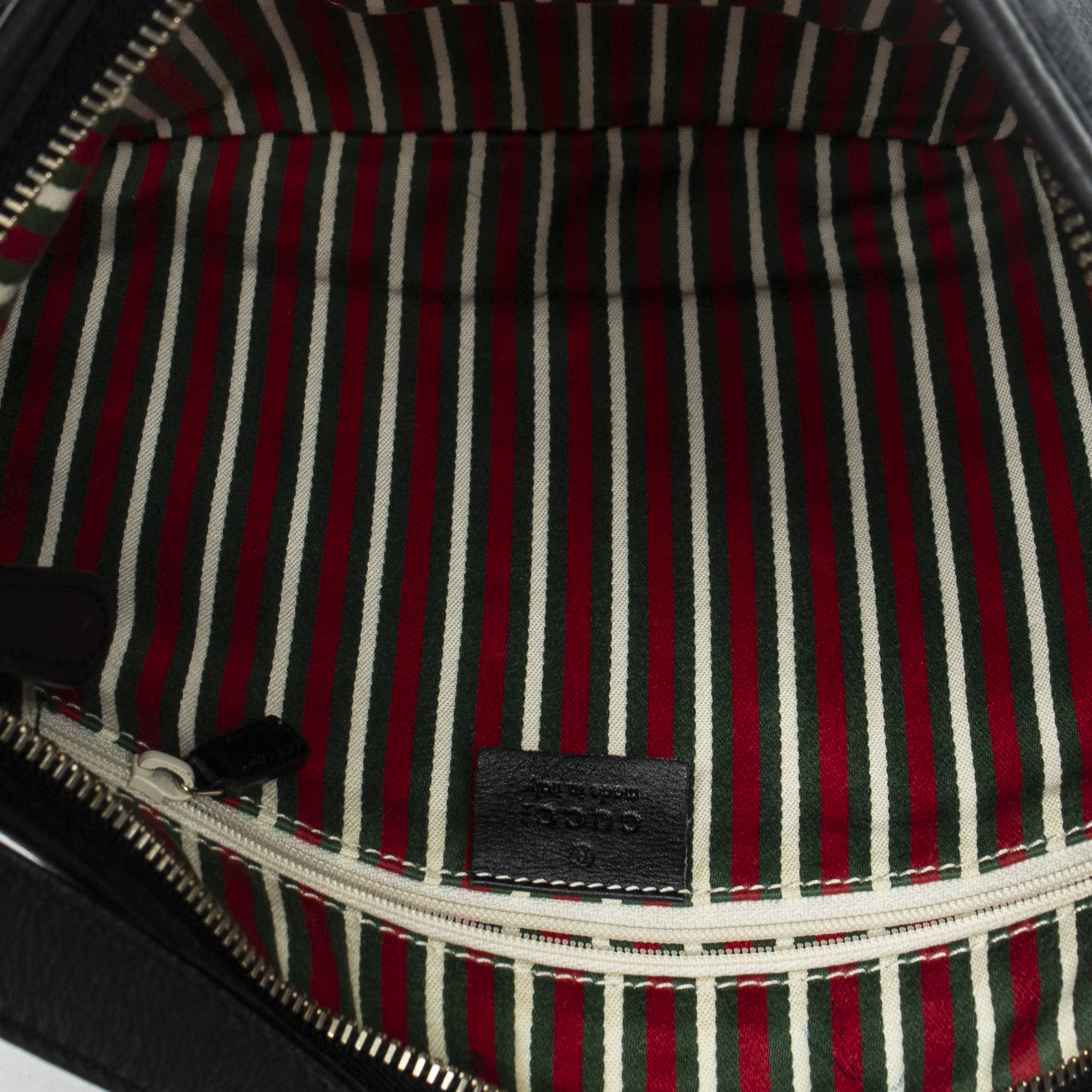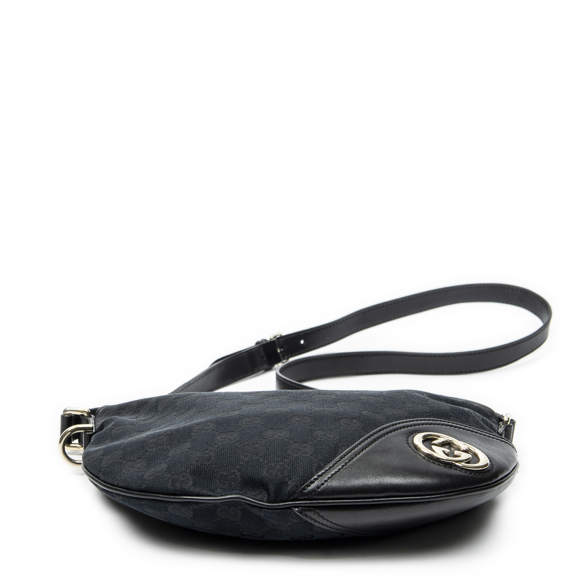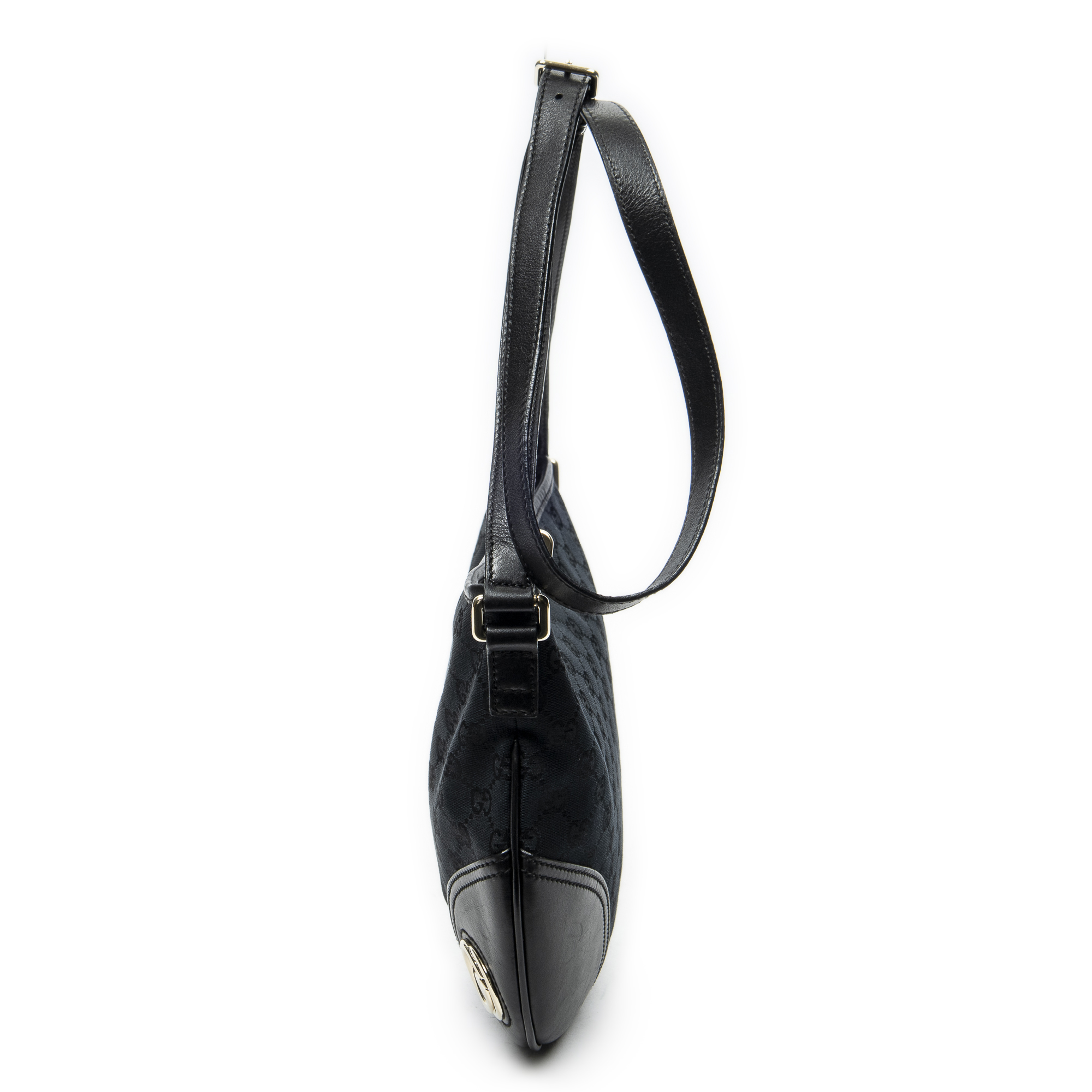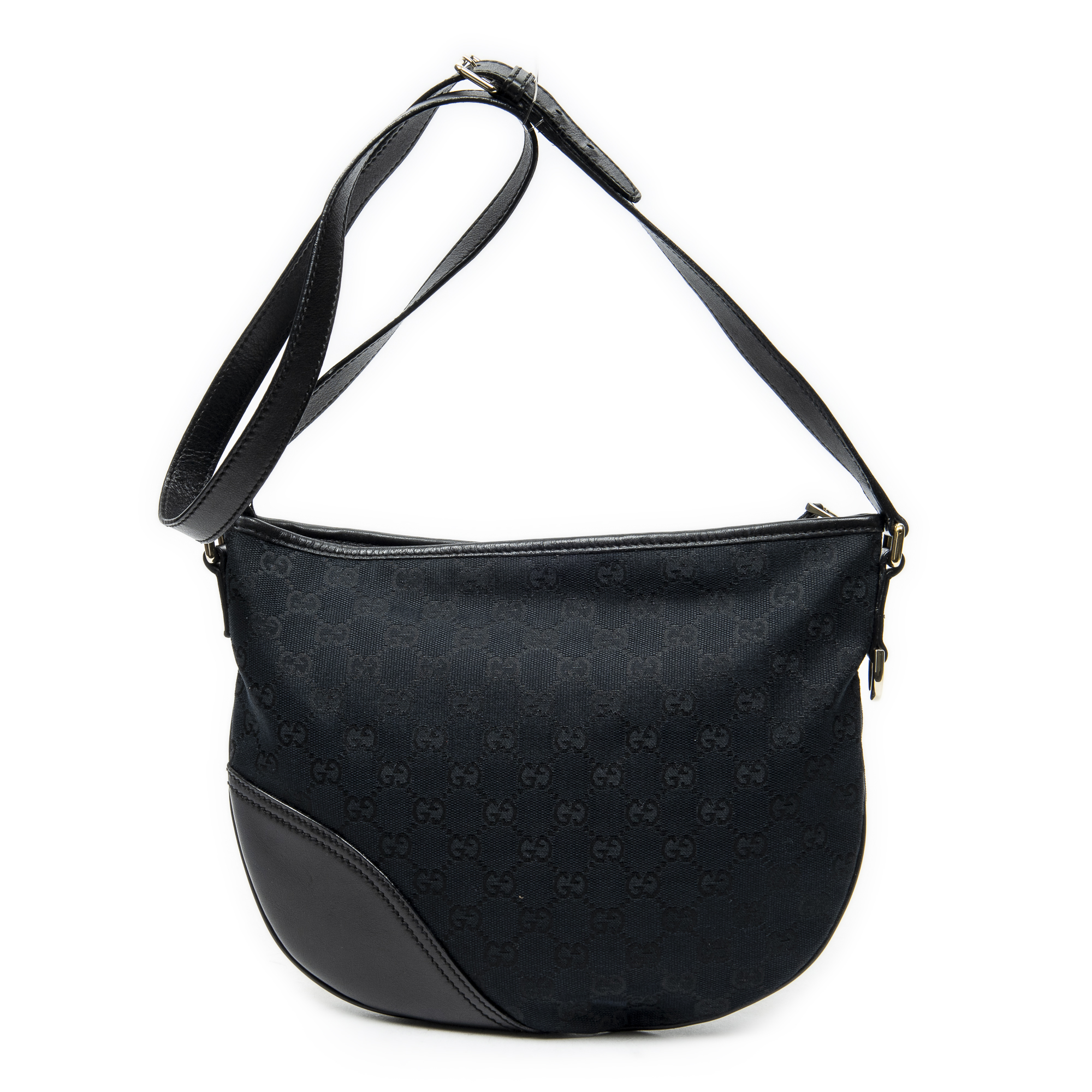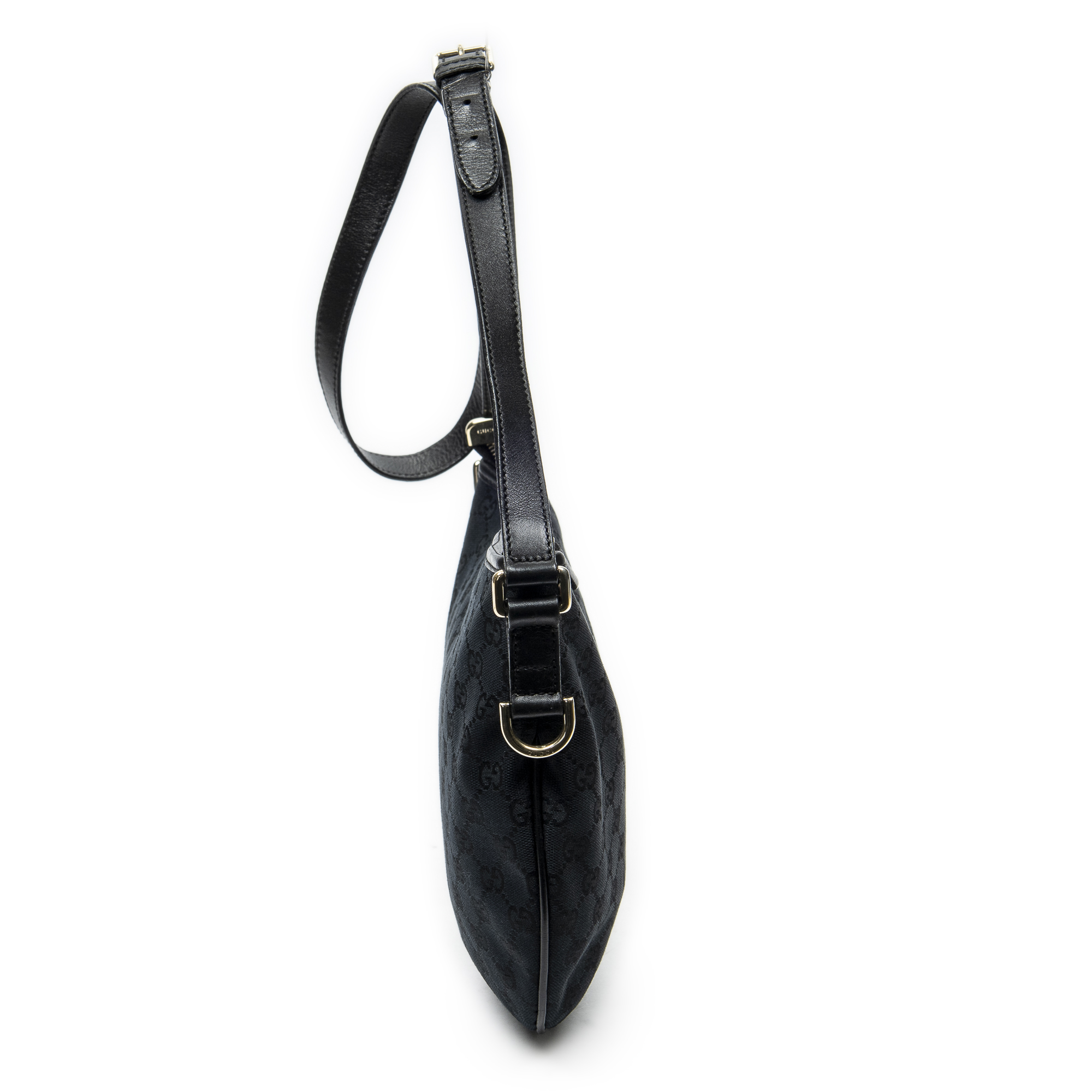 Gucci Shoulder Bag Britt Messenger Hobo in Black Monogrammed Canvas and Gold hardware. The product is in Excellent Condition (A).