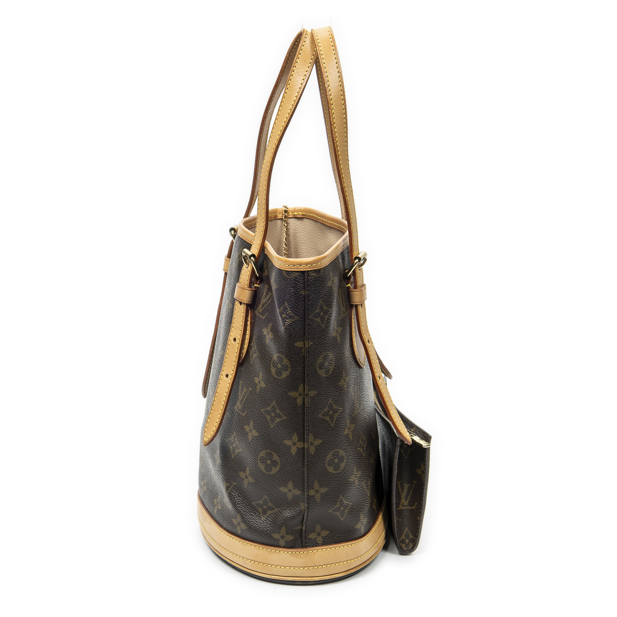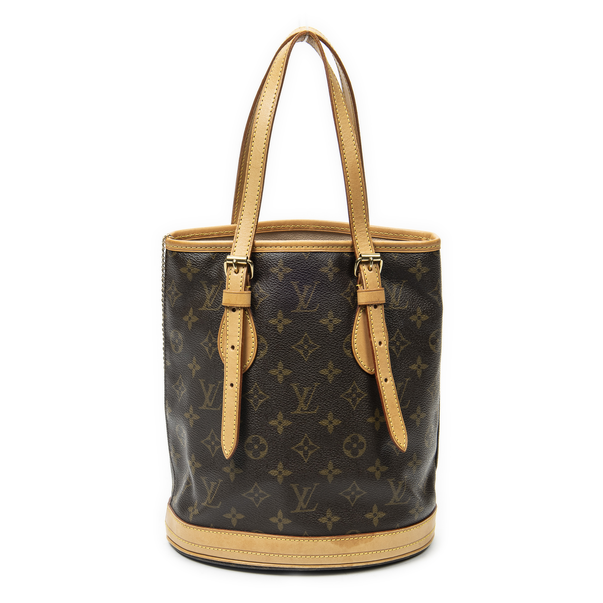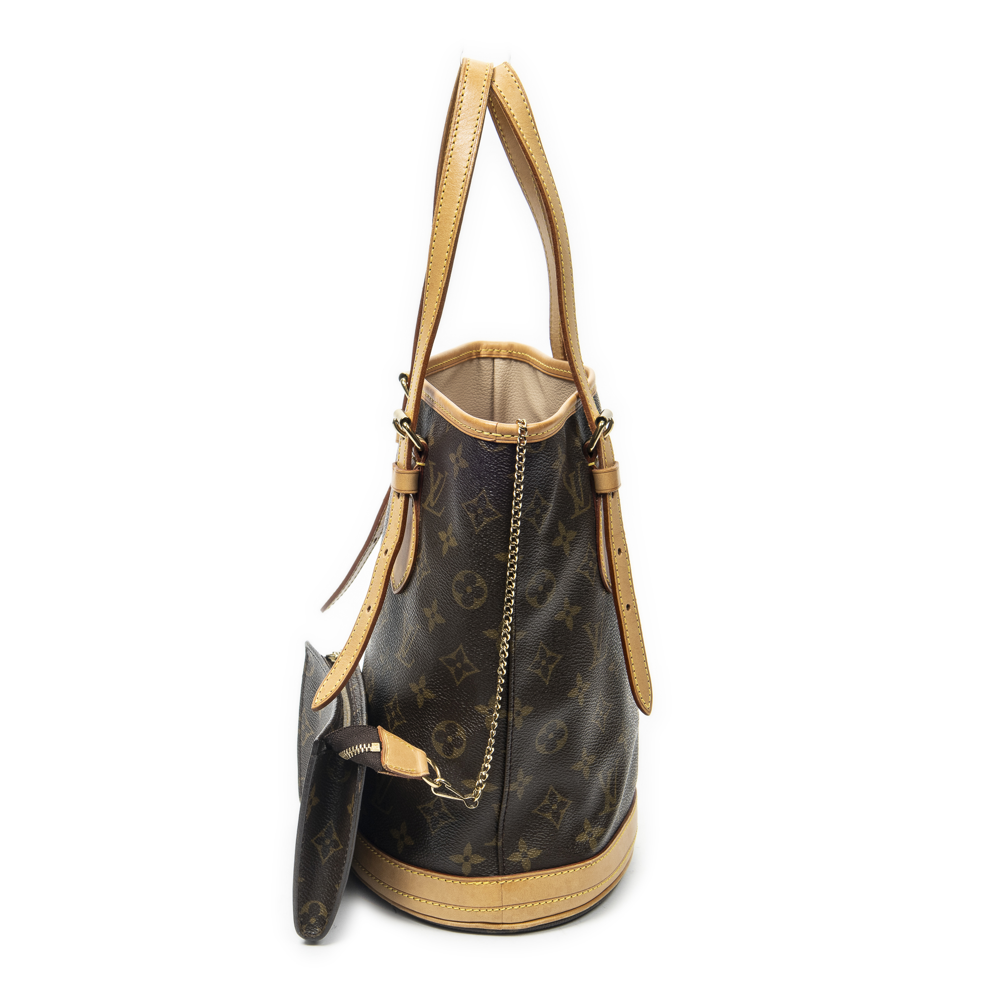 Louis Vuitton Shoulder Bag Bucket PM in Brown Monogram Canvas and Golden Brass hardware. The product is in Excellent Condition (A).