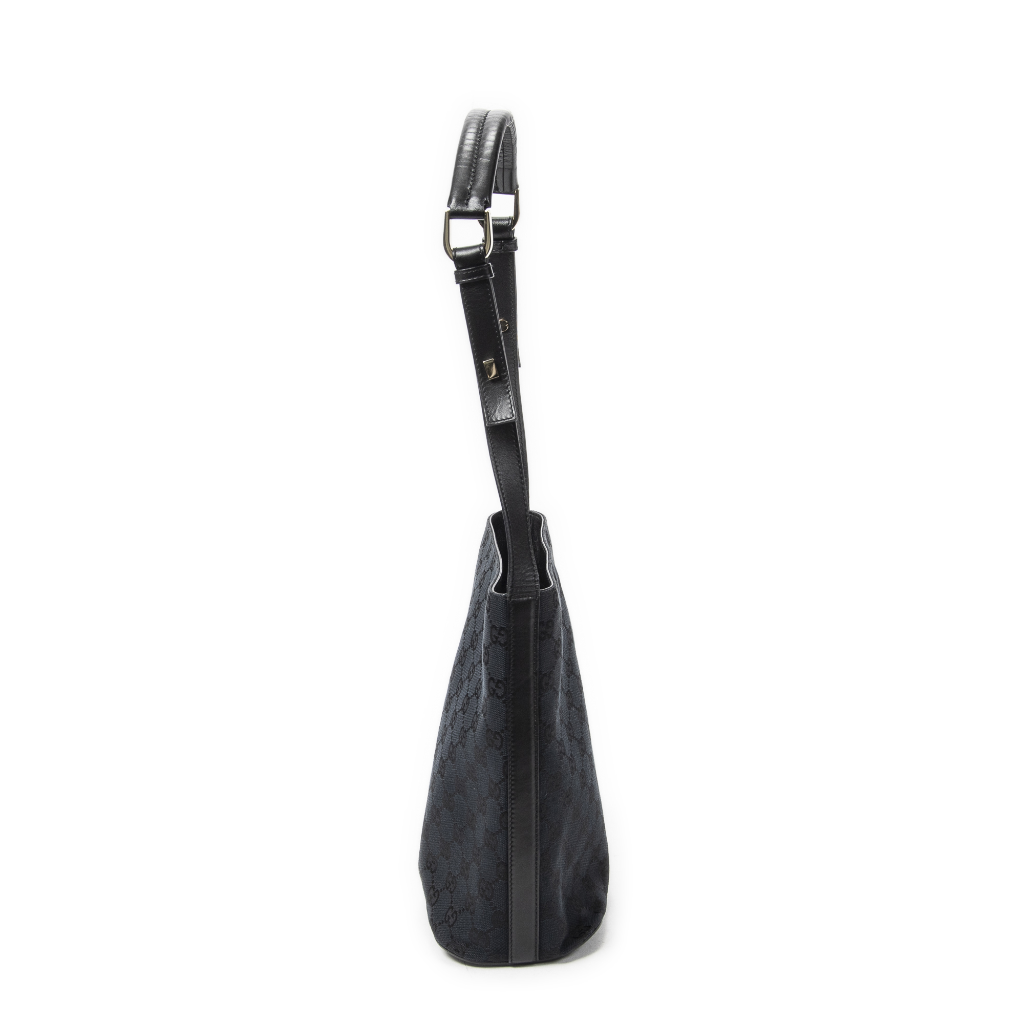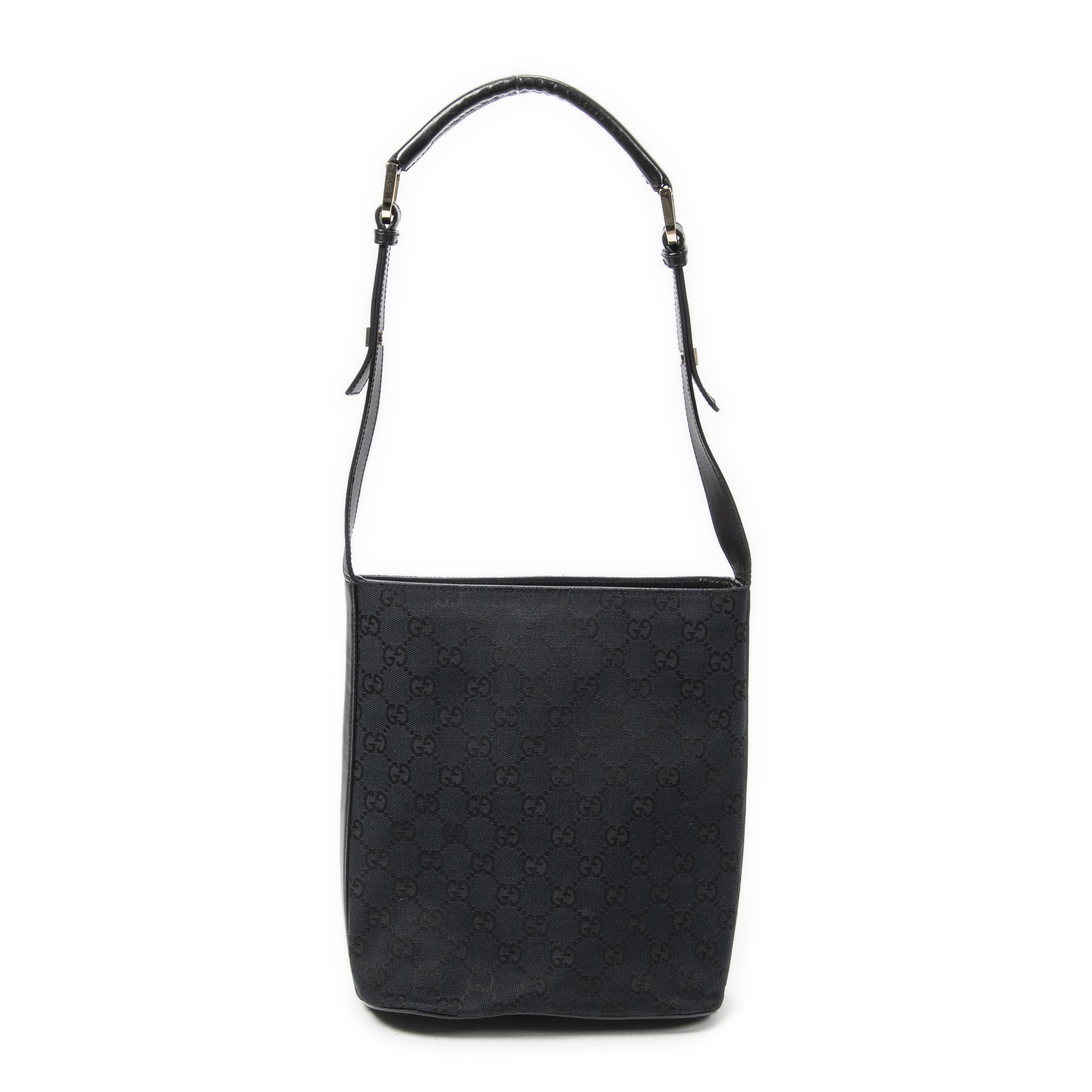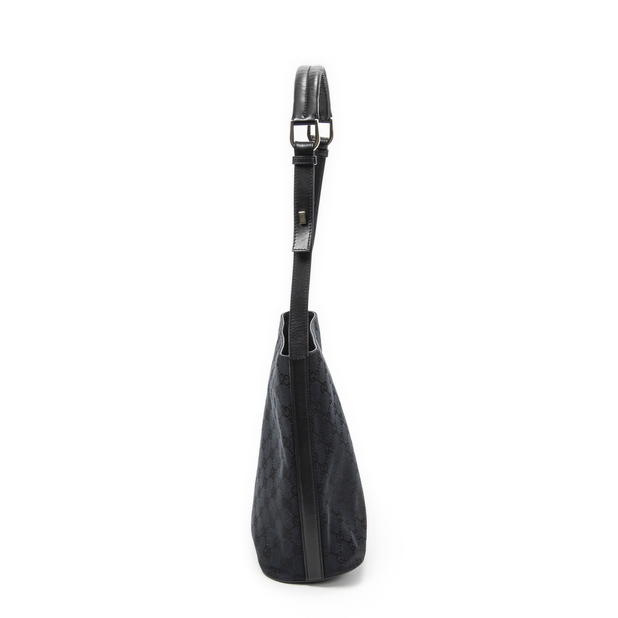 Gucci Shoulder Bag Bucket Shoulder Bag in Black Monogrammed Canvas and Gold hardware. The product is in Excellent Condition (A).