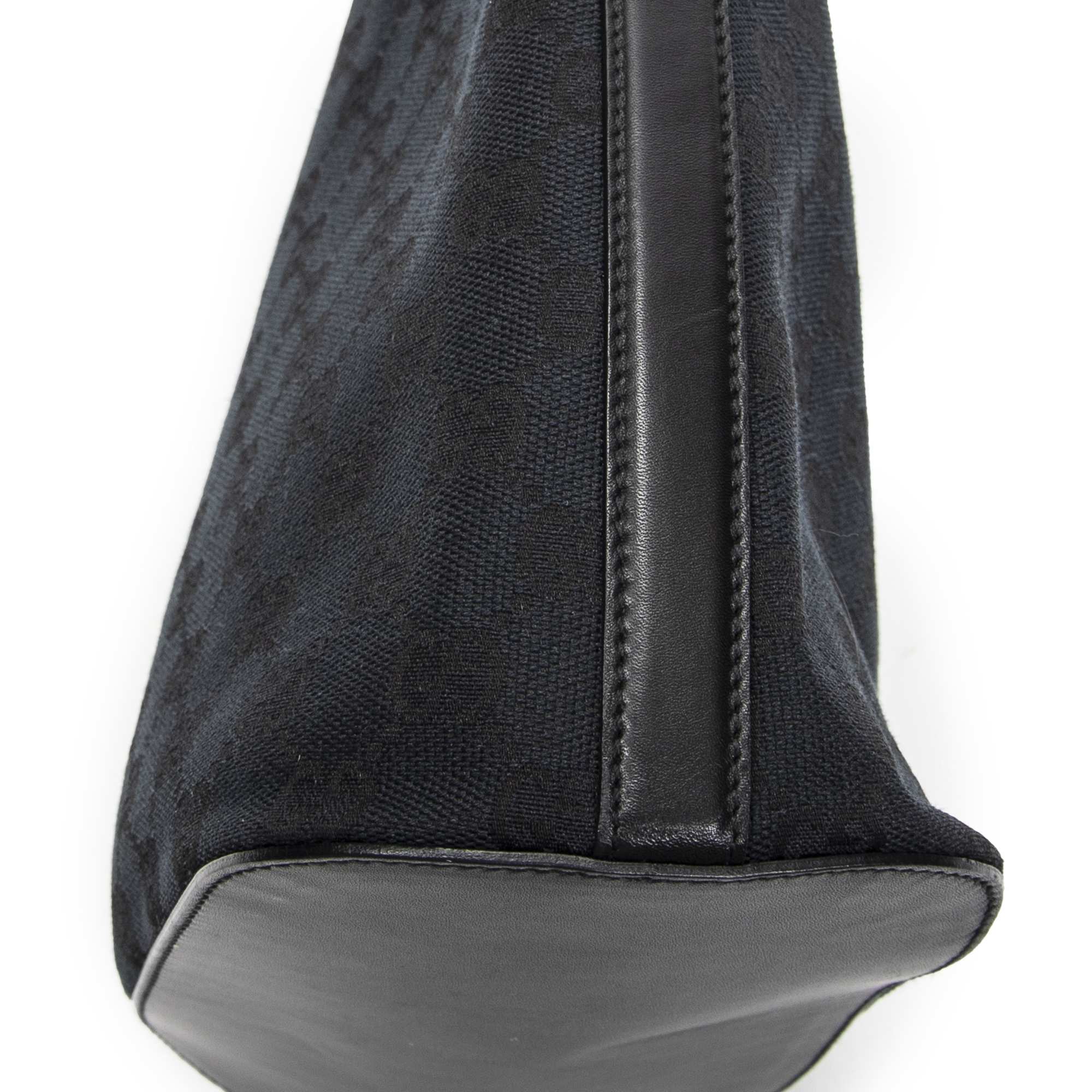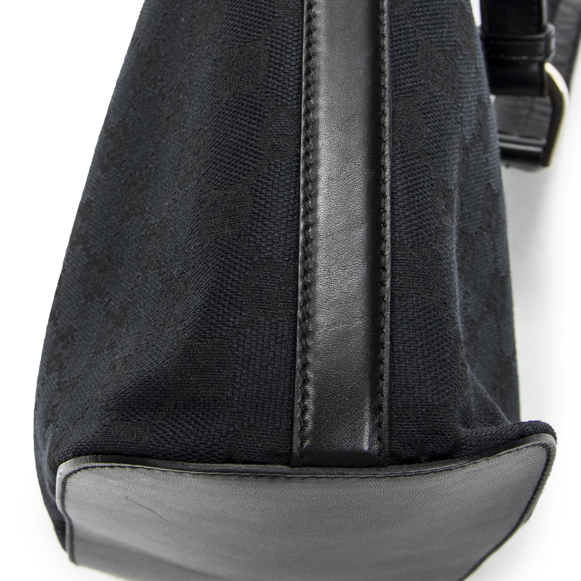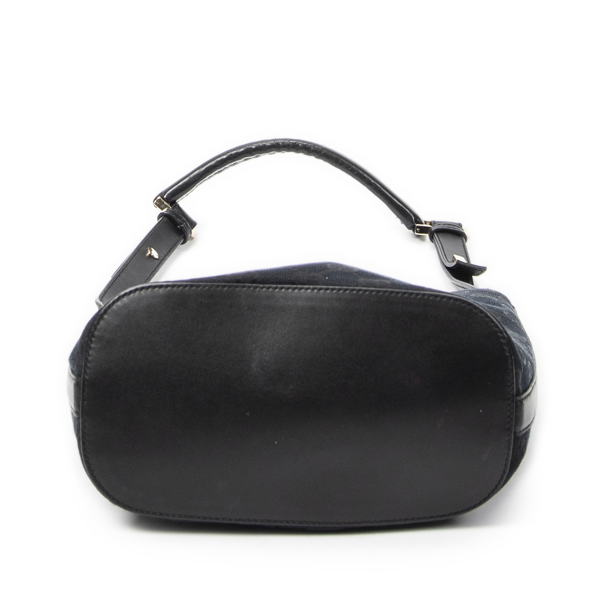 Gucci Shoulder Bag Bucket Shoulder Bag in Black Monogrammed Canvas and Gold hardware. The product is in Excellent Condition (A).