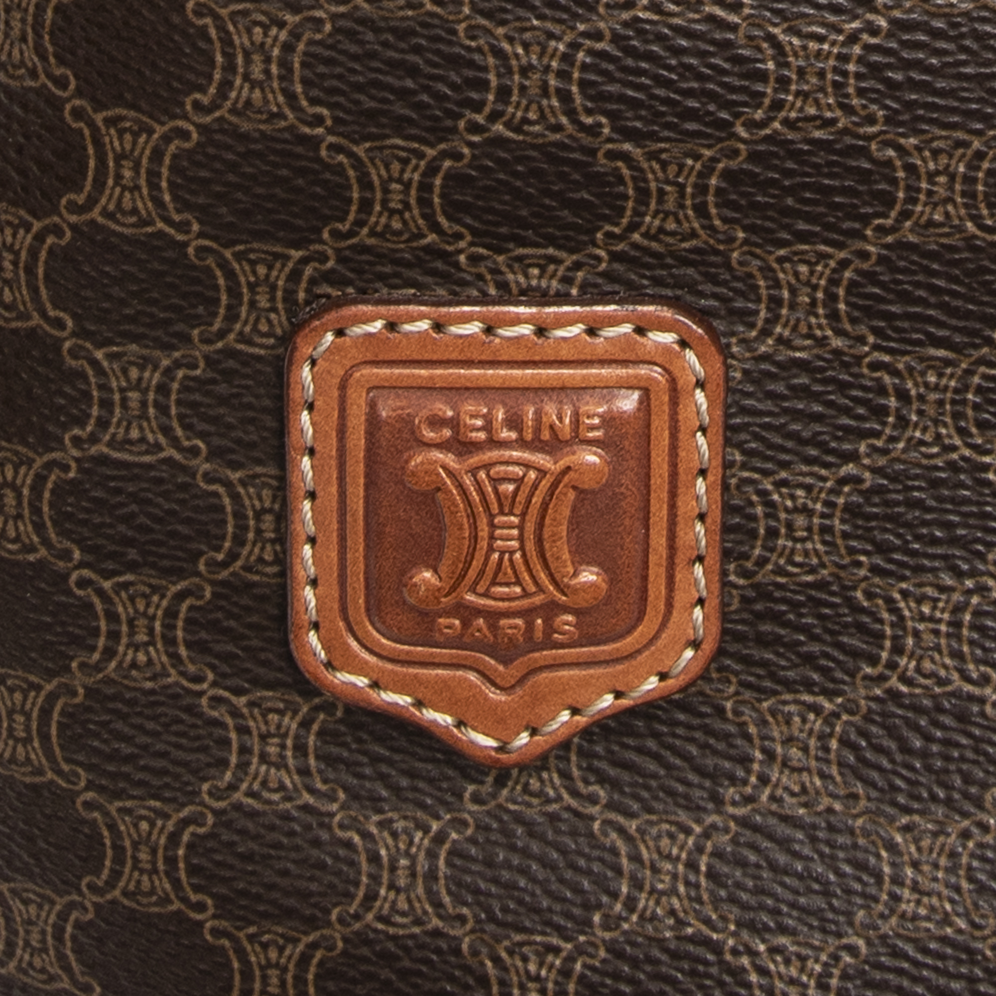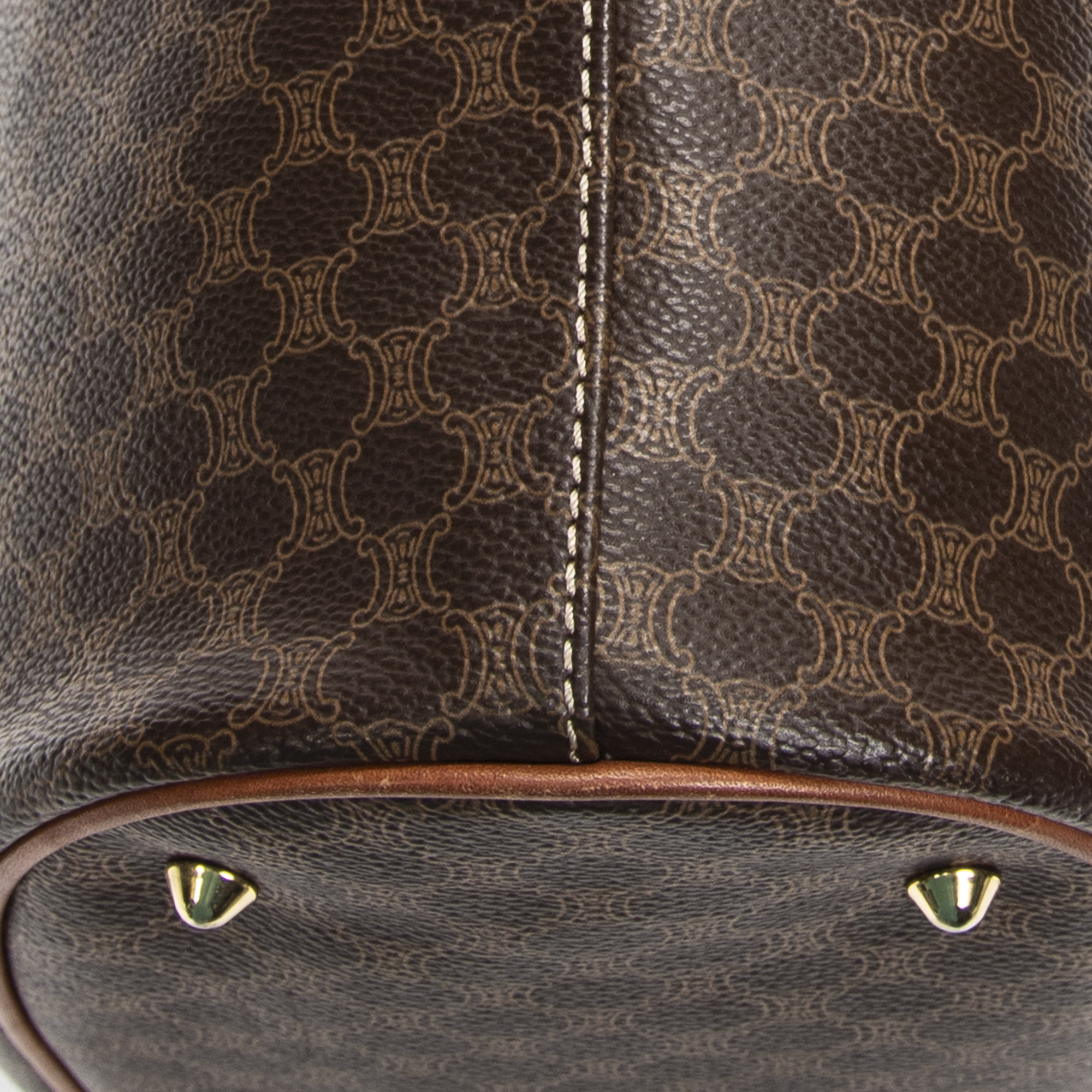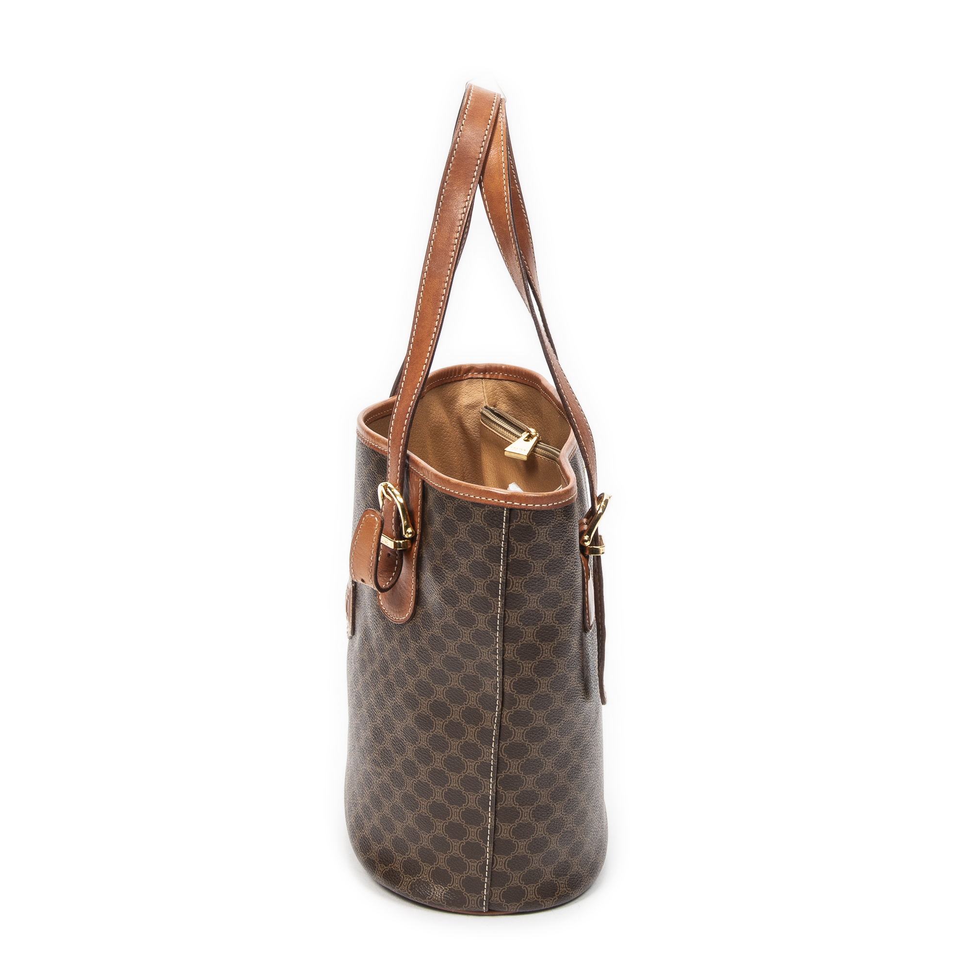 Celine Shoulder Bag Bucket Tote in Brown Macadam Coated Canvas and Gold hardware. The product is in Very Good Condition (AB).