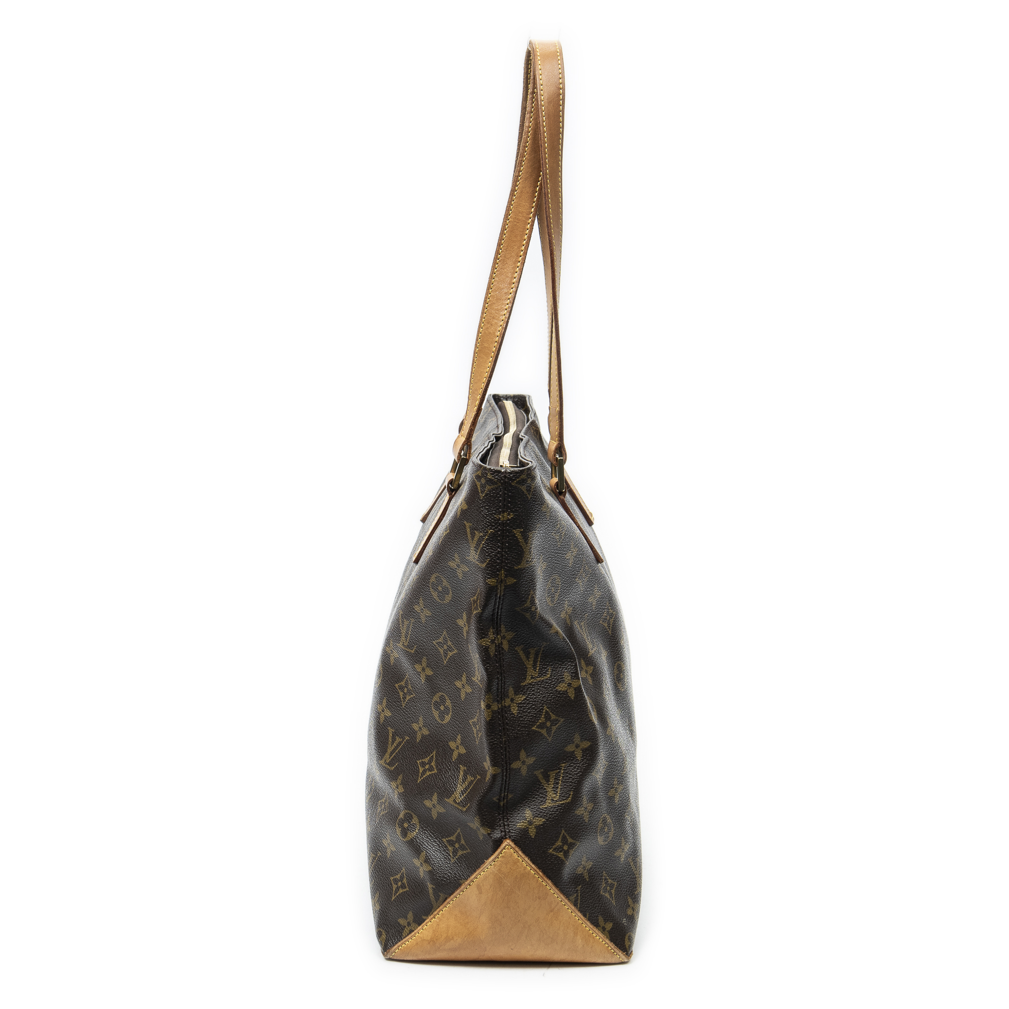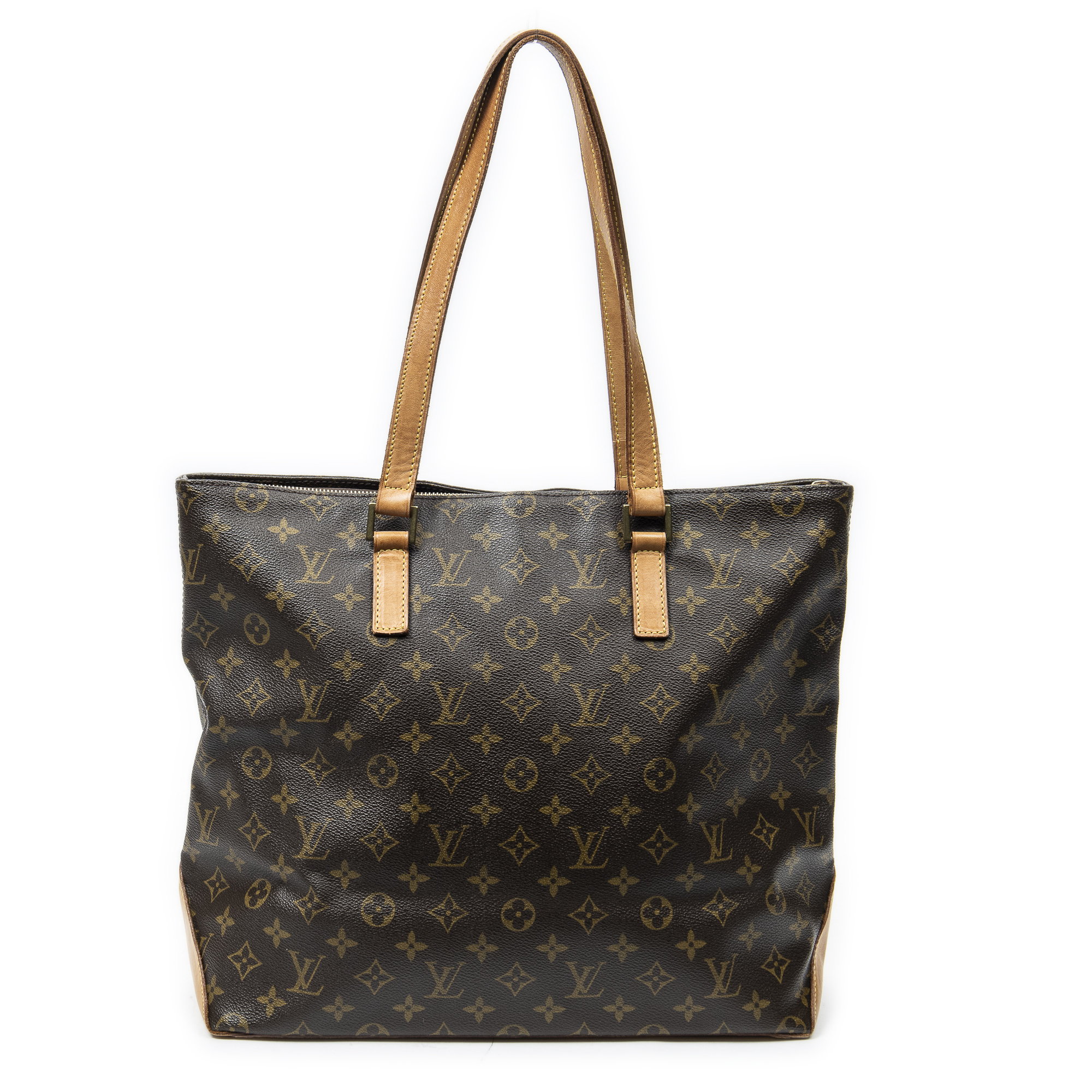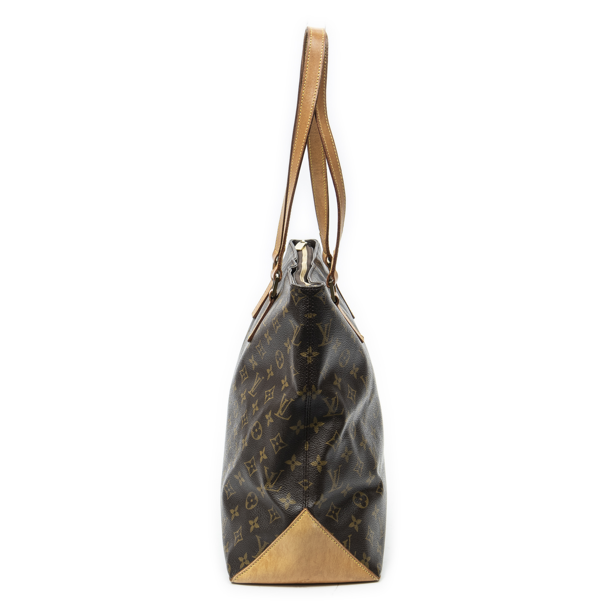 Louis Vuitton Shoulder Bag Cabas Mezzo in Brown Monogram Canvas and Golden Brass hardware. The product is in Very Good Condition (AB).