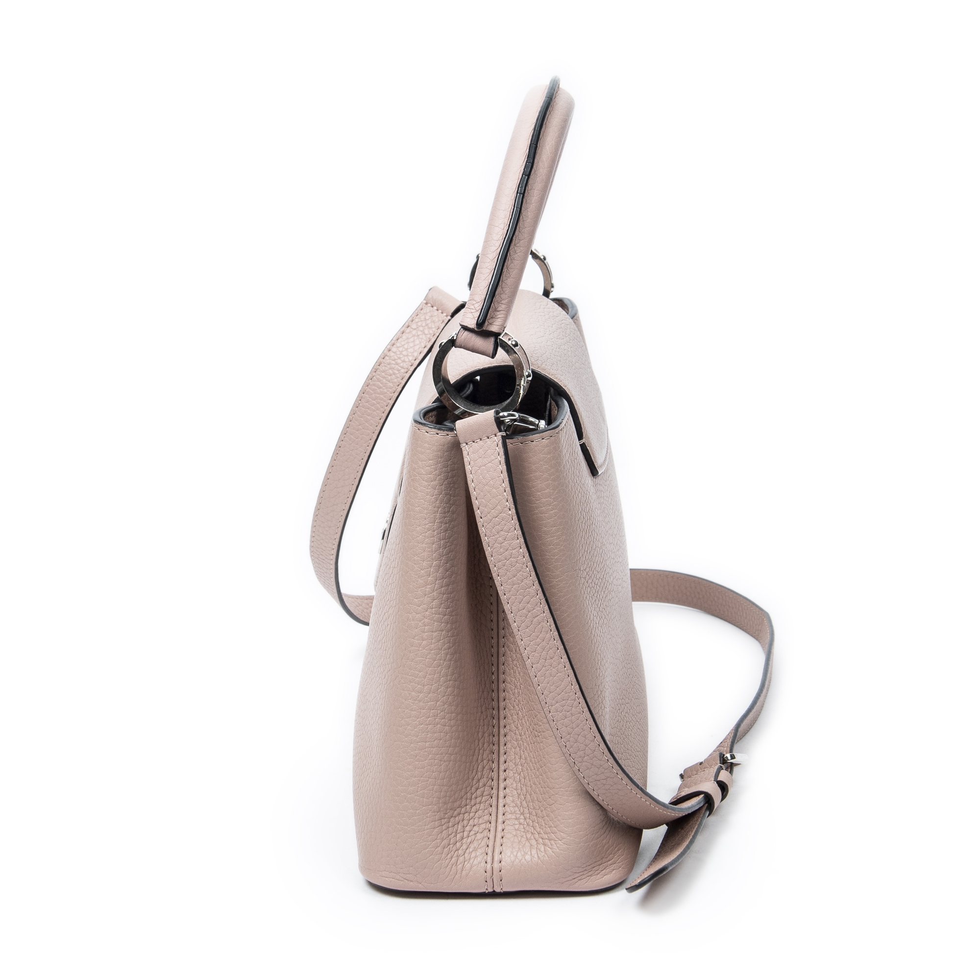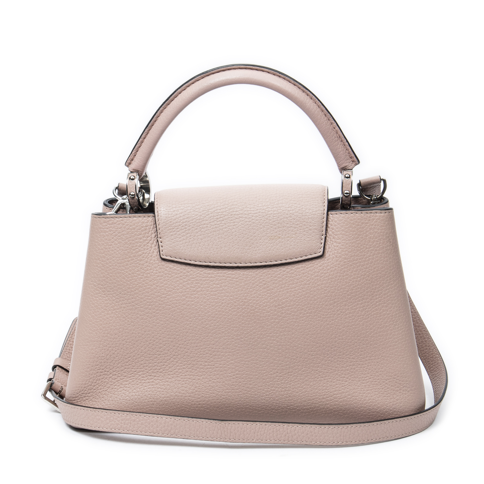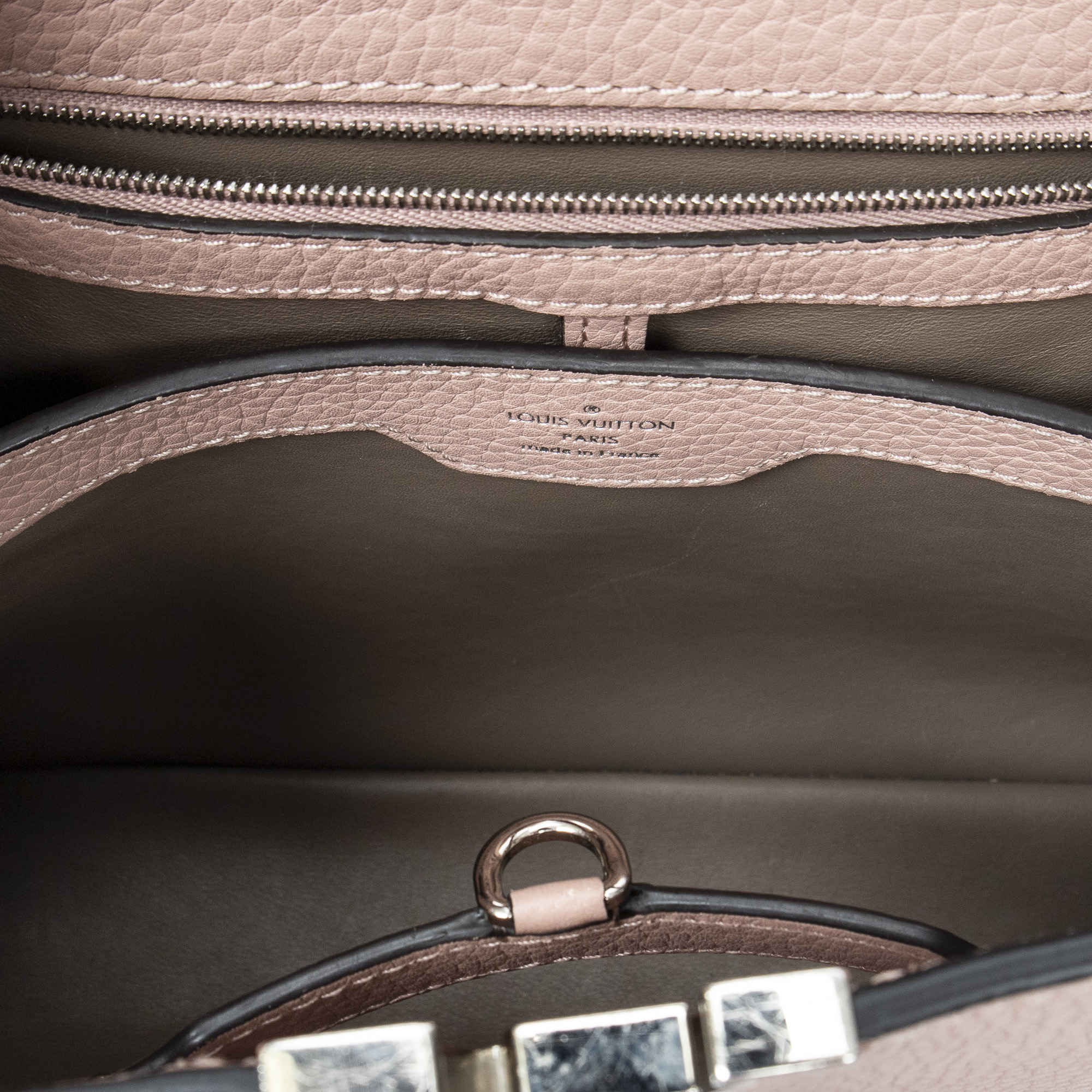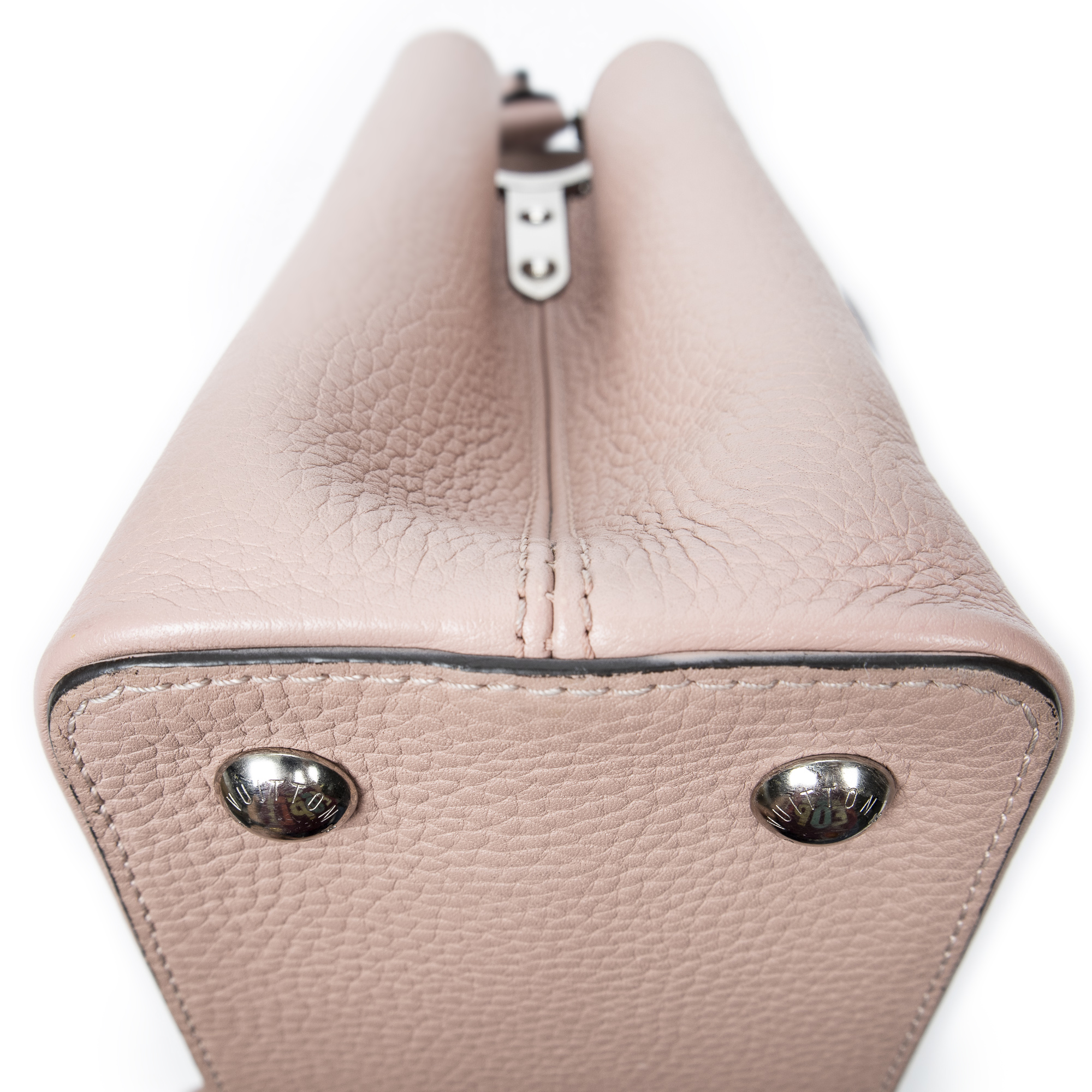 Louis Vuitton Shoulder Bag Capucines PM in Rose Ballerine Taurillon Clemence Leather and Silver Brass hardware. The product is in Perfect Condition (AA).