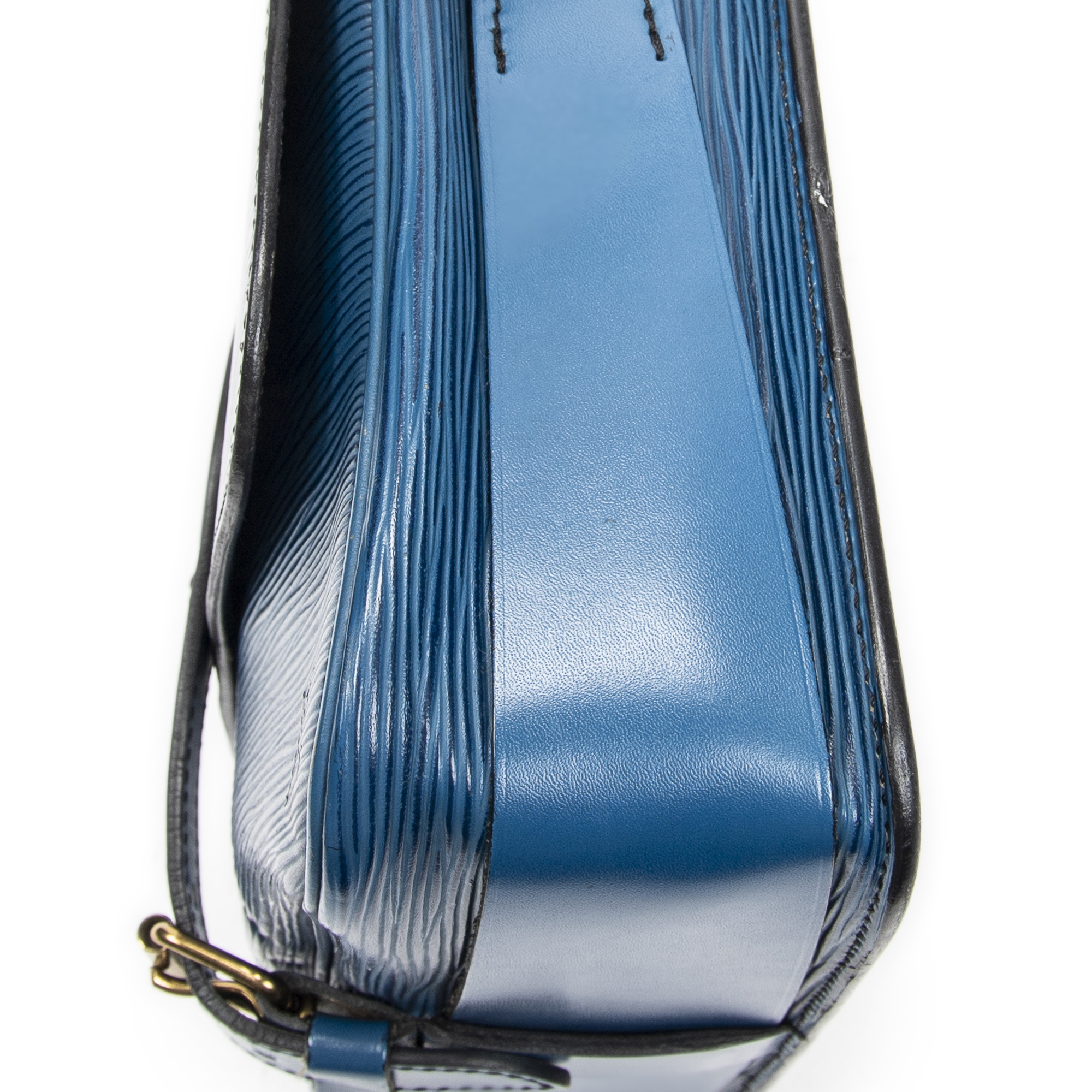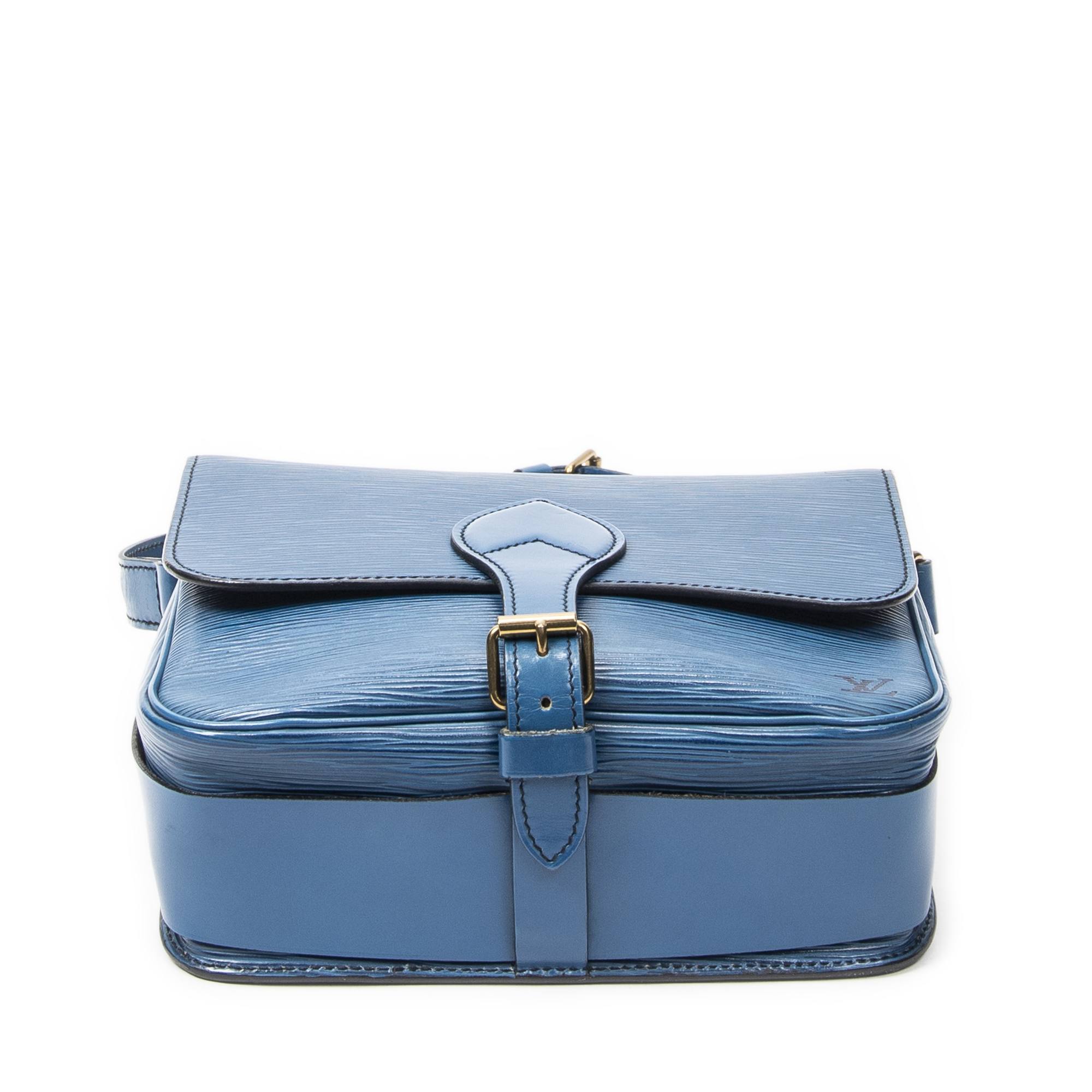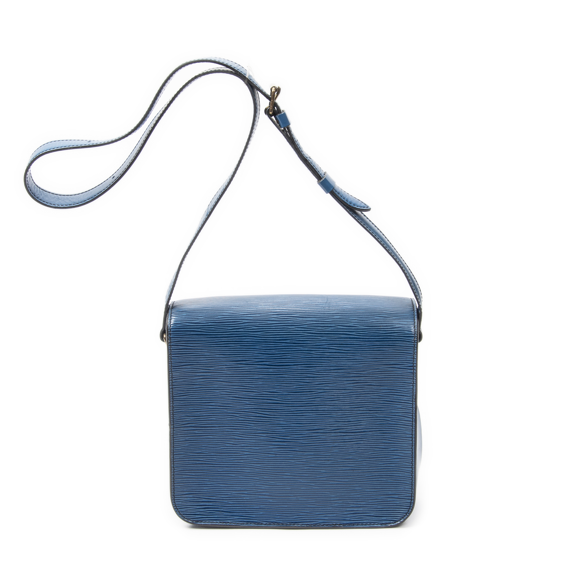 Louis Vuitton Shoulder Bag Cartouchiere Black Stitching MM in Blue Epi and Golden Brass hardware. The product is in Excellent Condition (A).