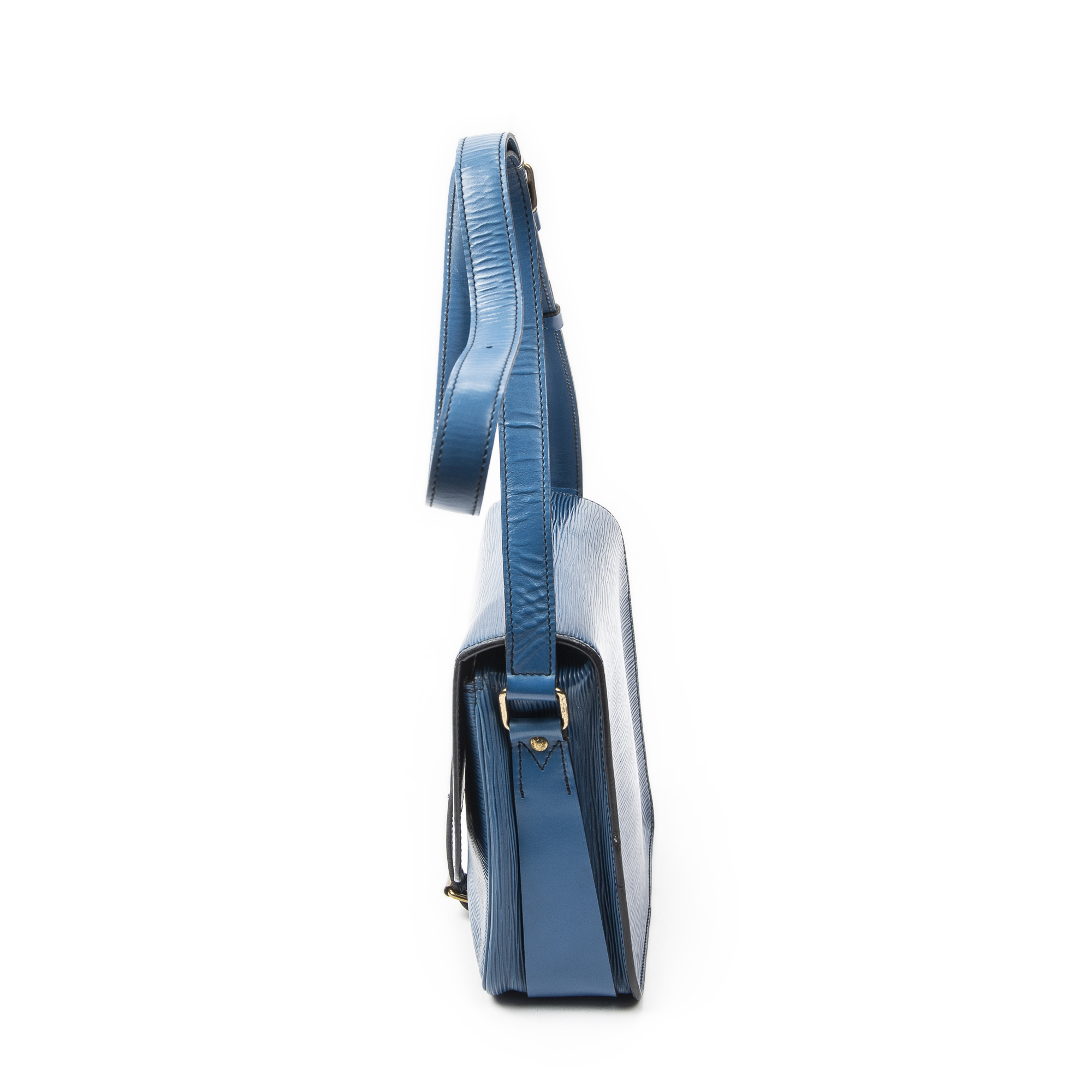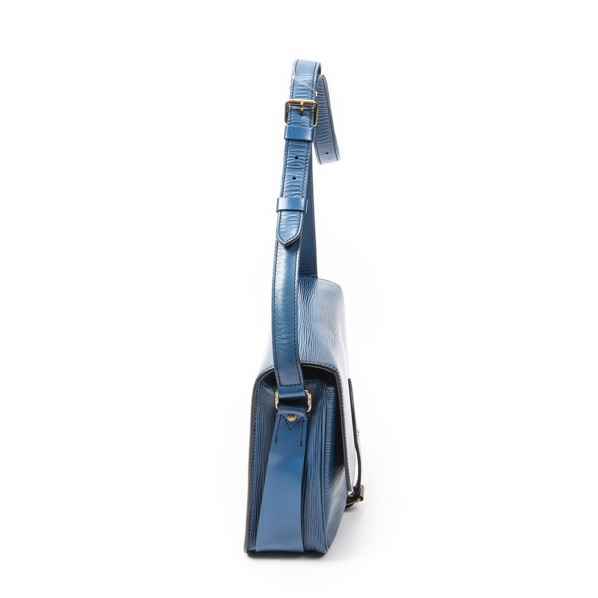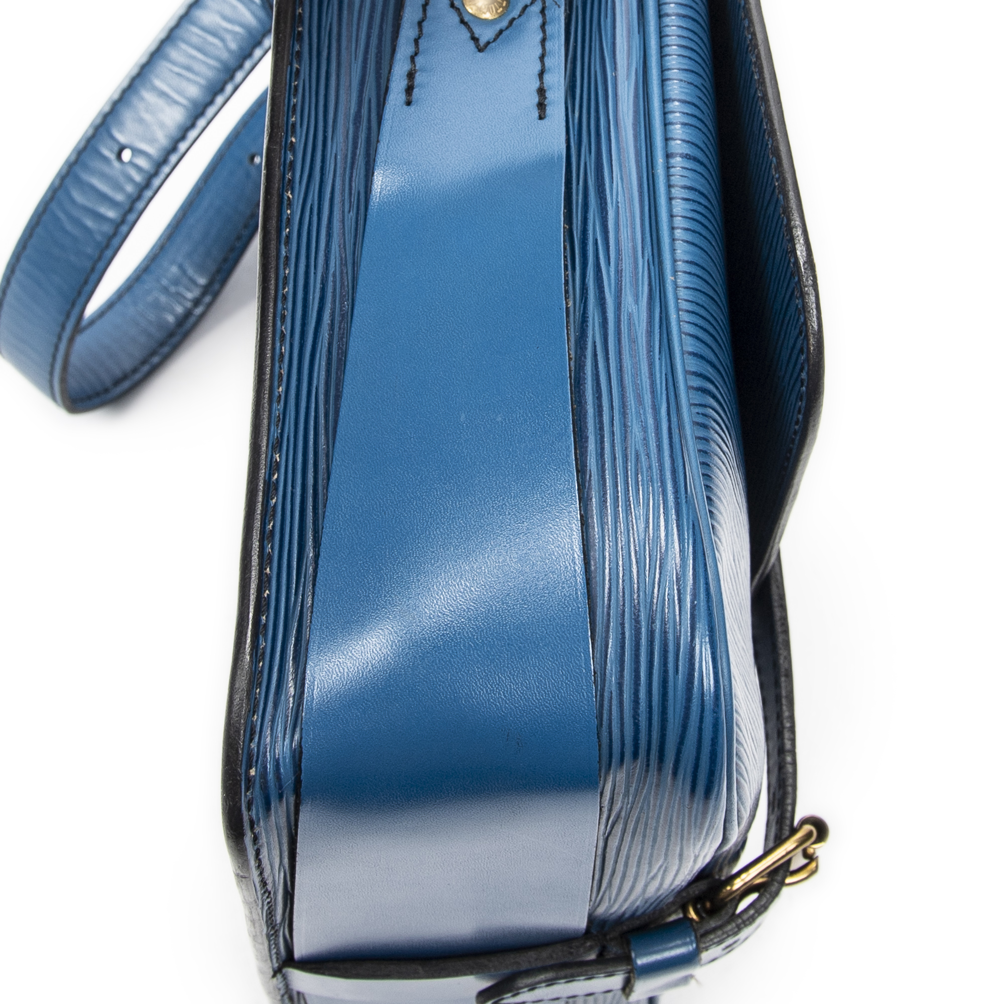 Louis Vuitton Shoulder Bag Cartouchiere Black Stitching MM in Blue Epi and Golden Brass hardware. The product is in Excellent Condition (A).