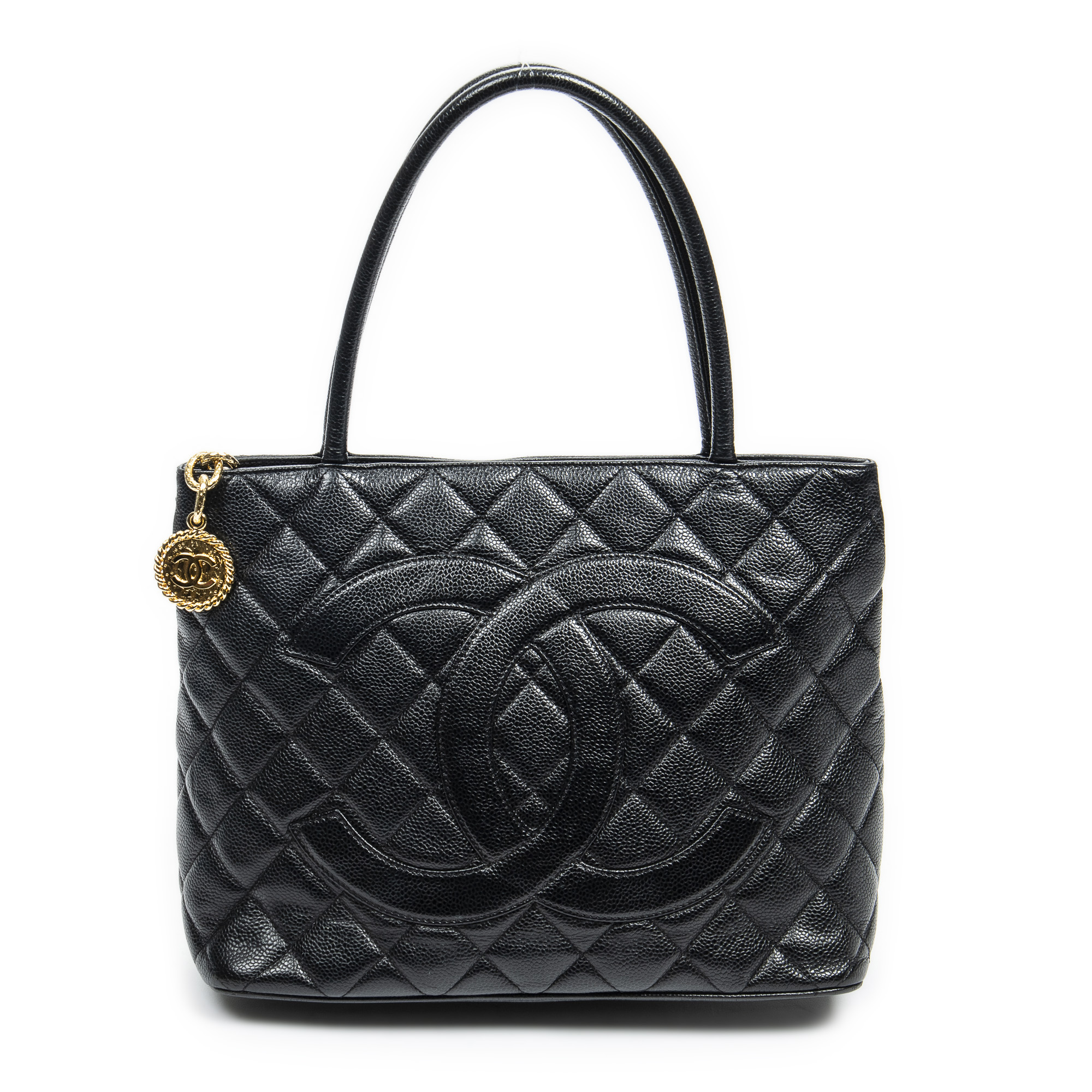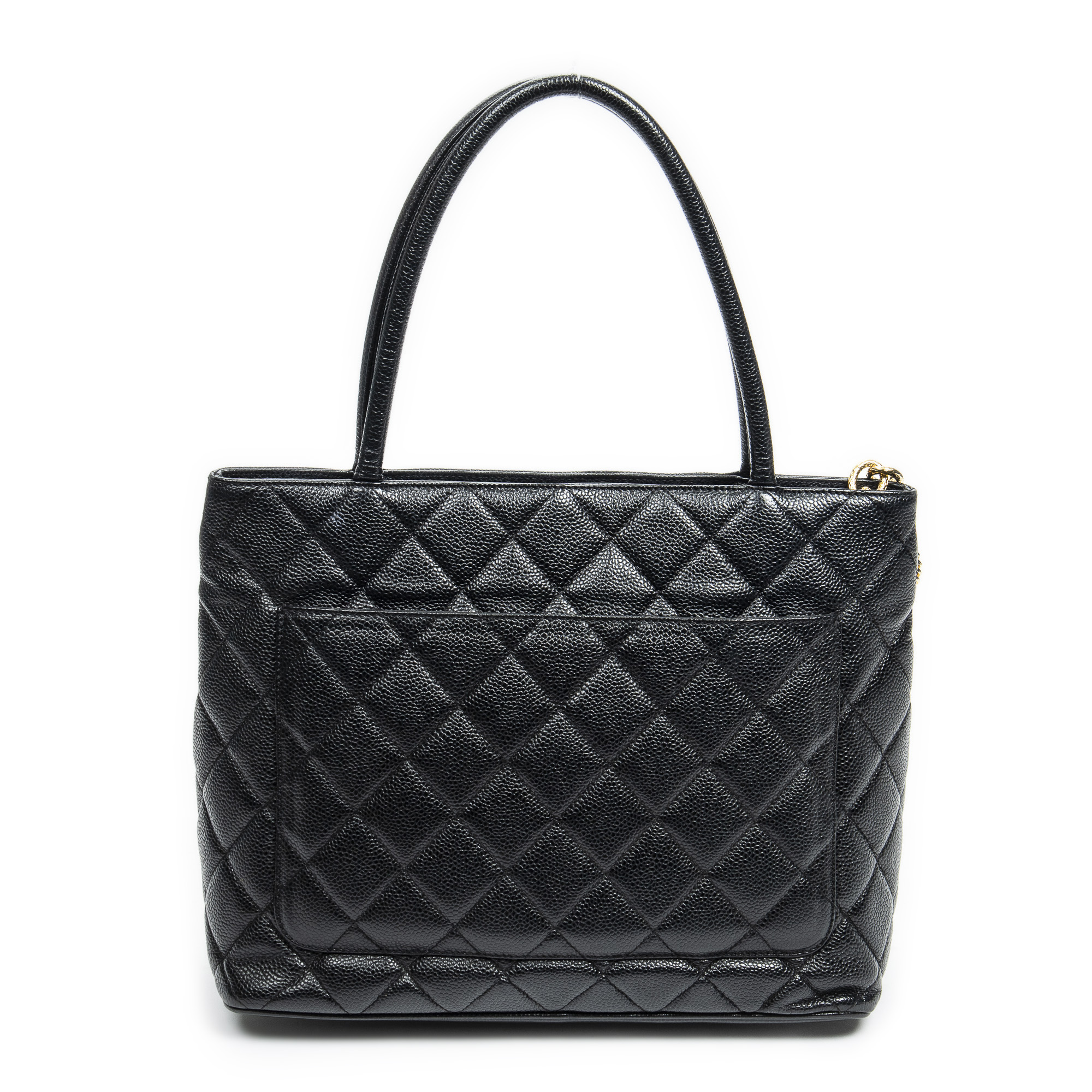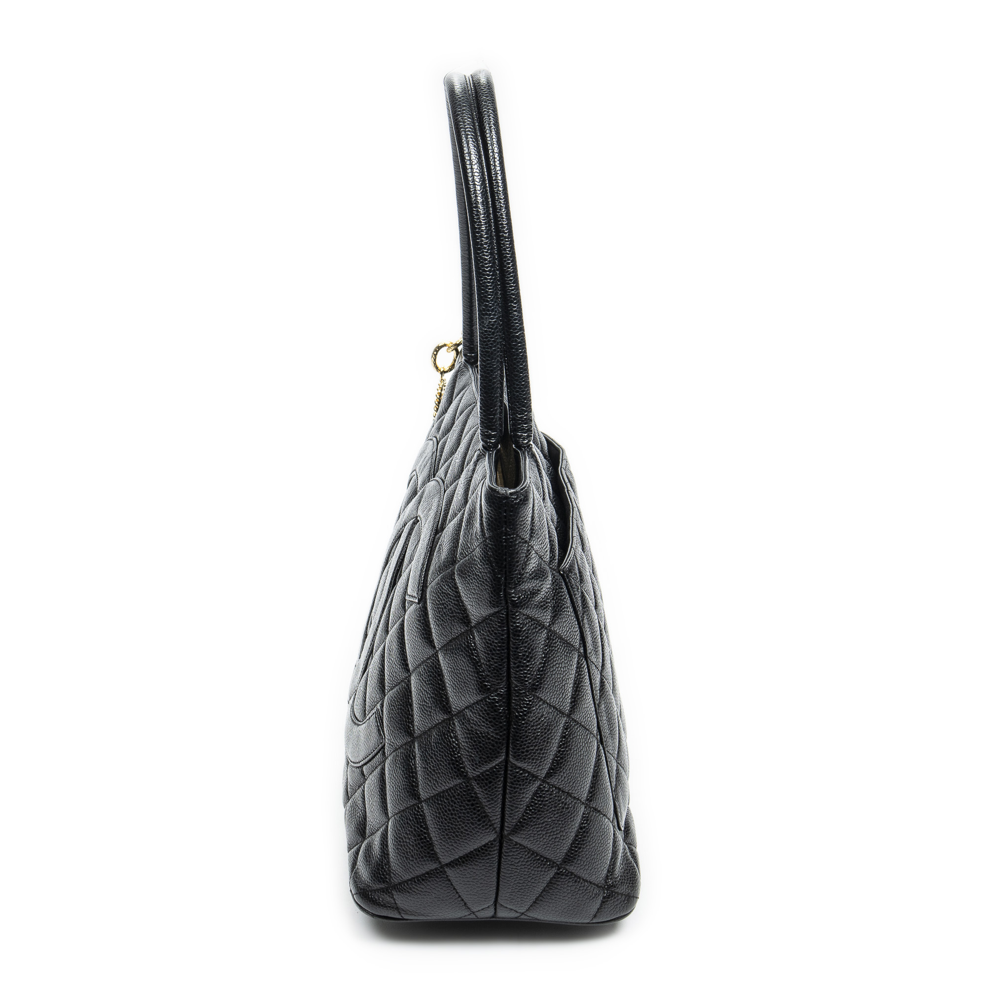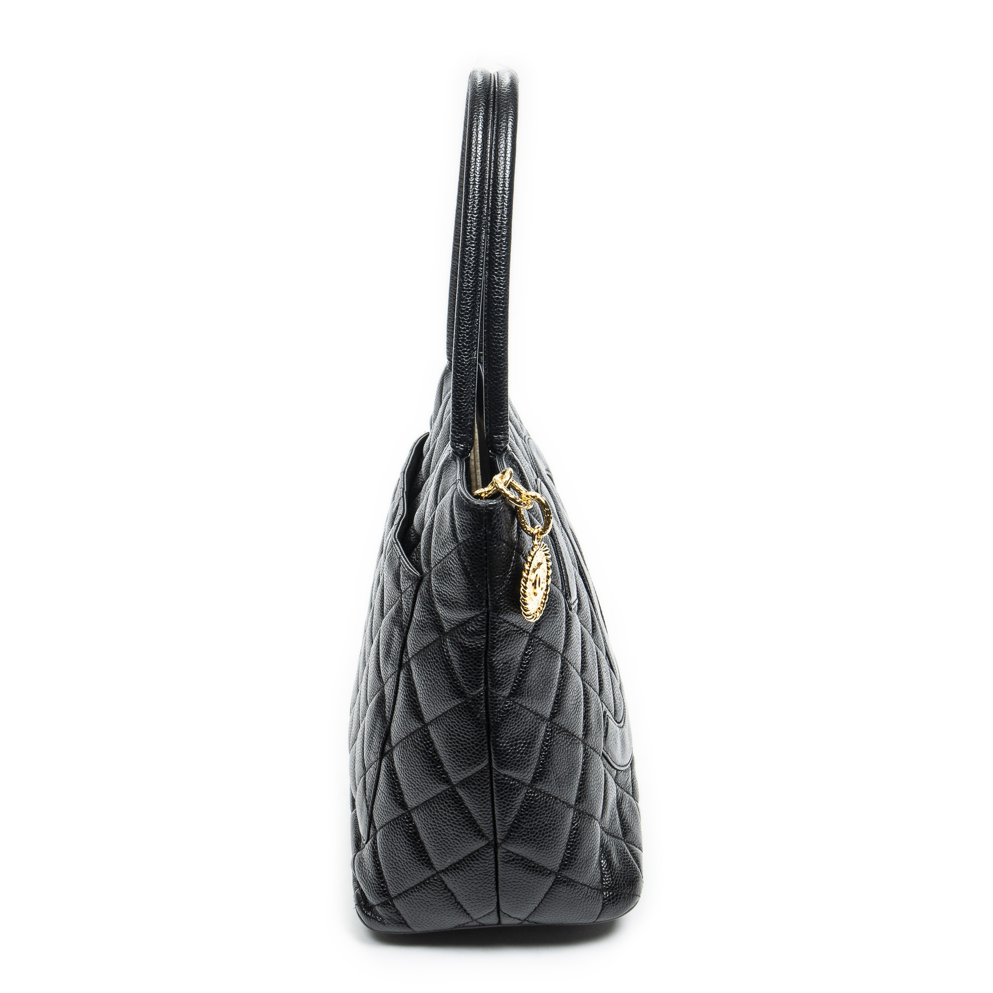 Chanel Shoulder Bag CC Timeless Medallion Tote in Black Quilted Caviar Leather and Gold hardware. The product is in Excellent Condition (A).