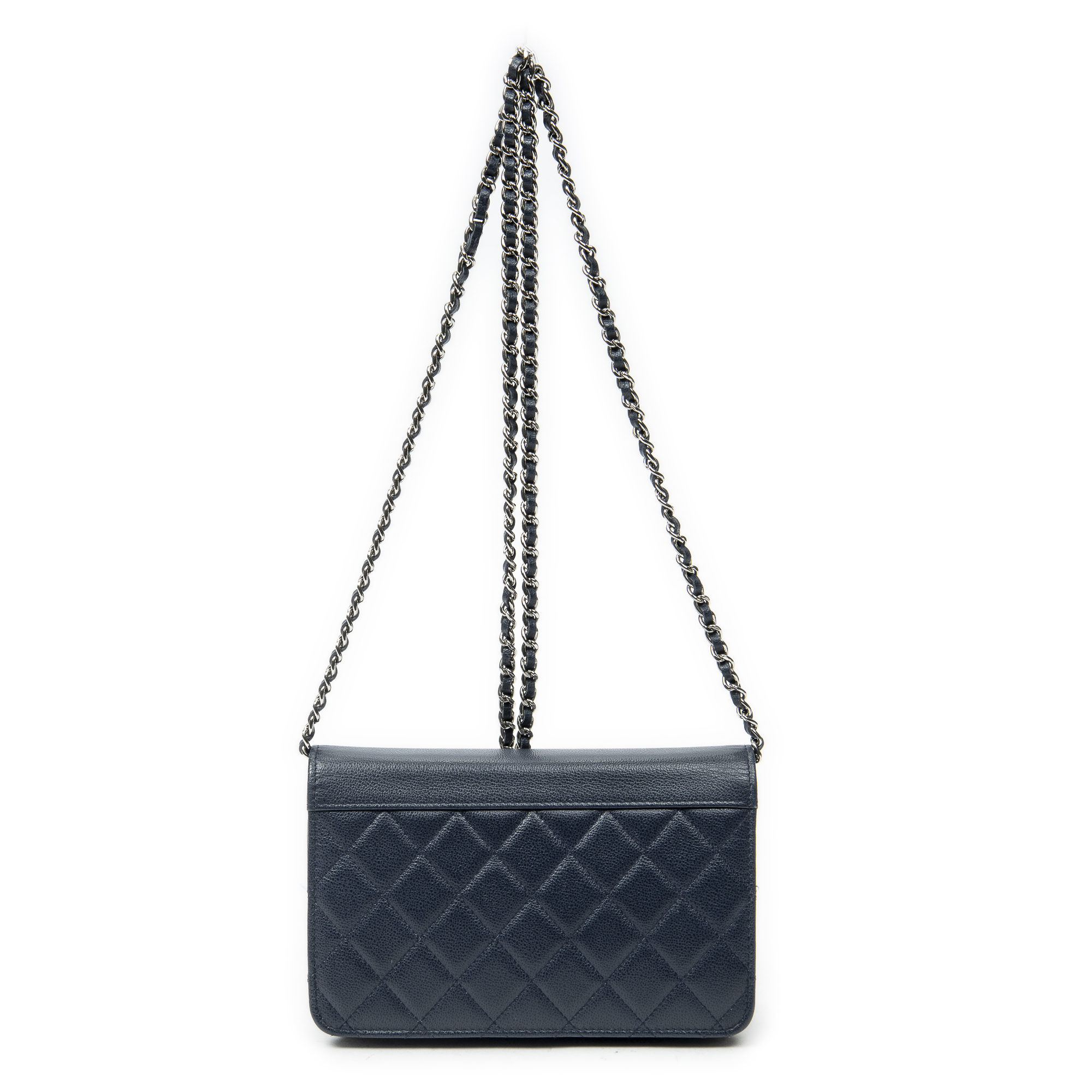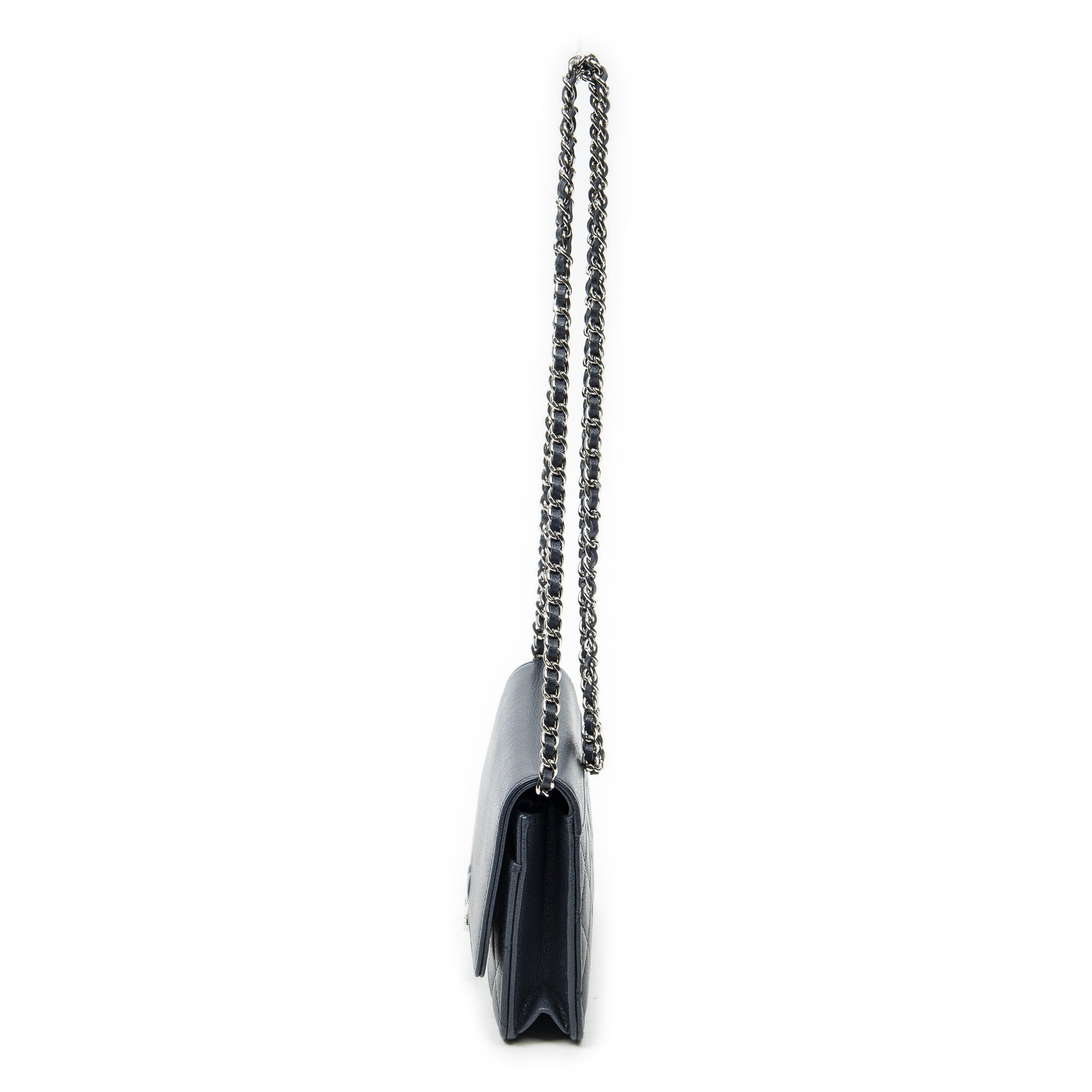 Chanel Shoulder Bag CC Urban Companion Wallet on Chain in Navy Quilted Caviar Leather and Silver hardware. The product is in Perfect Condition (AA).