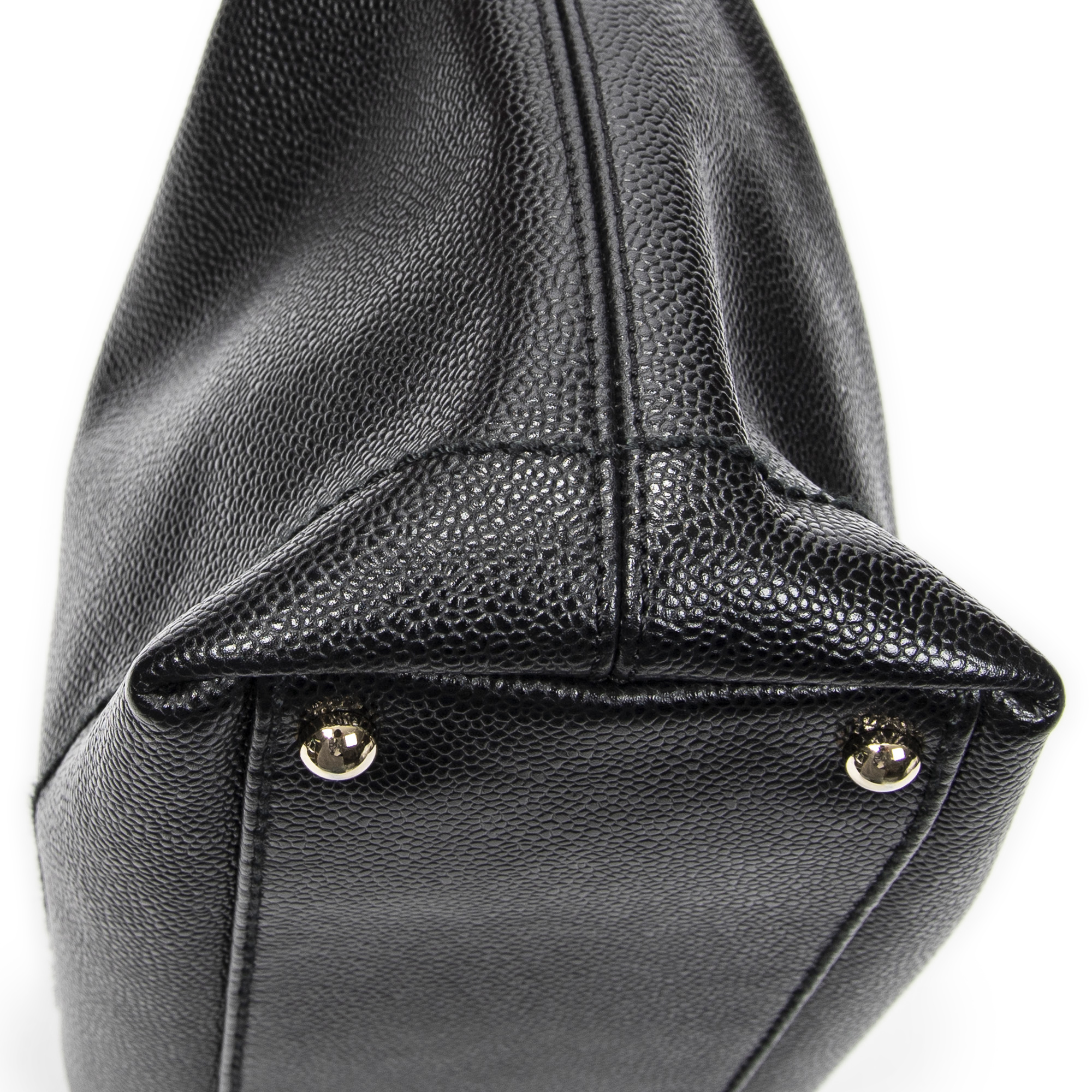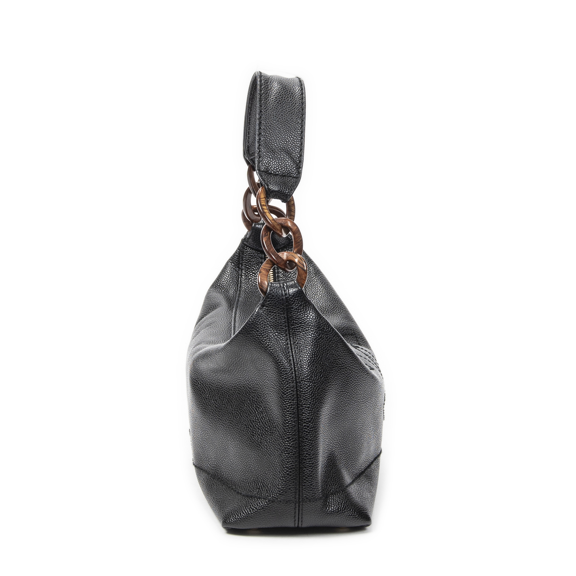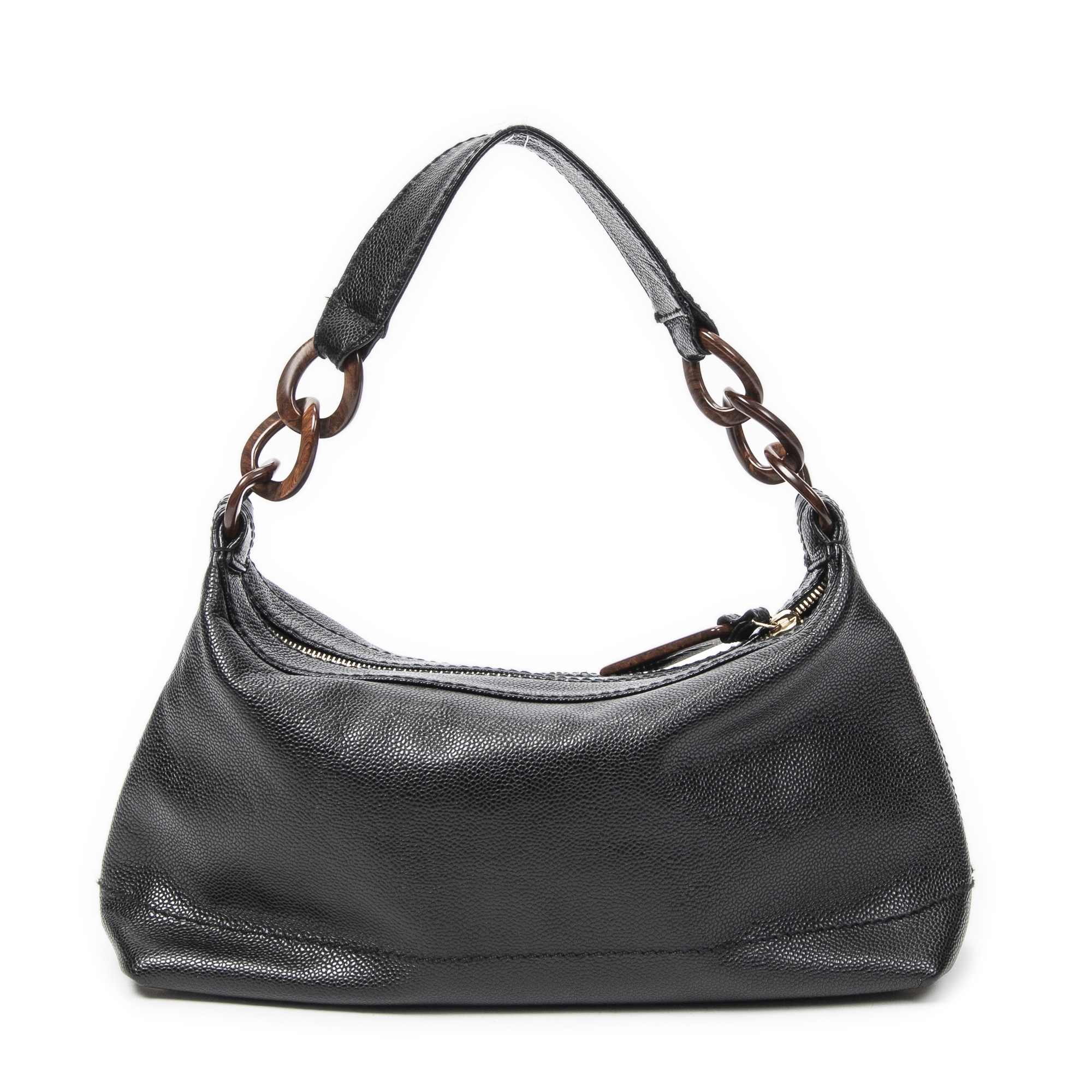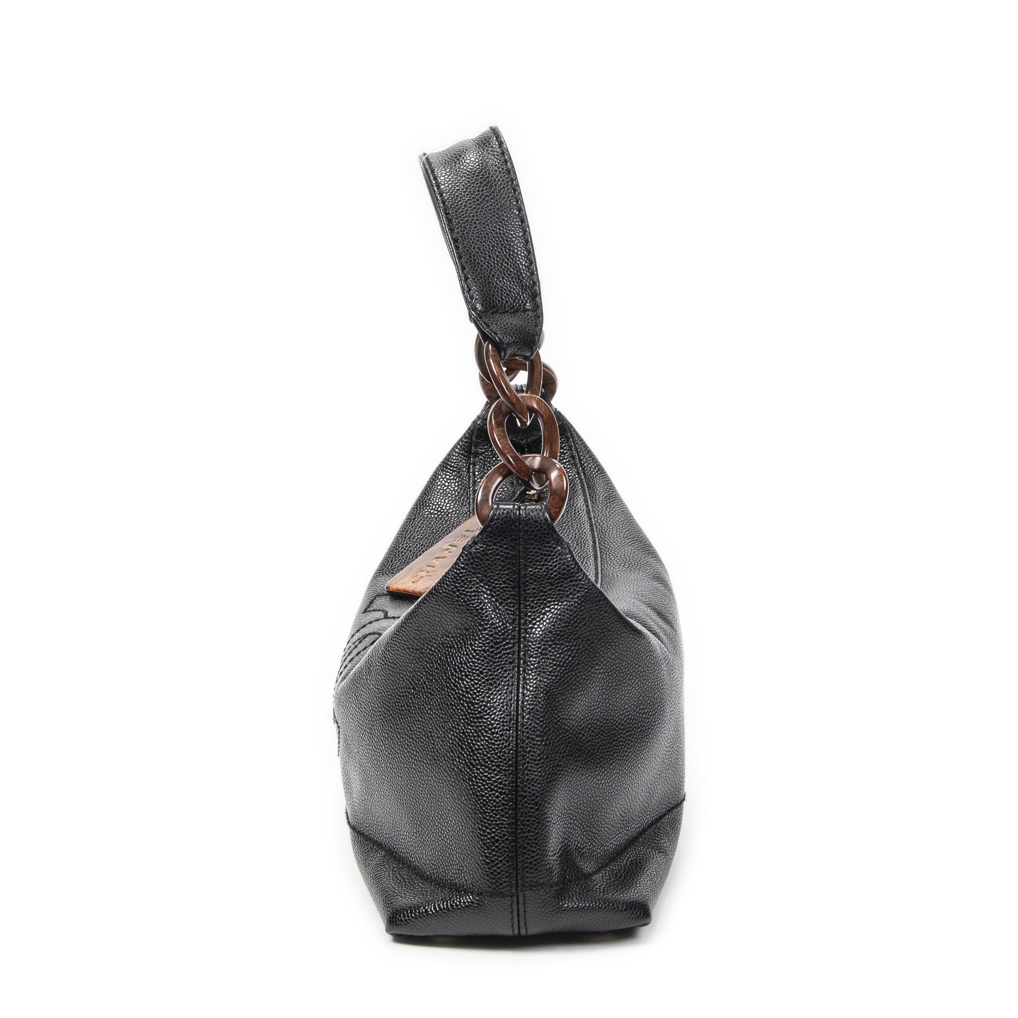 Chanel Shoulder Bag CC Wood Chain Hobo in Black Caviar Leather and Gold hardware. The product is in Excellent Condition (A).