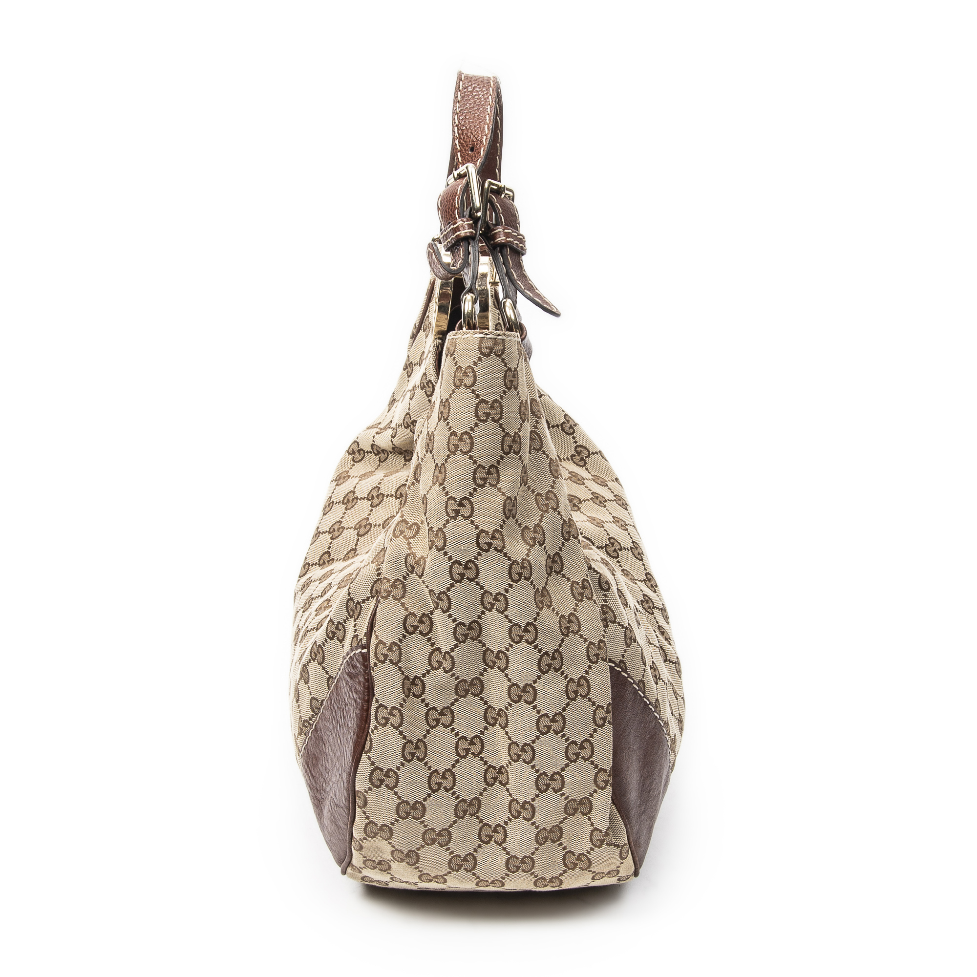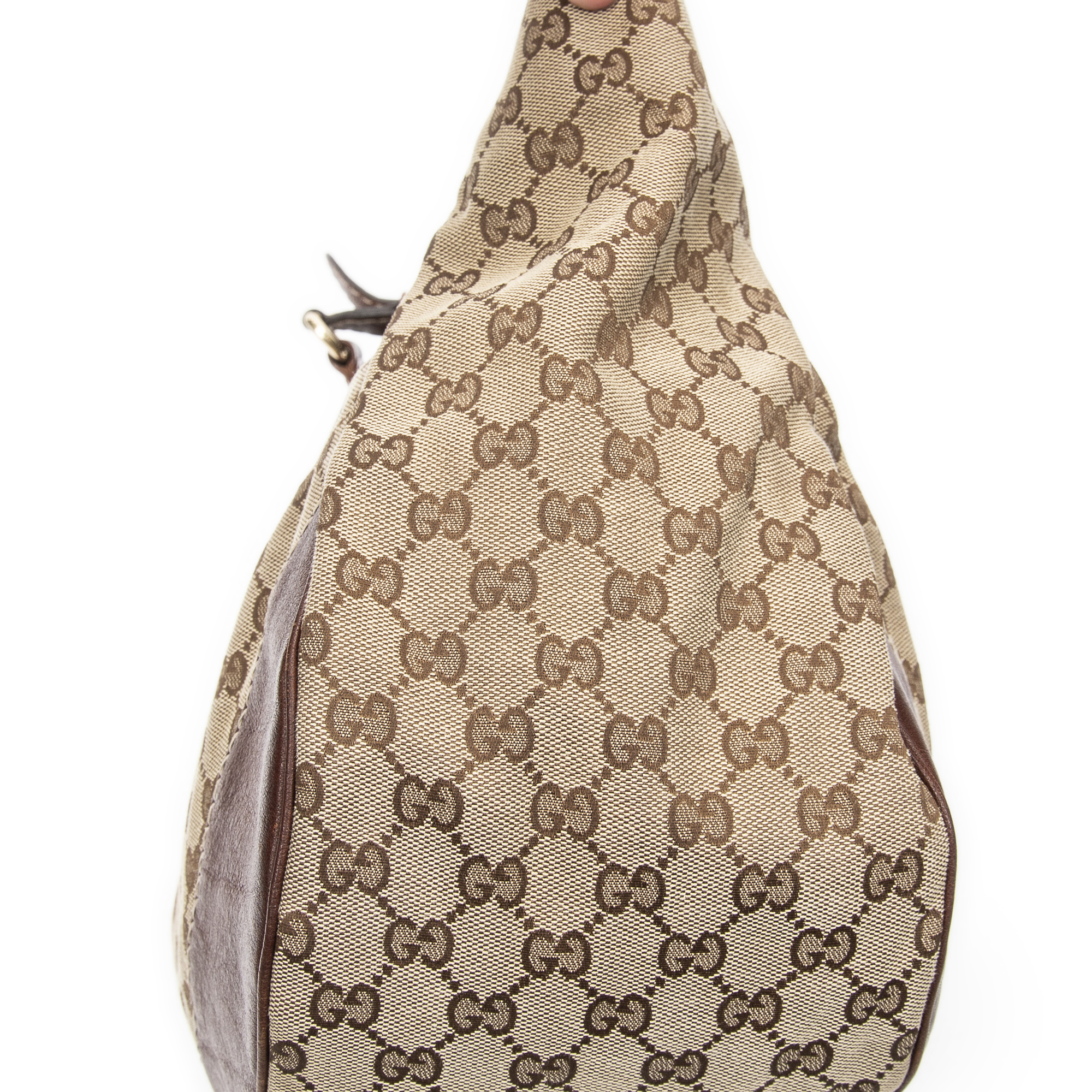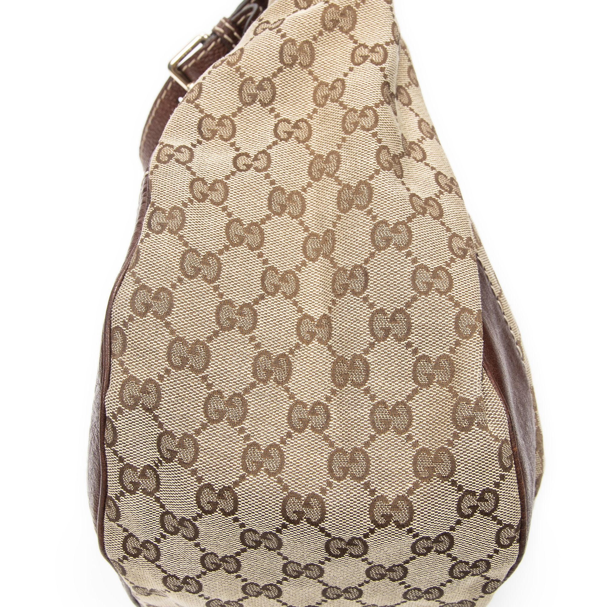 Gucci Shoulder Bag Charlotte Hobo in Beige/Brown Monogrammed Canvas and Gold hardware. The product is in Excellent Condition (A).