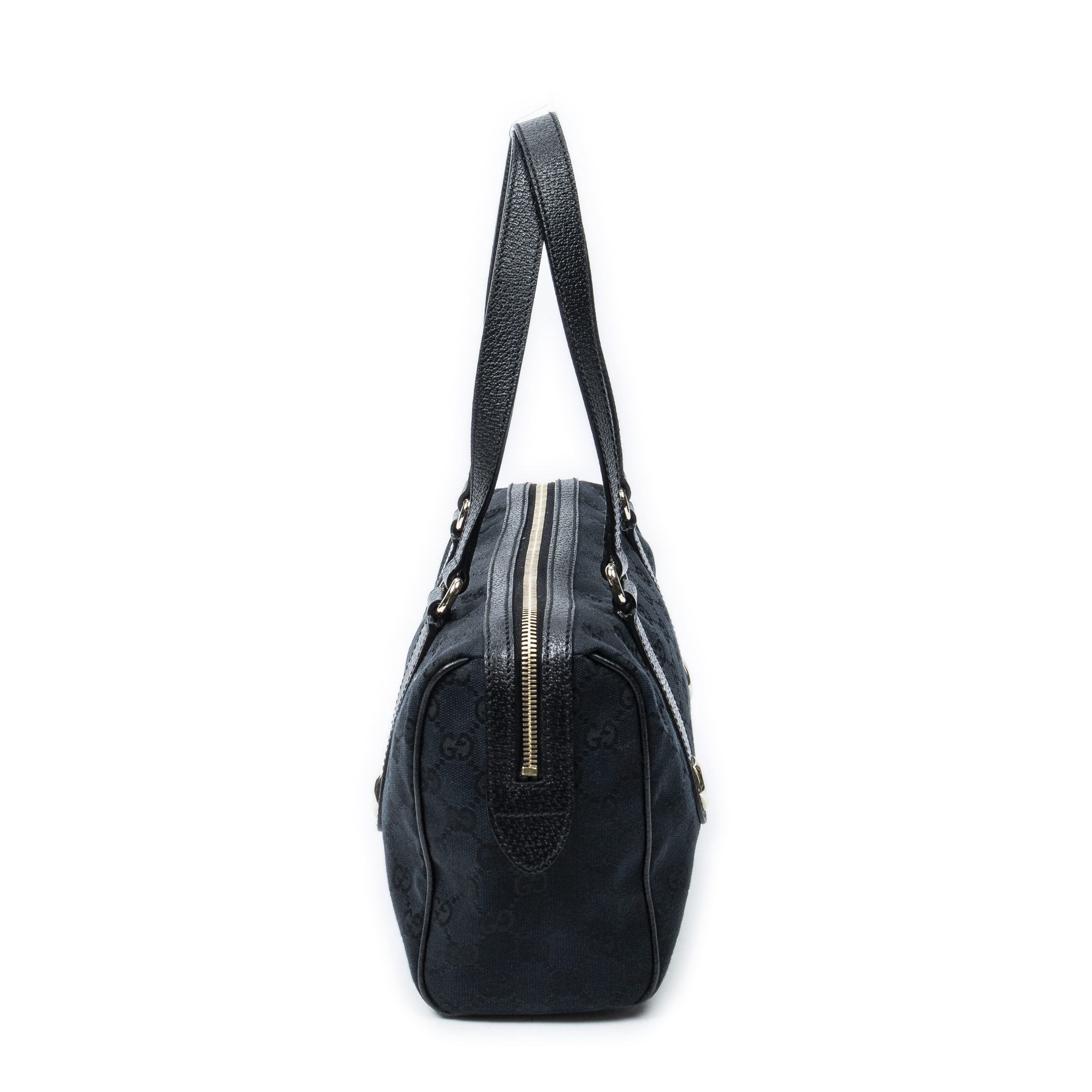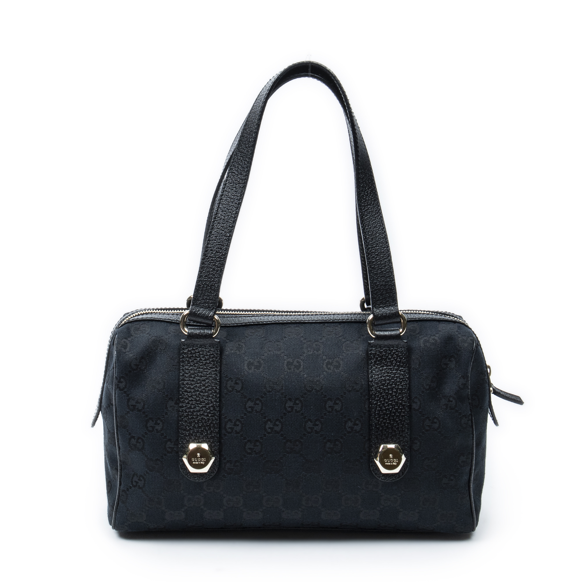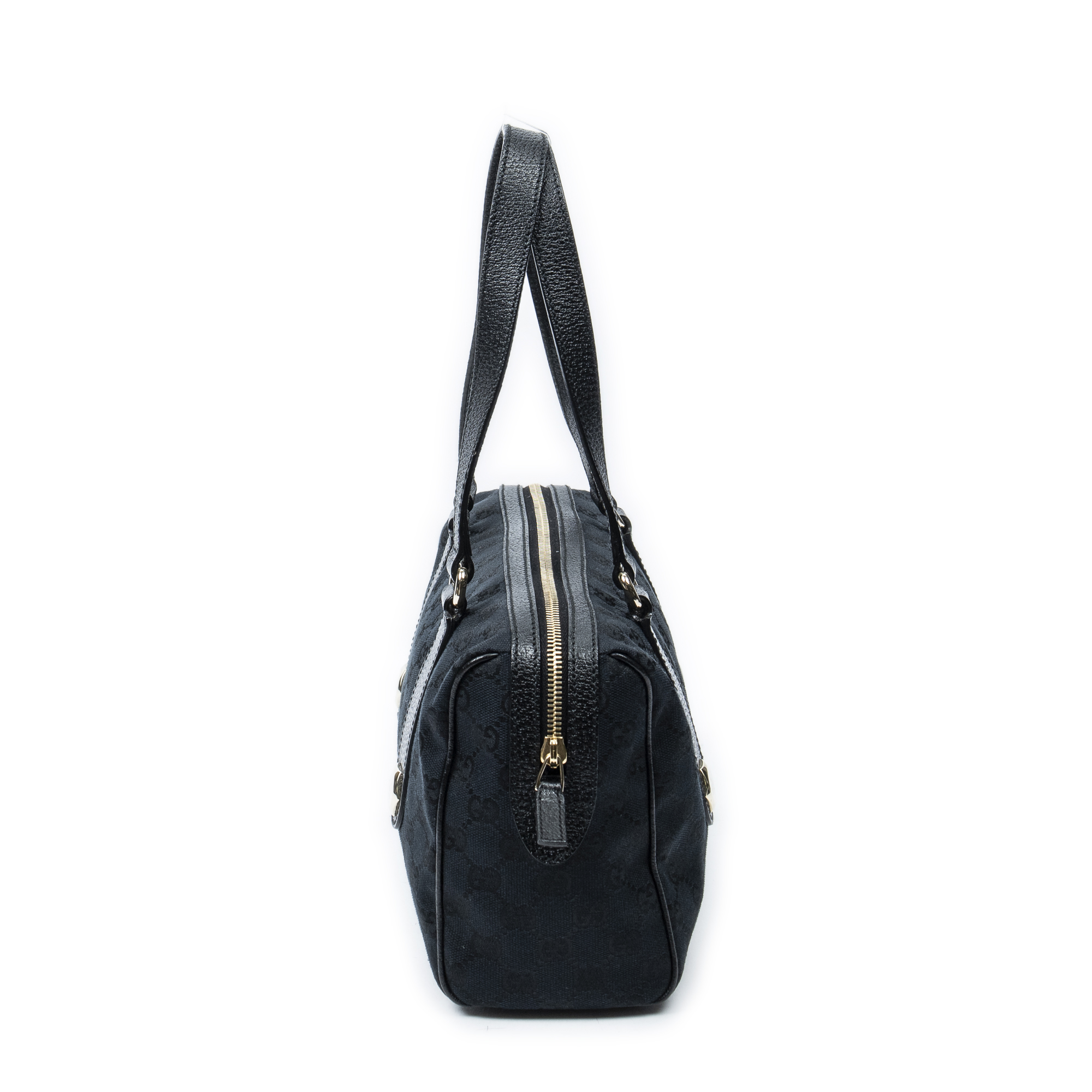 Gucci Shoulder Bag Charmy Boston in Black Monogrammed Canvas and Gold hardware. The product is in Perfect Condition (AA).