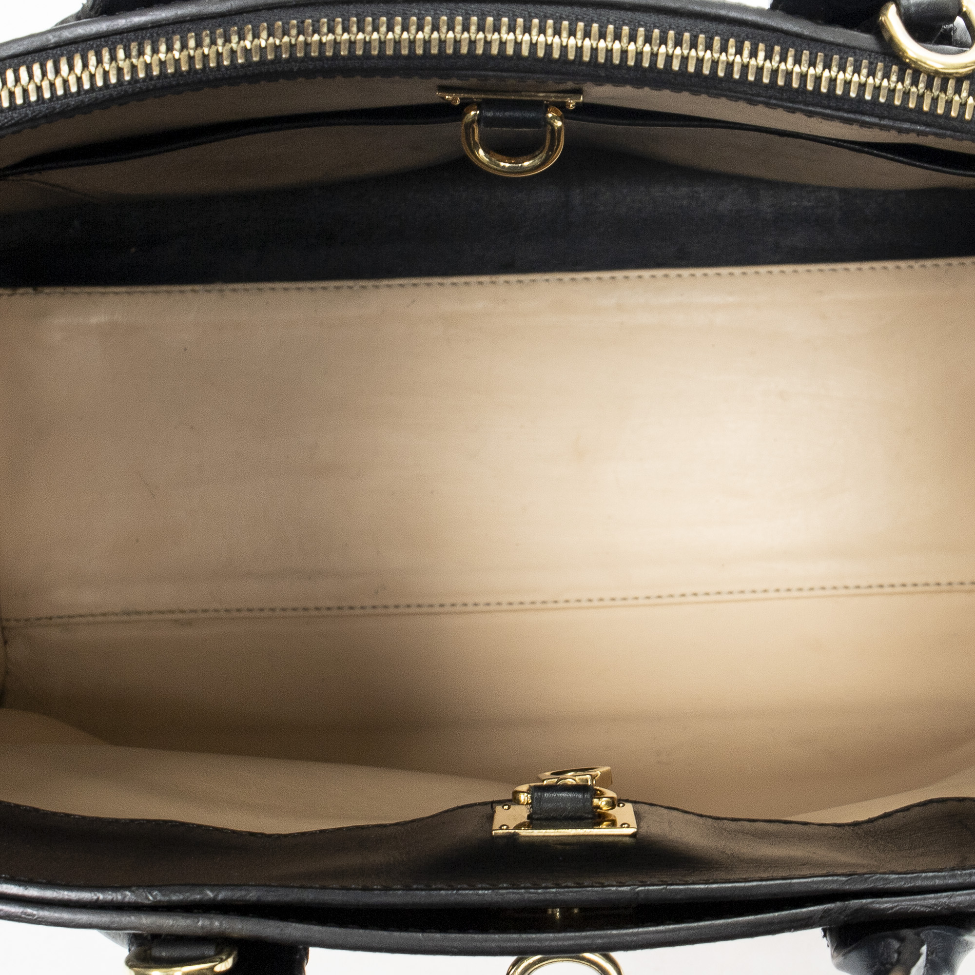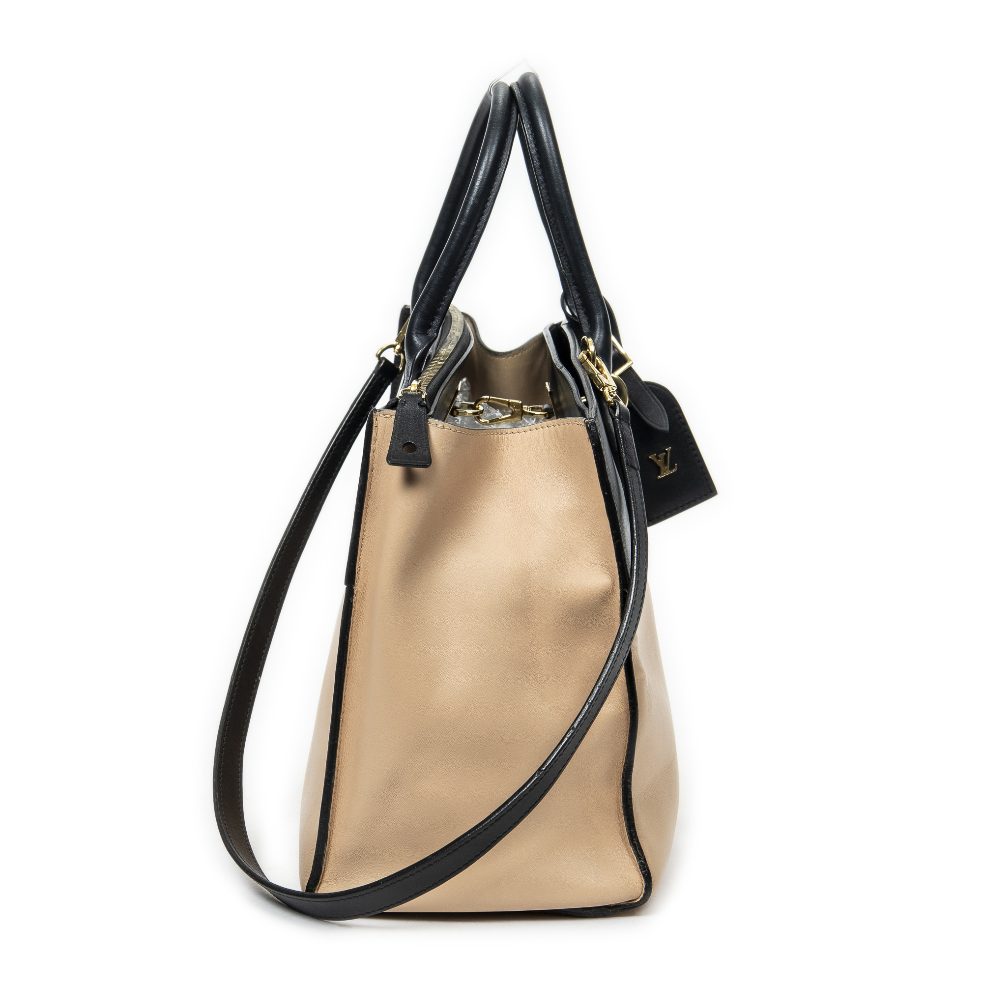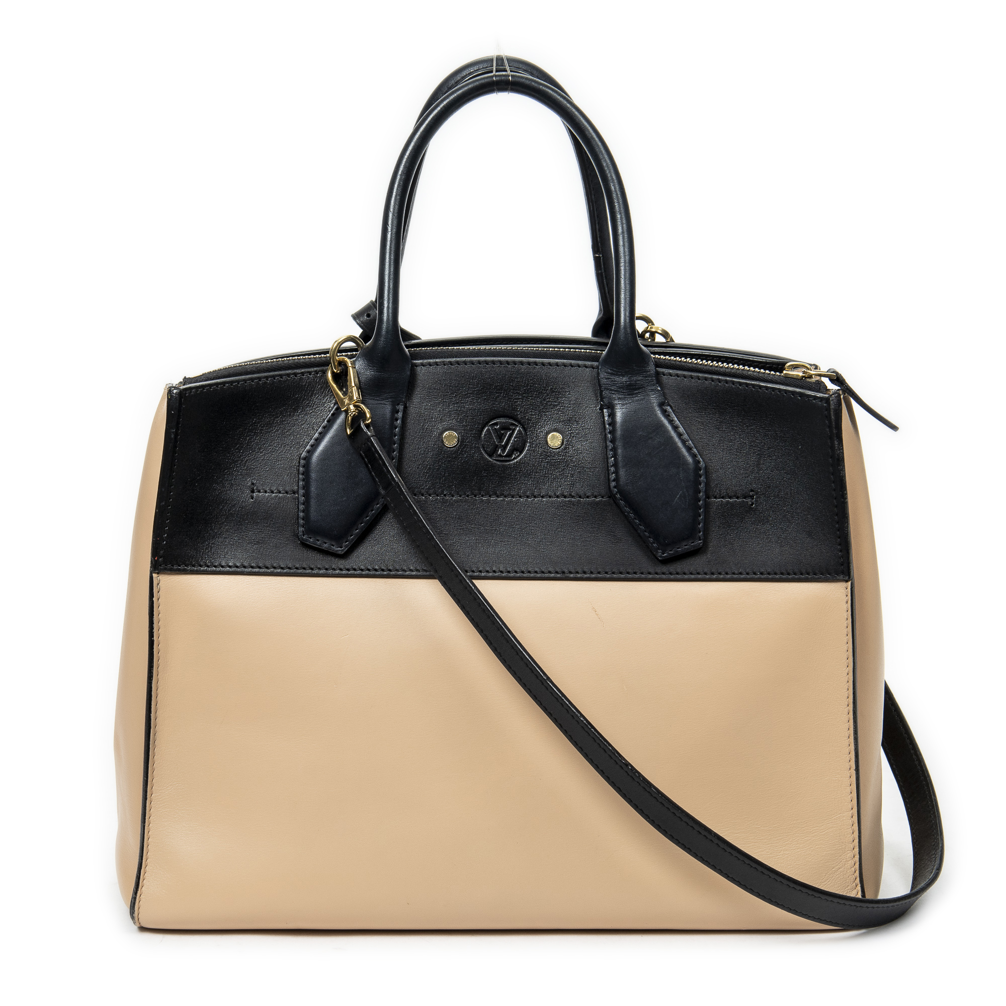 Louis Vuitton Shoulder Bag City Steamer MM in Black/Peach Calfskin Leather and Golden Brass hardware. The product is in Excellent Condition (A).