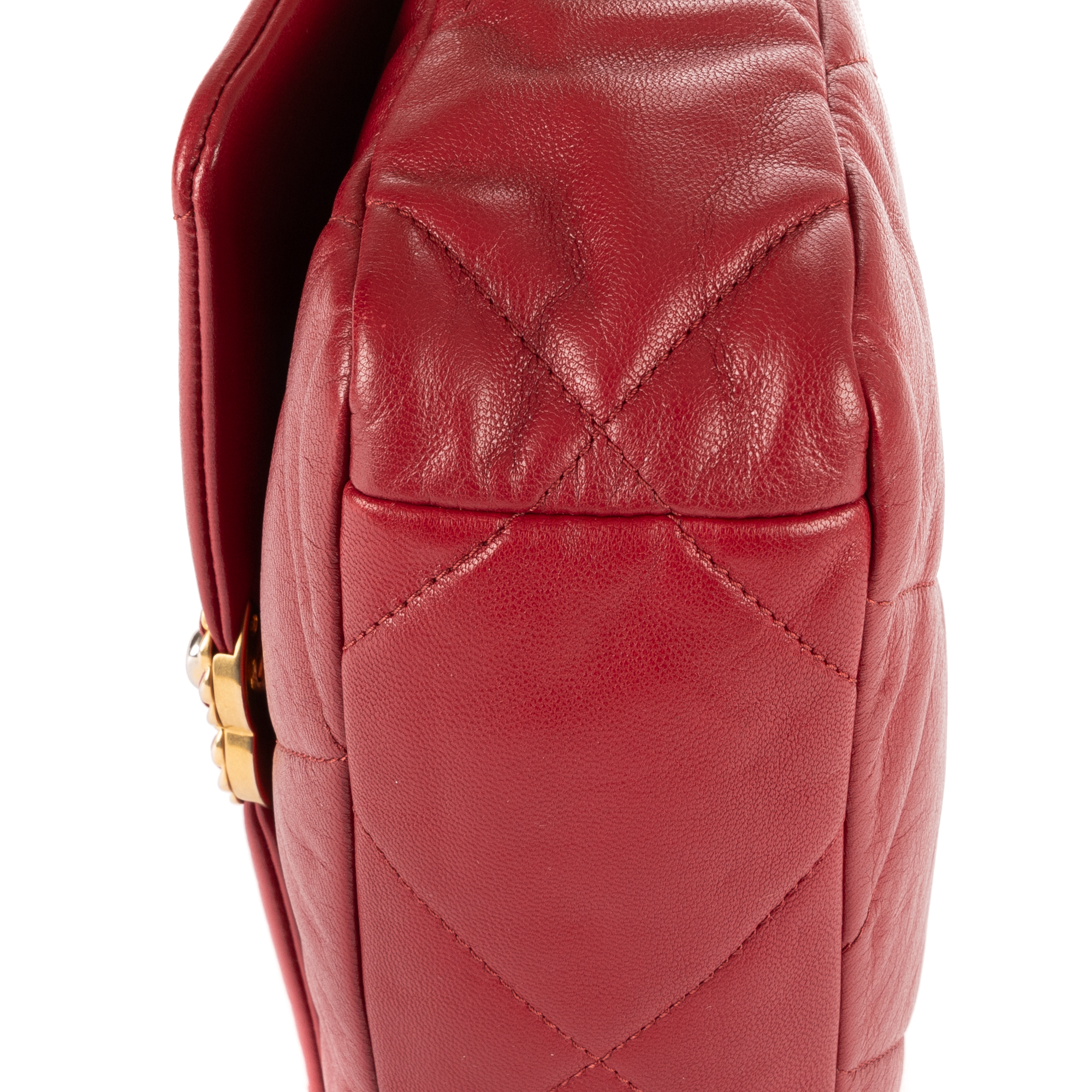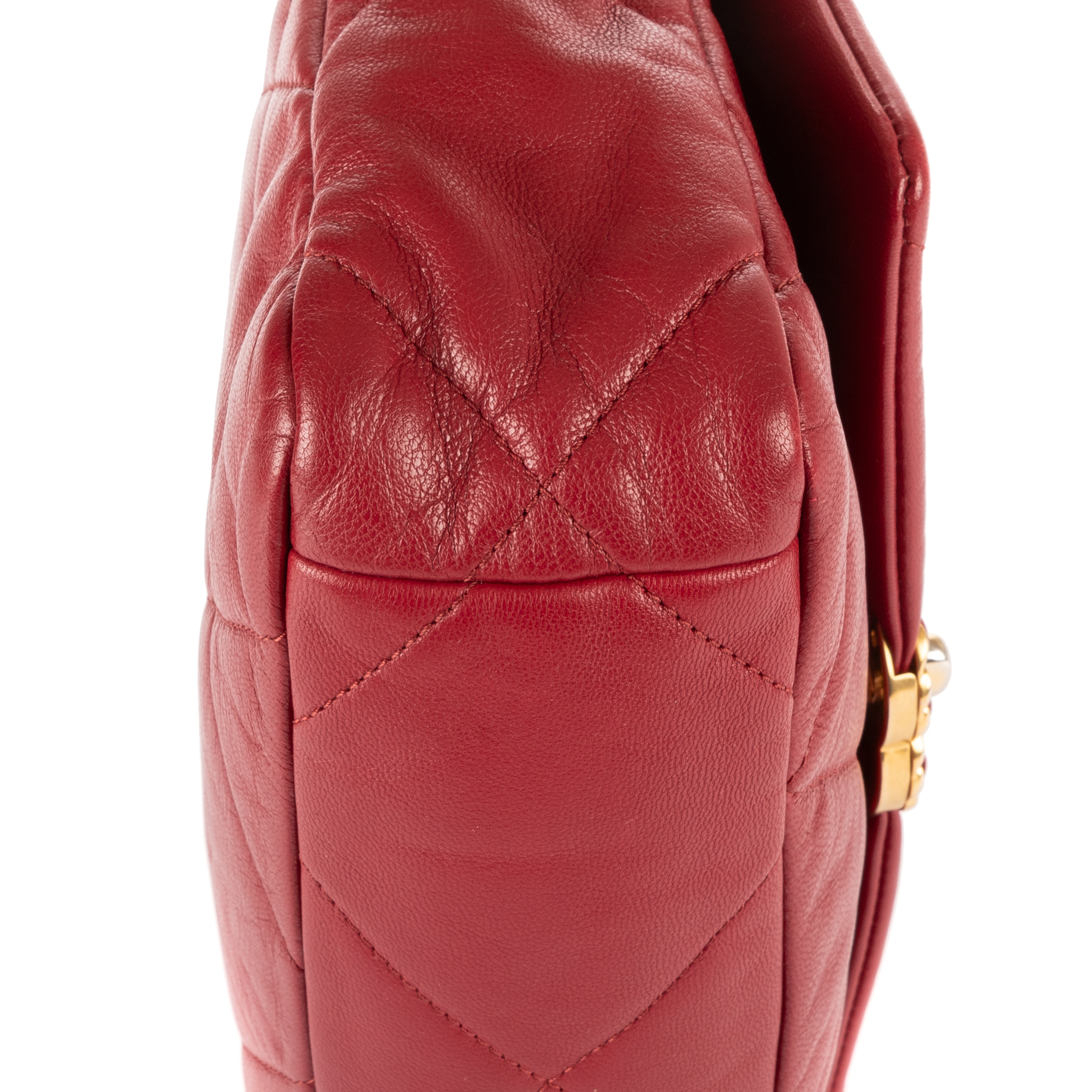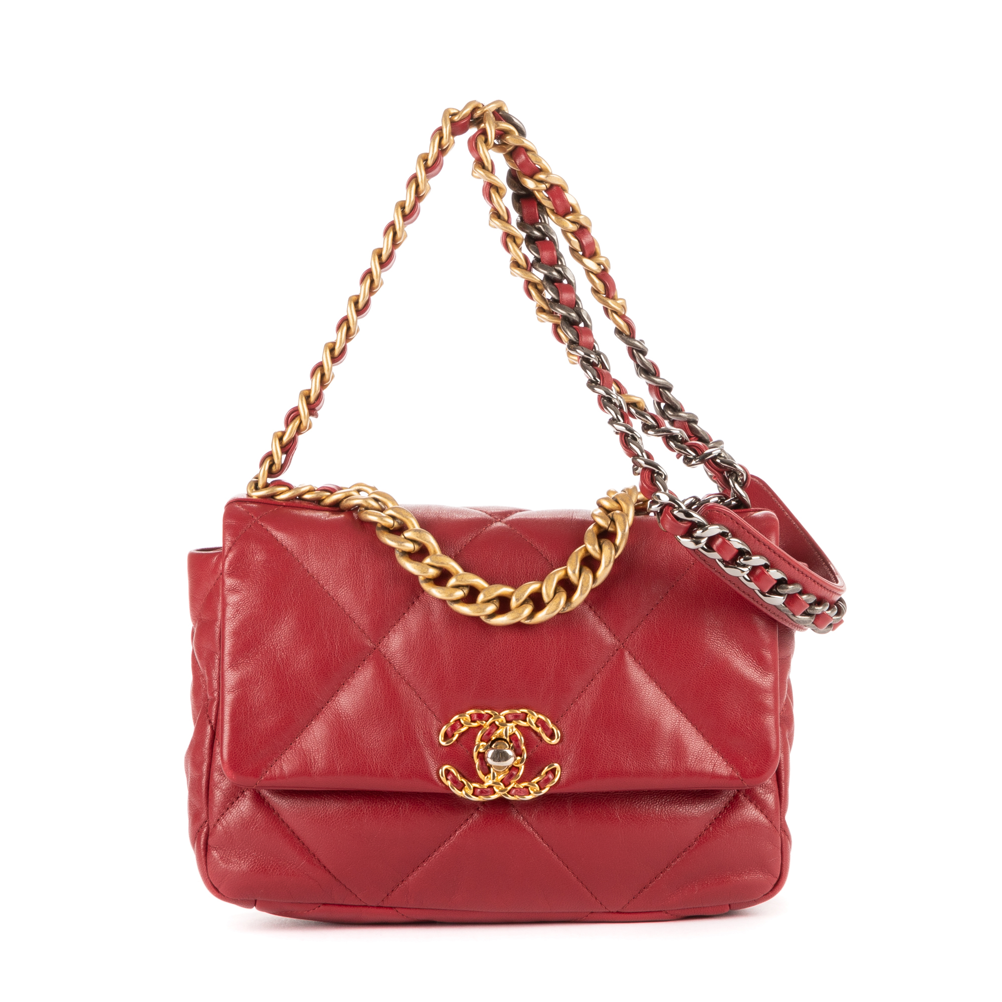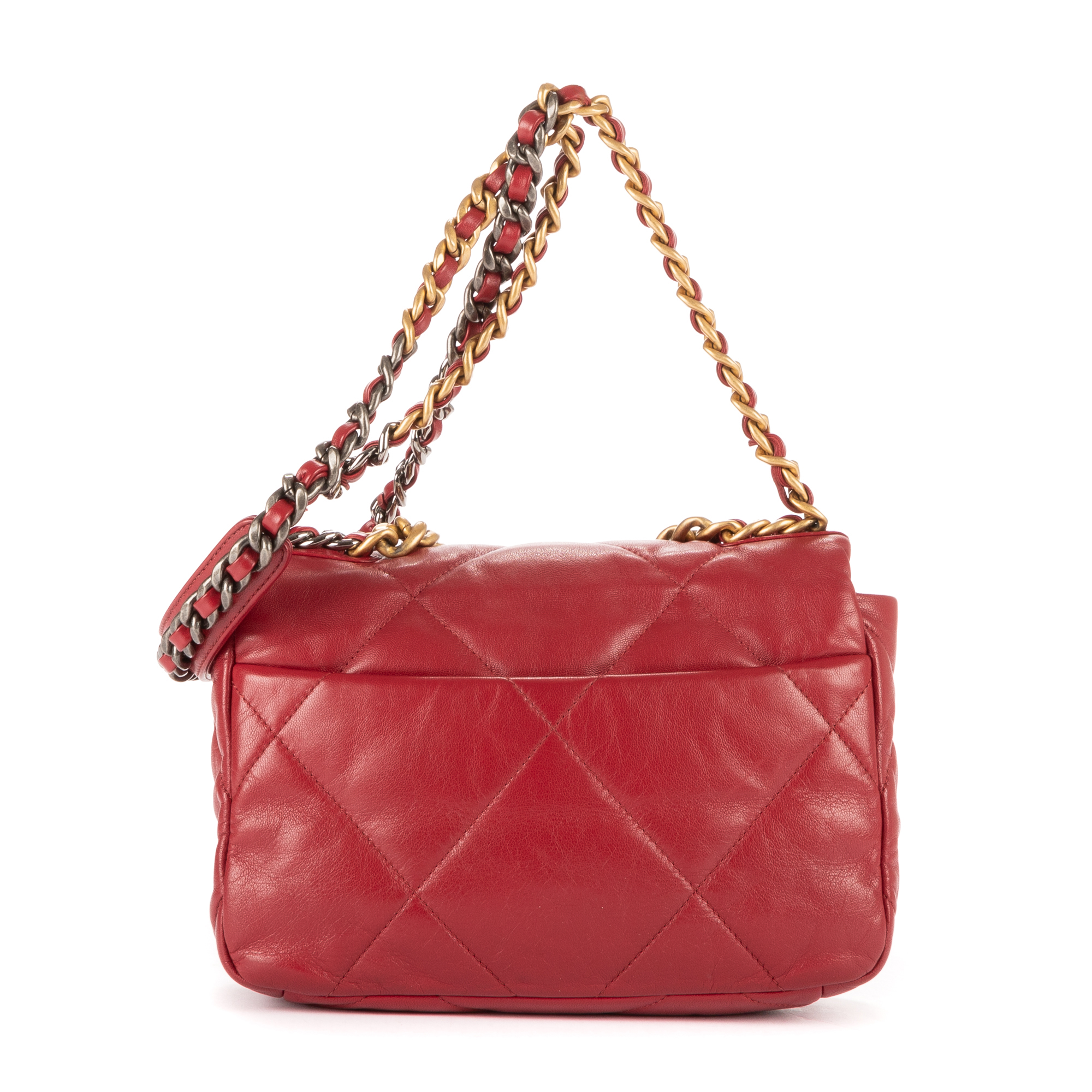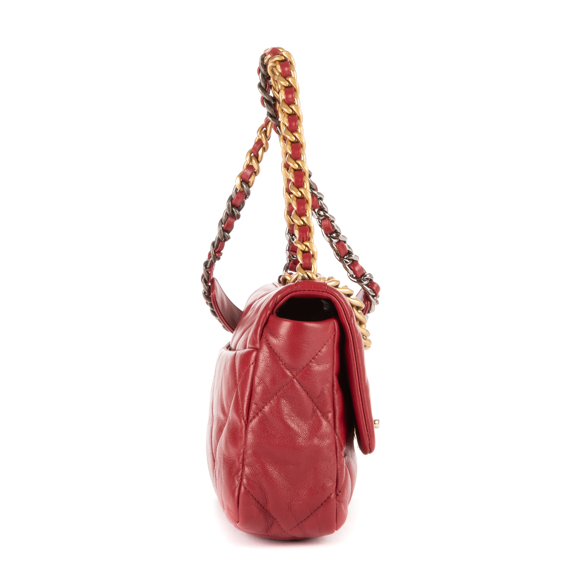 Chanel Shoulder Bag Classic 19 Flap Small in Burgundy Calfskin leather and Gold hardware. The product is in Excellent Condition (A).