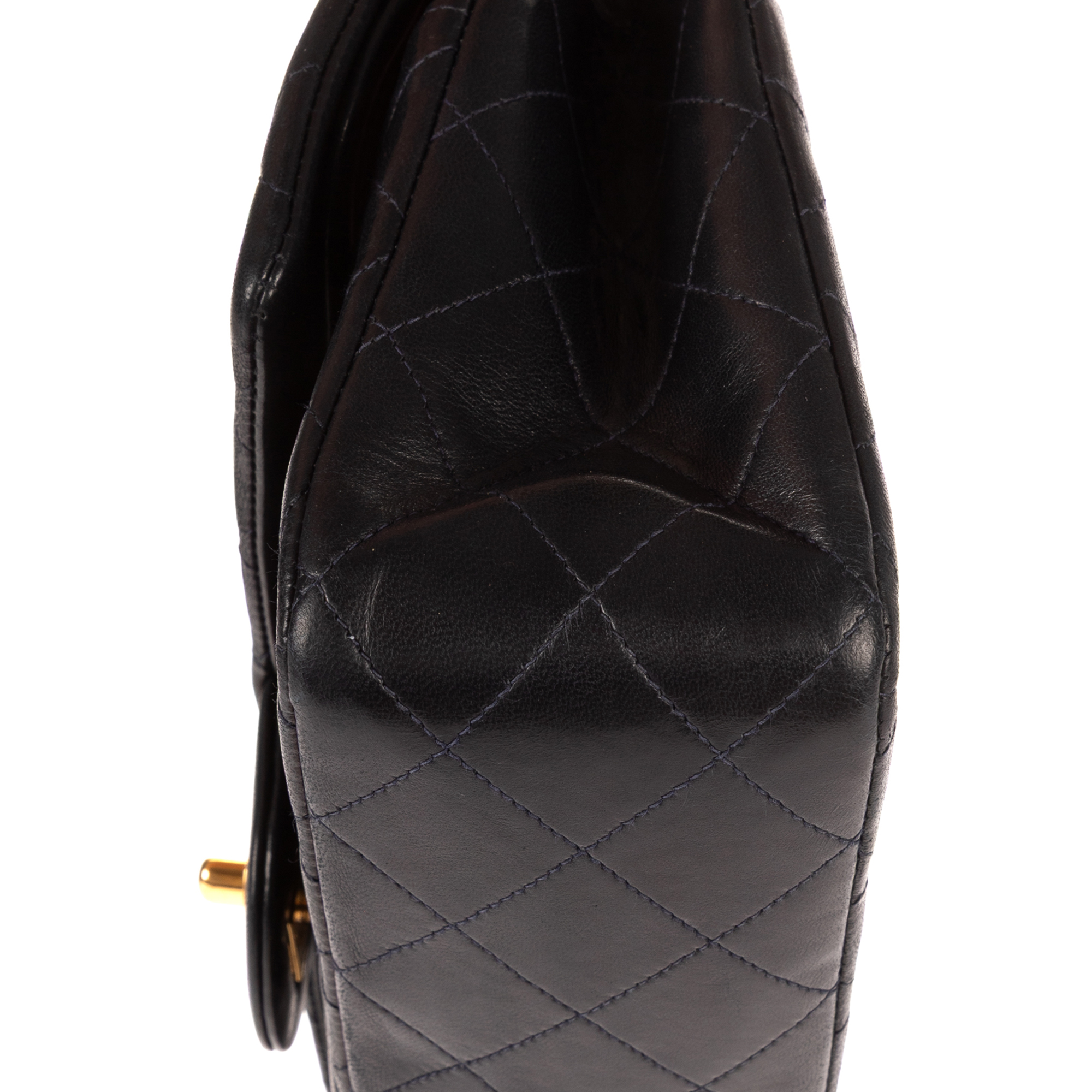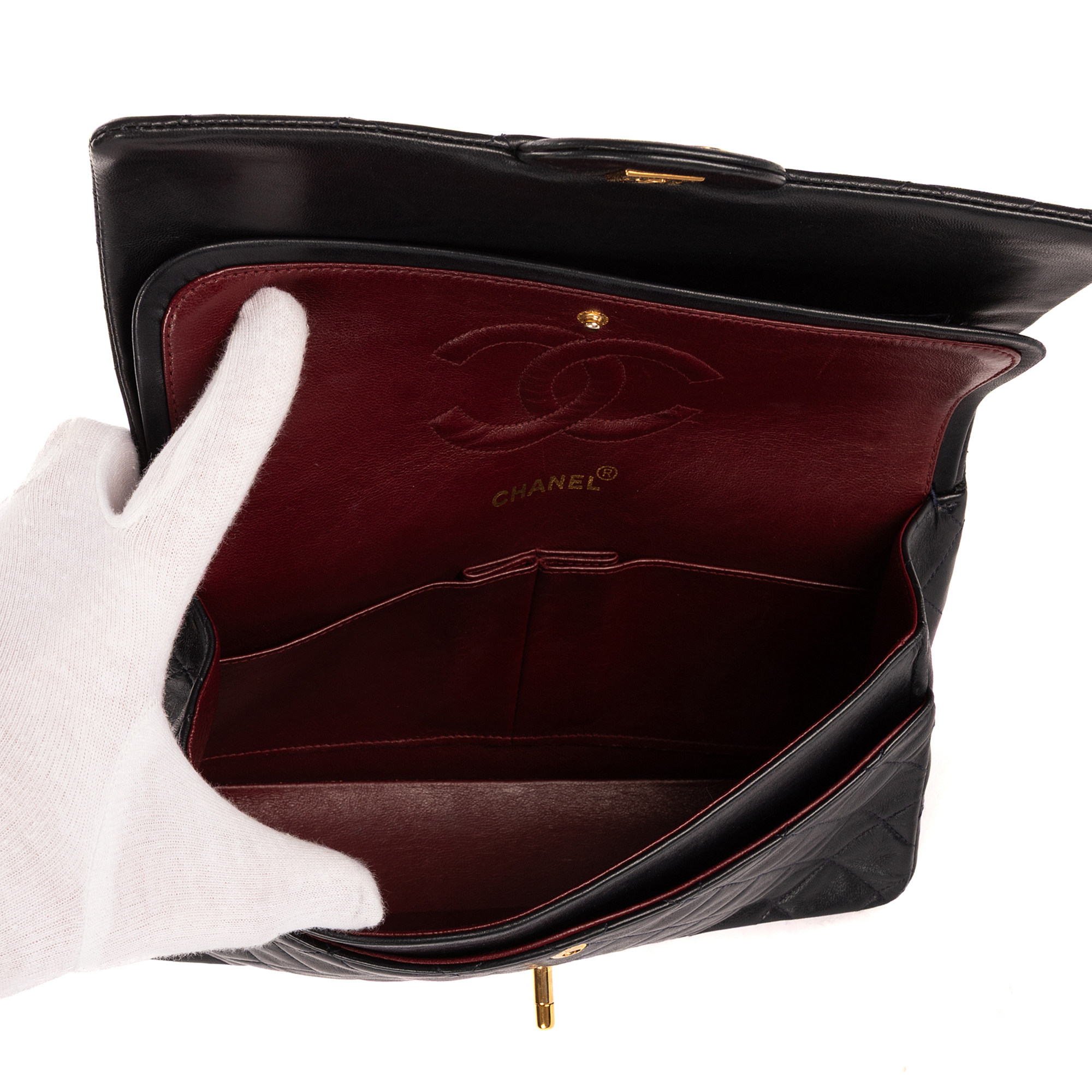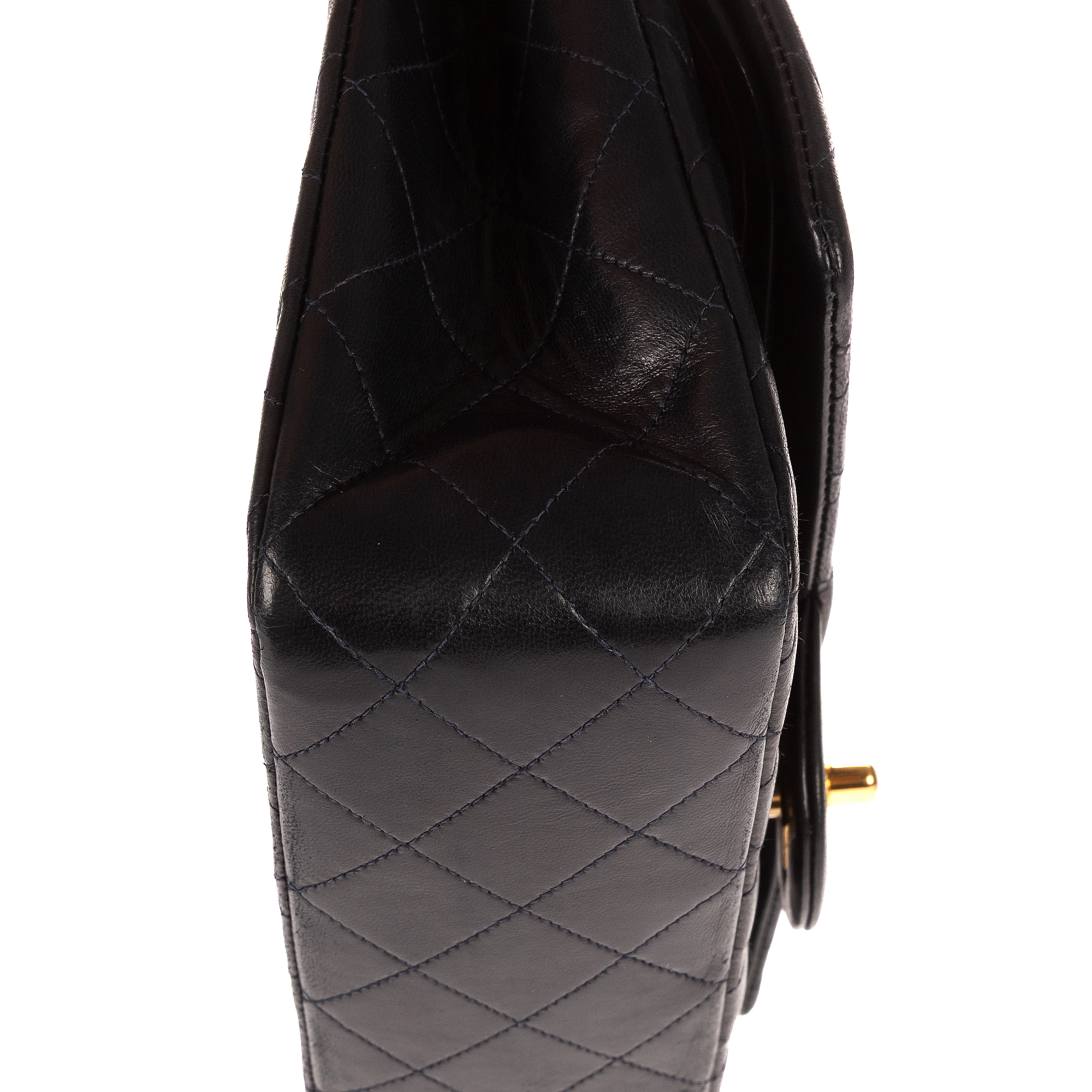 Chanel Shoulder Bag Classic Double Flap 26 in Navy Quilted Lambskin Leather and Gold hardware. The product is in Excellent Condition (A).