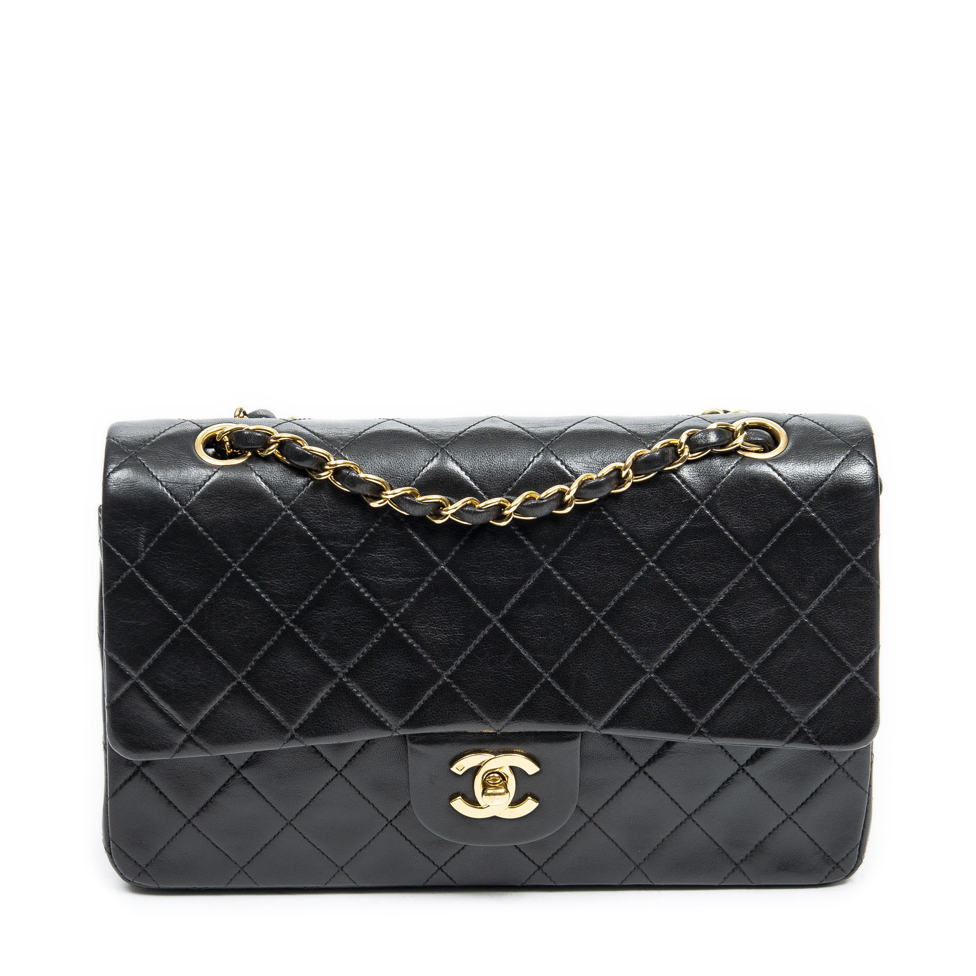 Chanel Shoulder Bag Classic Double Flap 26 in Black Quilted Lambskin Leather and Gold hardware. The product is in Excellent Condition (A).