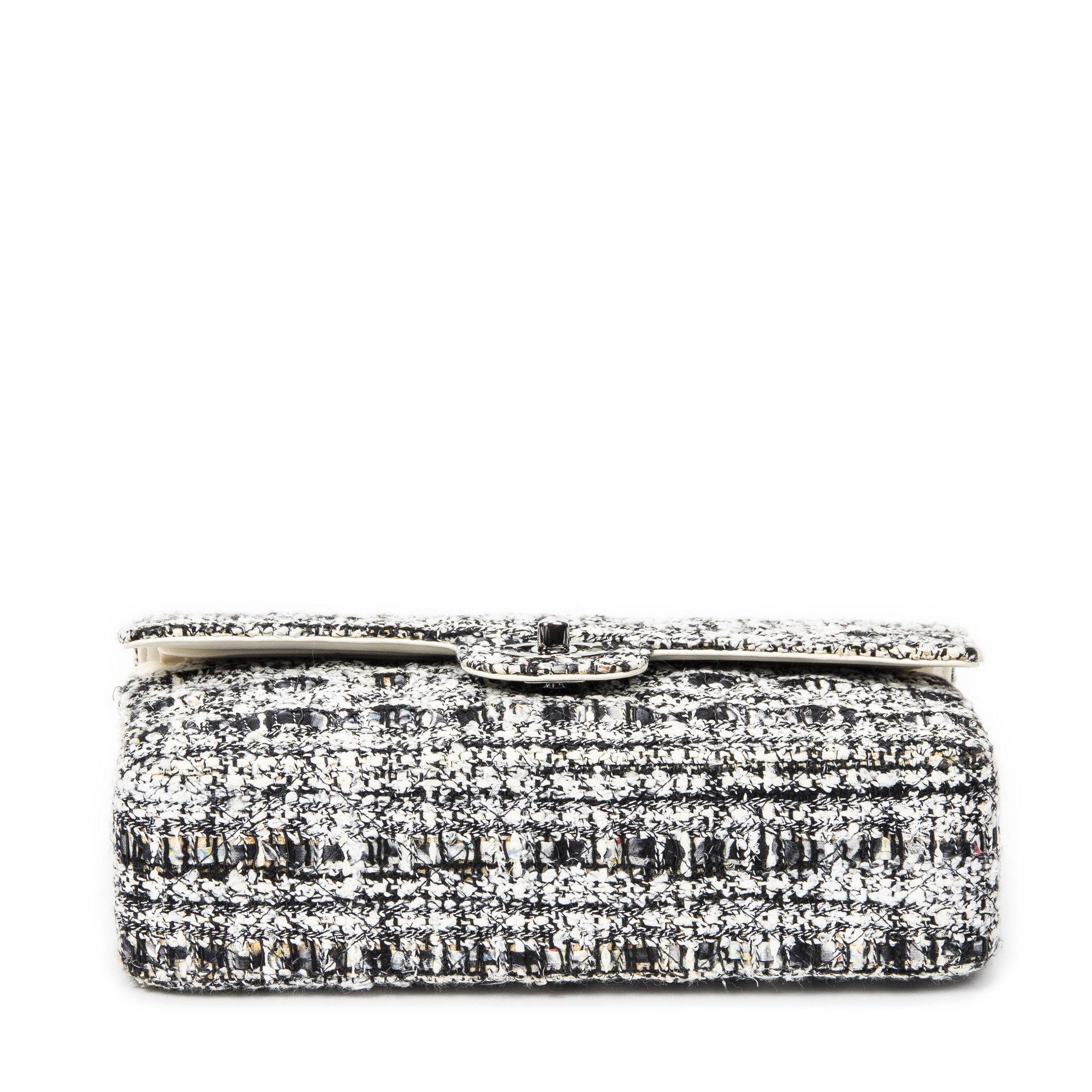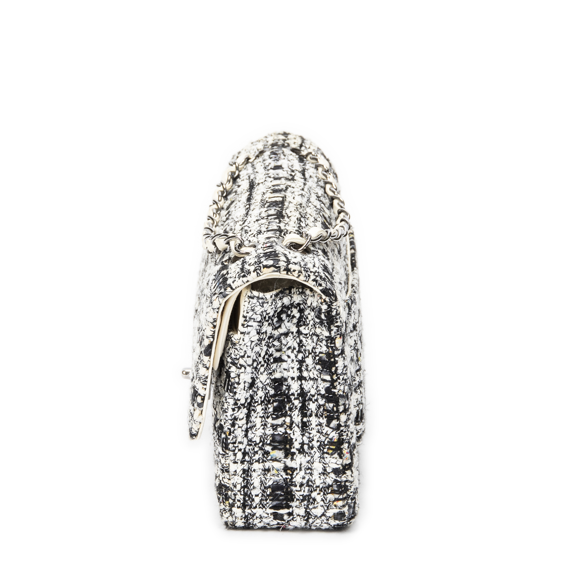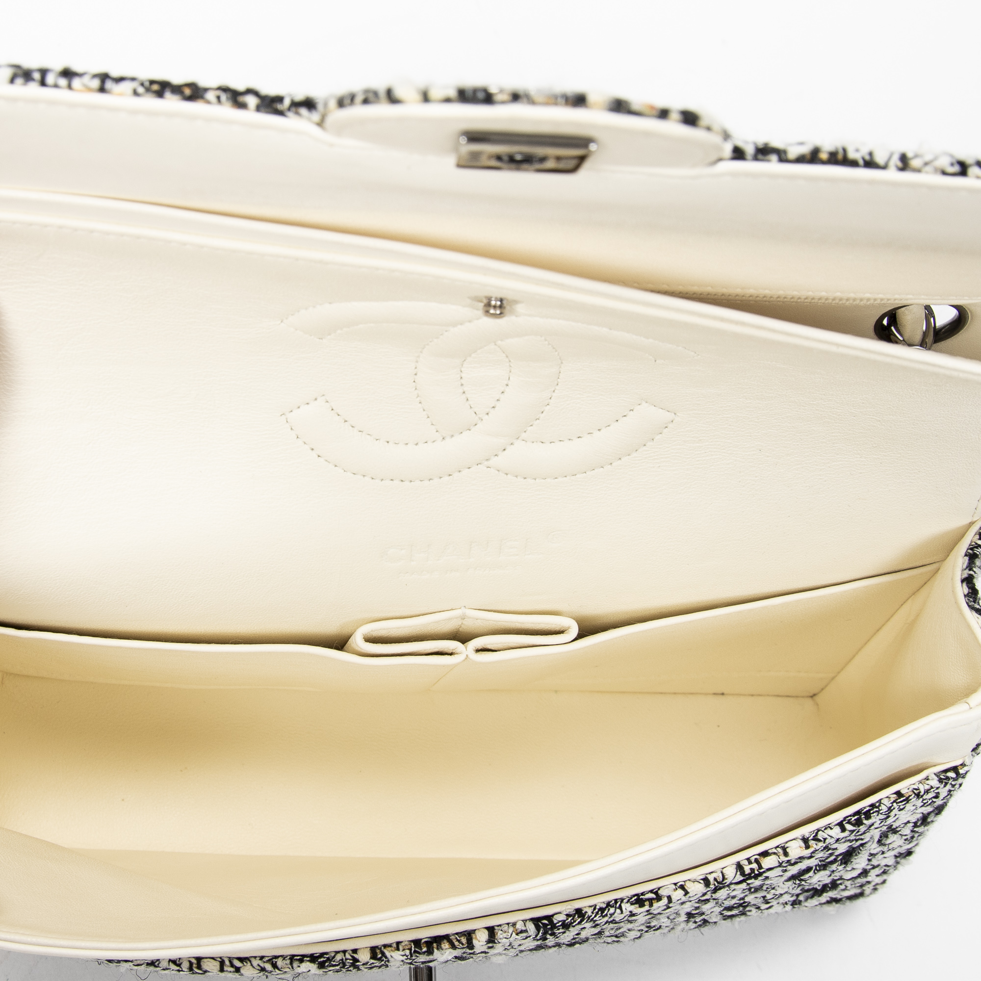 Chanel Shoulder Bag Classic Double Flap 26 in Ivory/Black Quilted Tweed Canvas and Silver hardware. The product is in Excellent Condition (A).