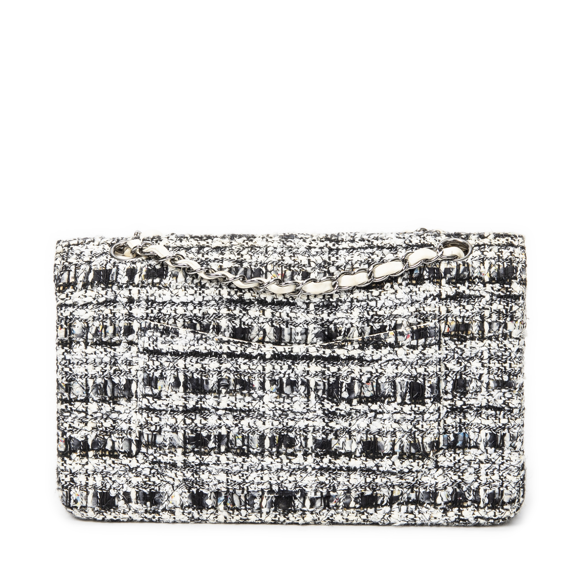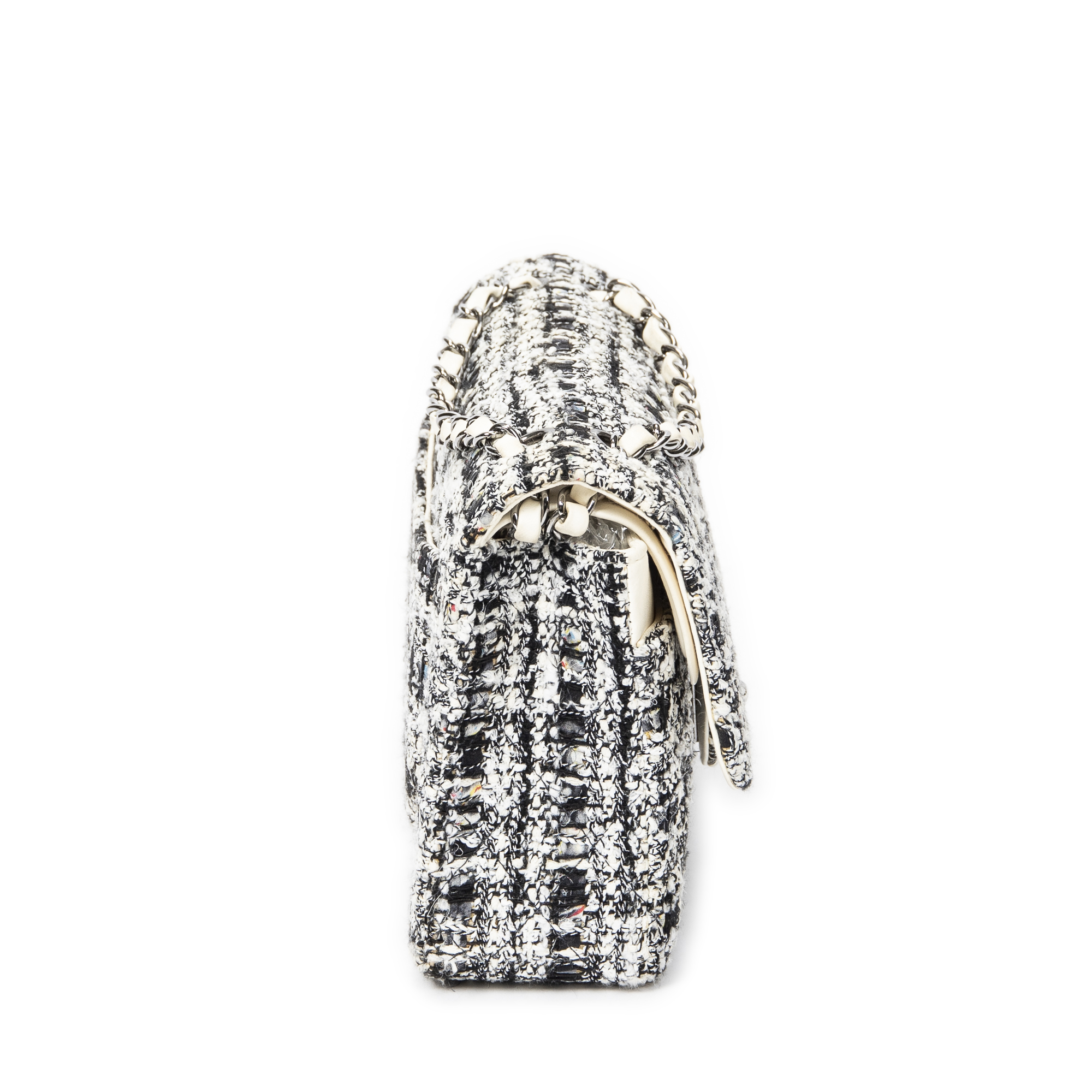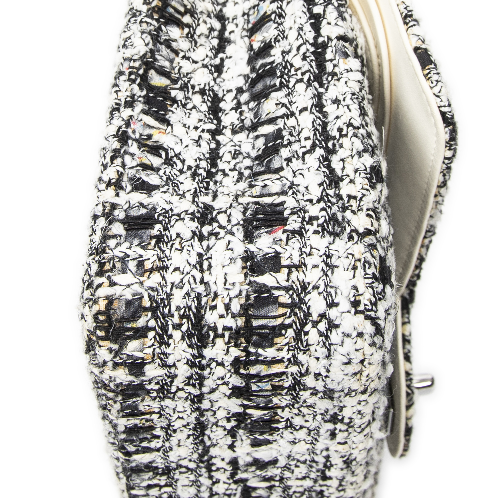 Chanel Shoulder Bag Classic Double Flap 26 in Ivory/Black Quilted Tweed Canvas and Silver hardware. The product is in Excellent Condition (A).