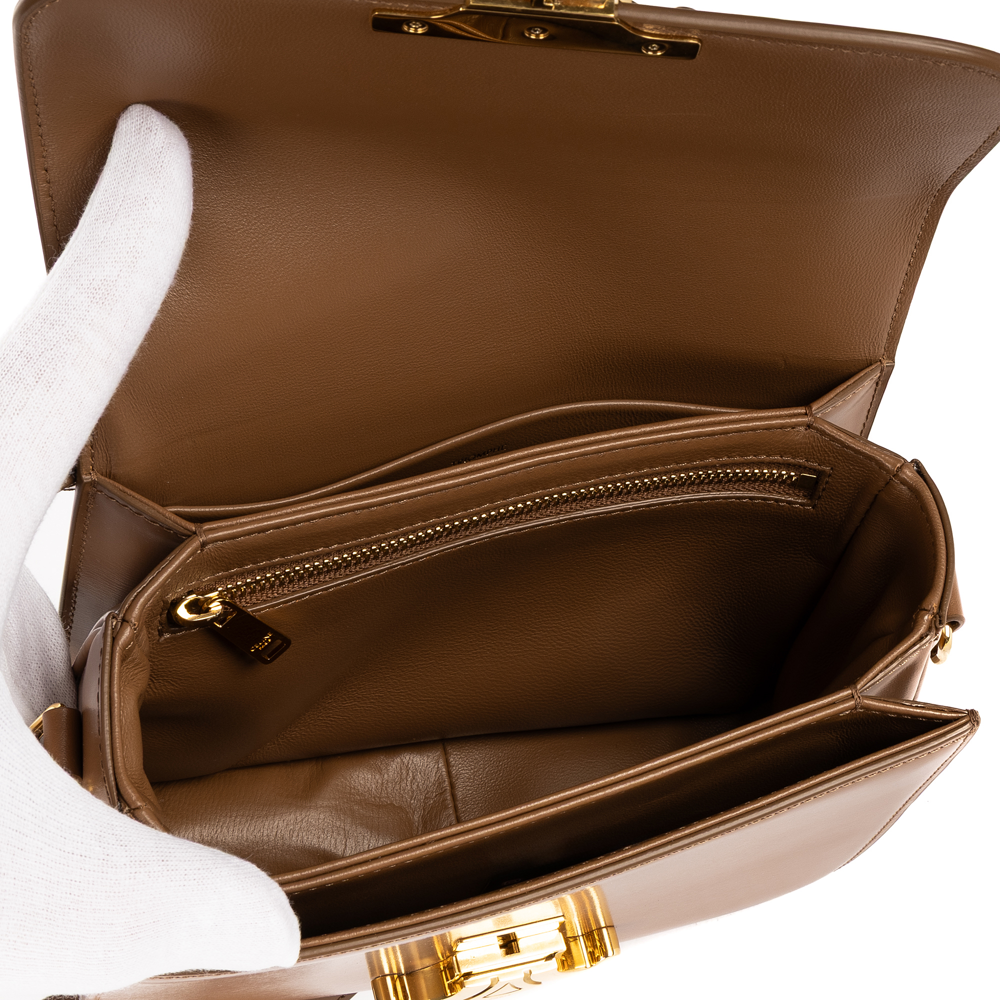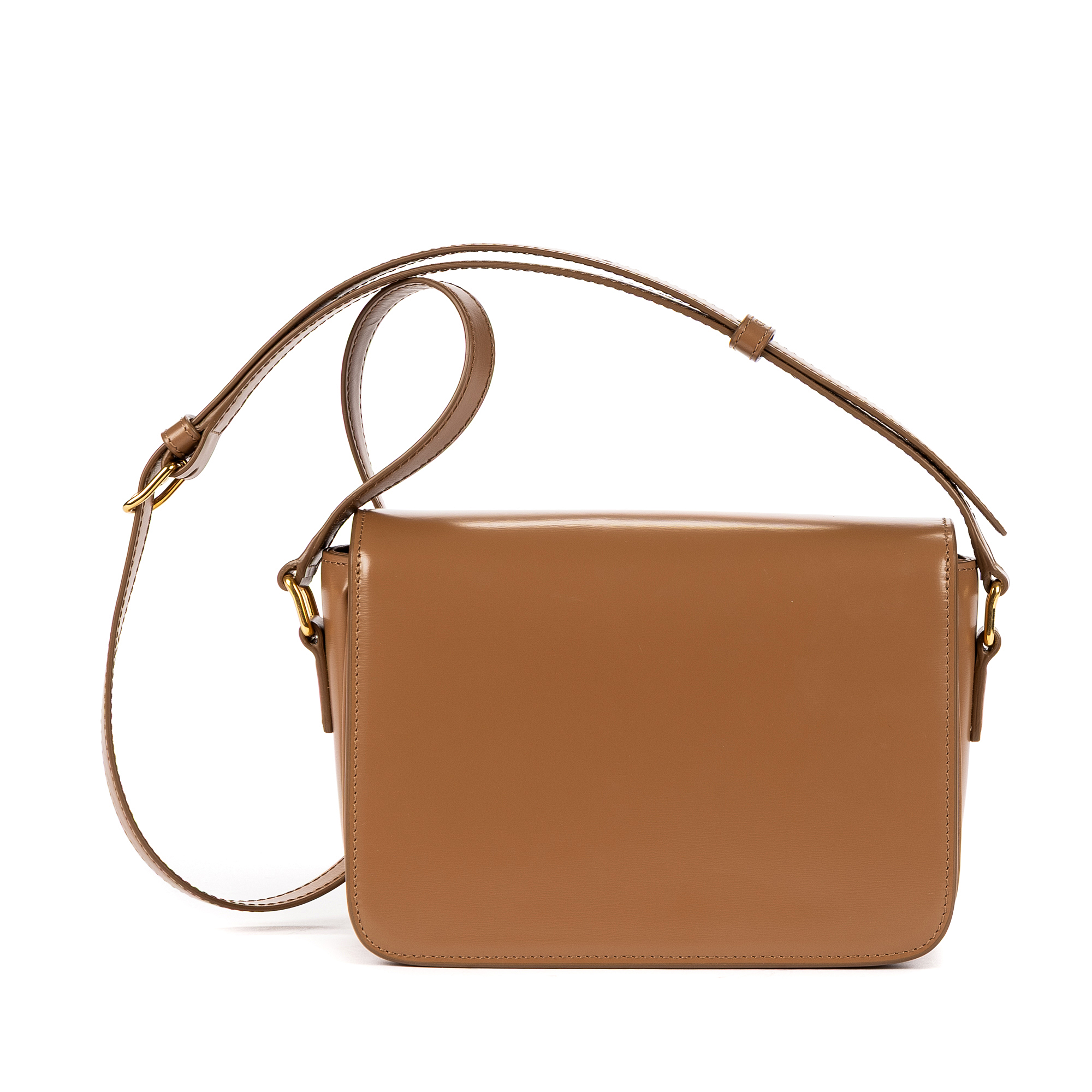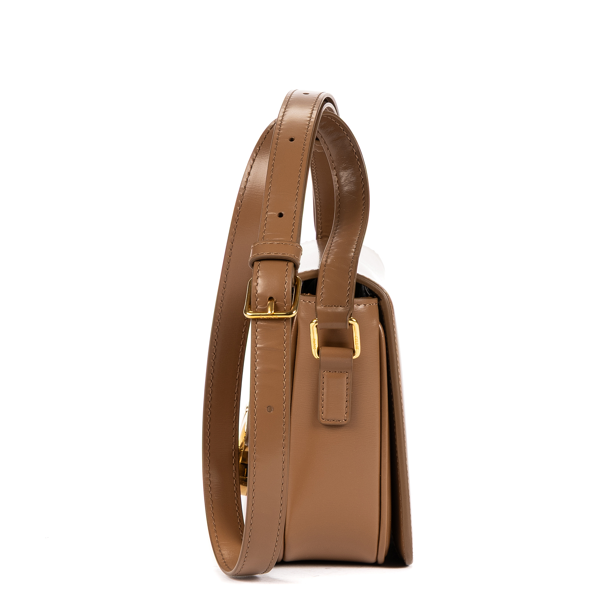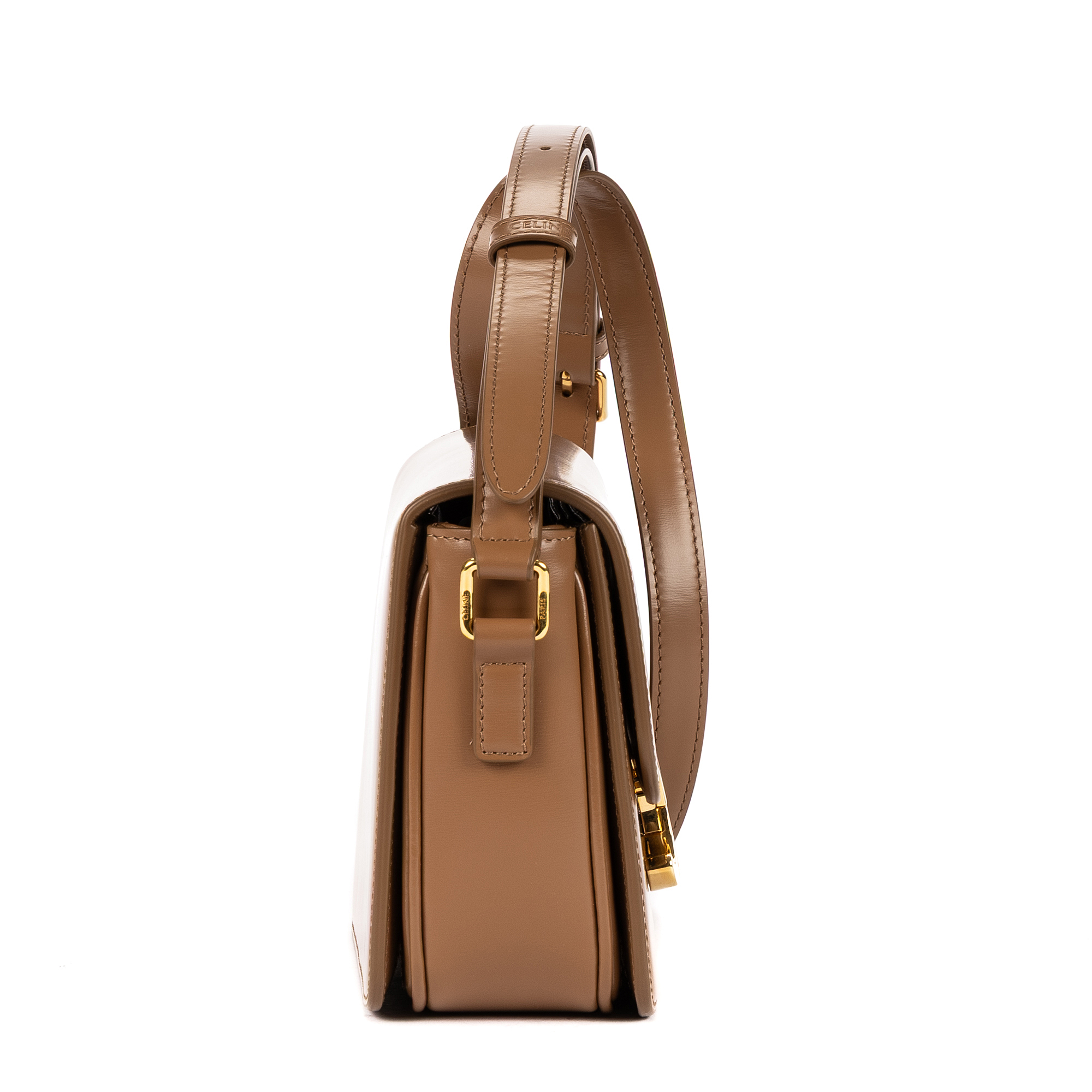 Celine Shoulder Bag Classique Triomphe Negro in Caramel Brown Smooth Leather and Gold hardware. The product is in Perfect Condition (AA).