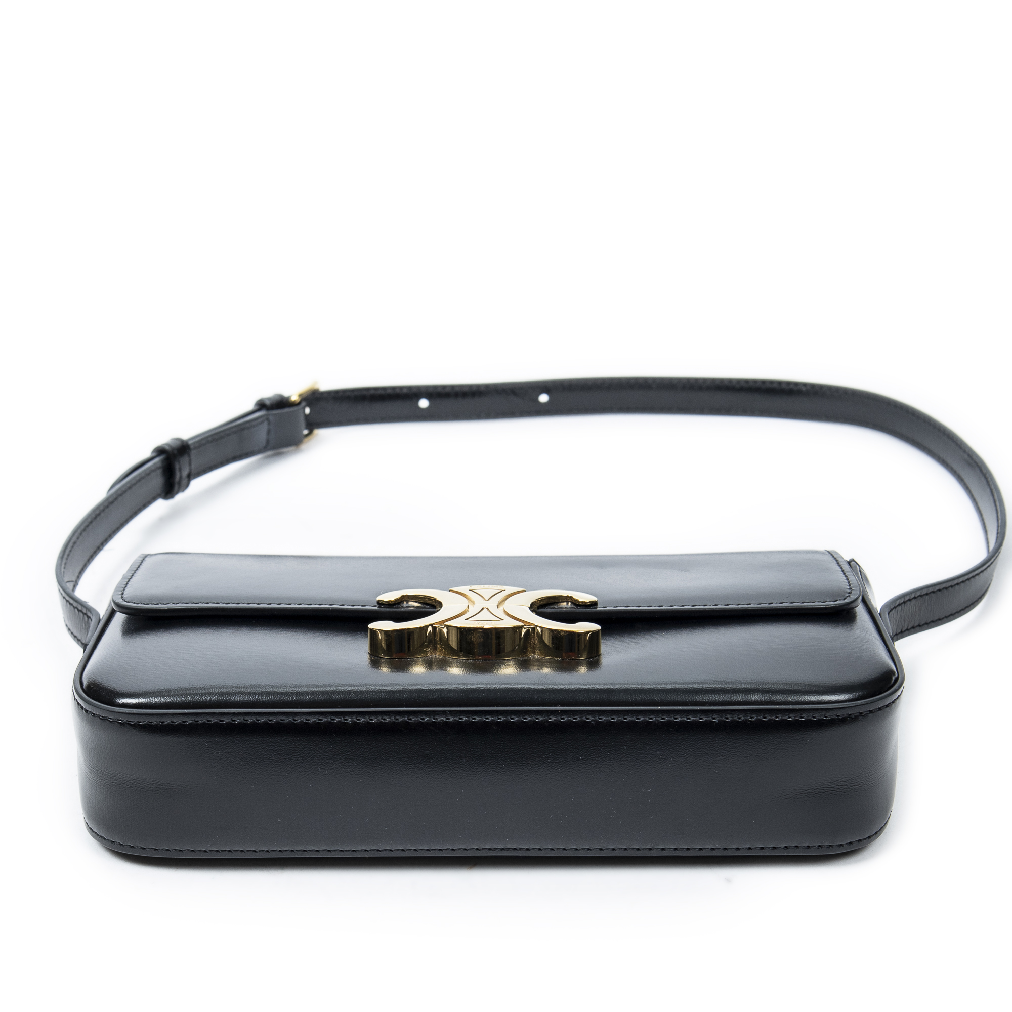 Celine Shoulder Bag Claude in Black Smooth Calfskin Leather and Gold hardware. The product is in Excellent Condition (A).