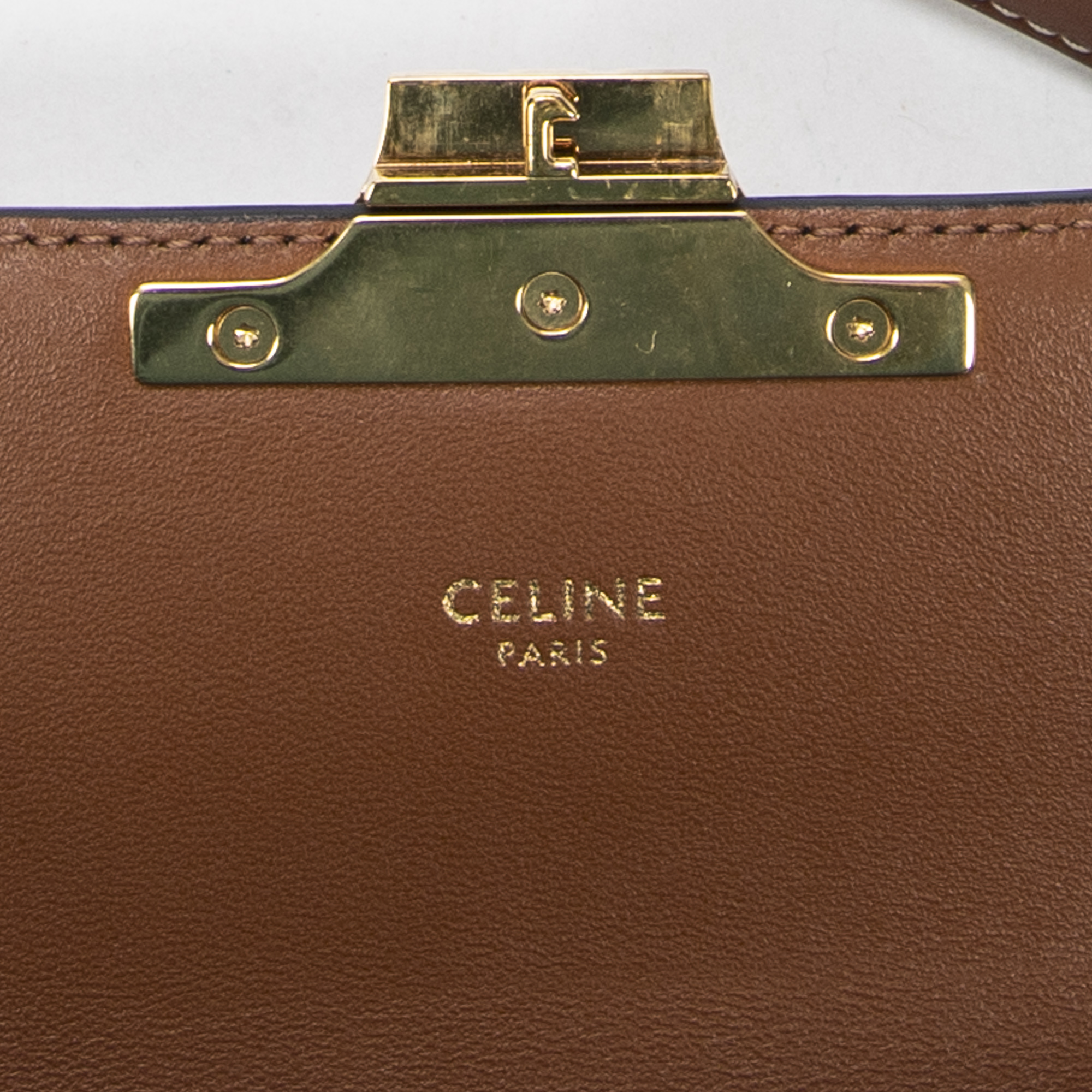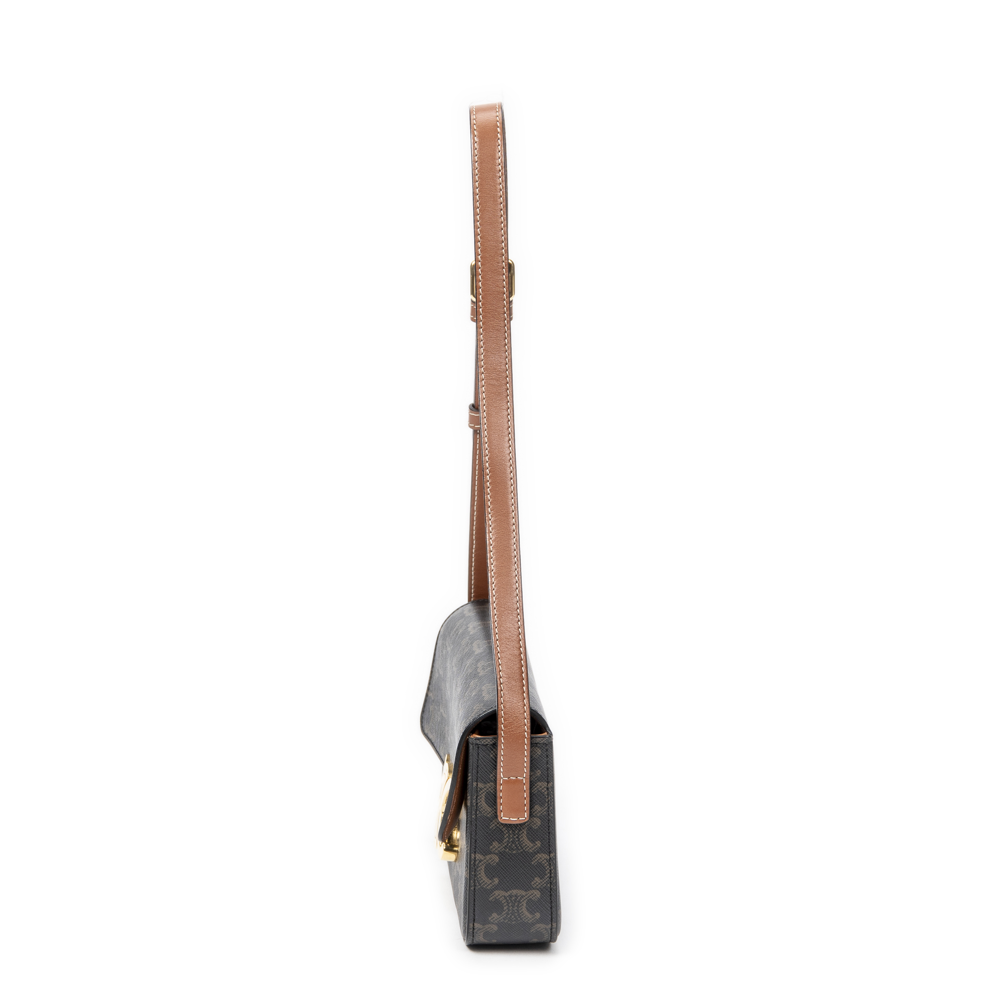 Celine Shoulder bag Claude in Tan/Brown Triomphe Coated Canvas and Gold hardware. The product is in Perfect Condition (AA).