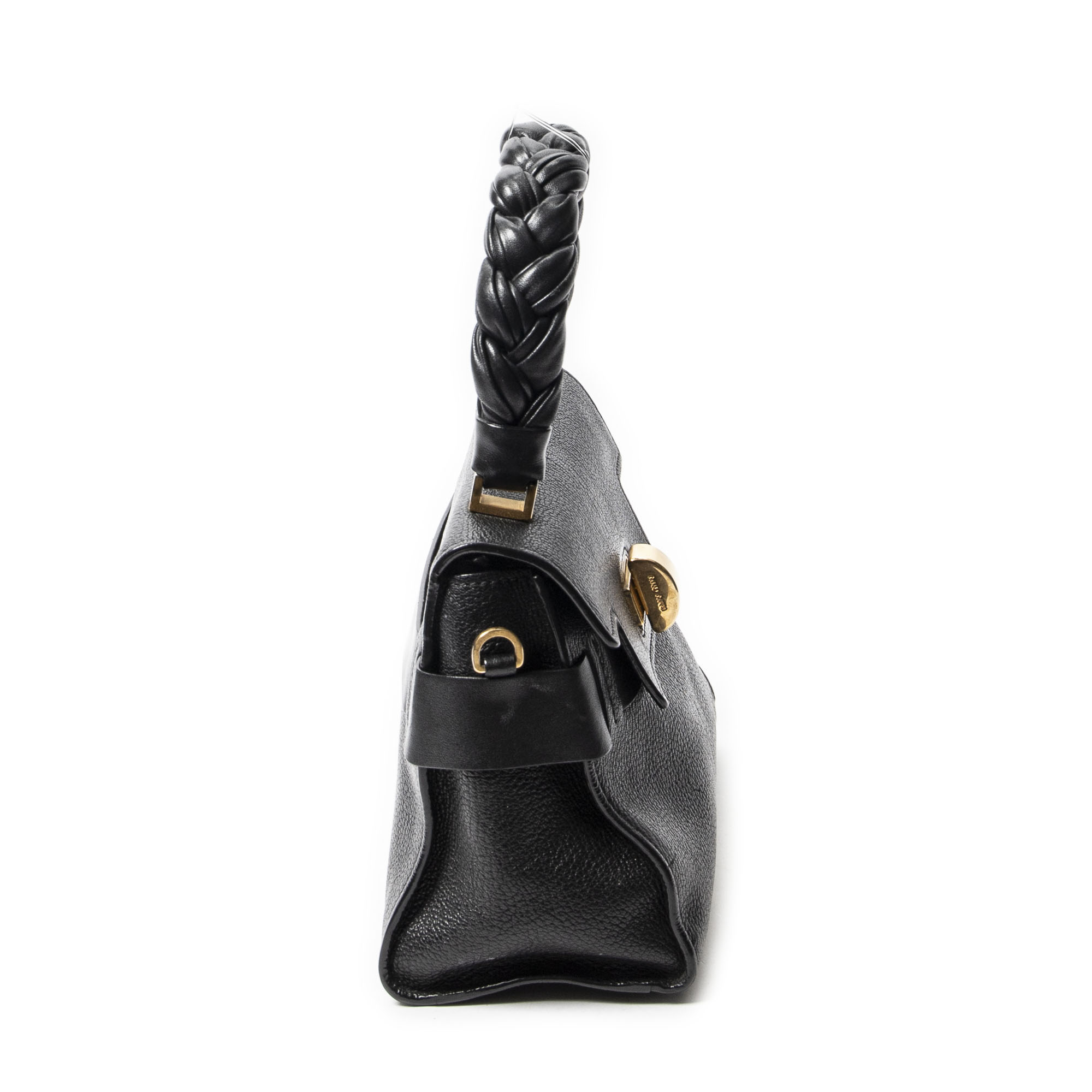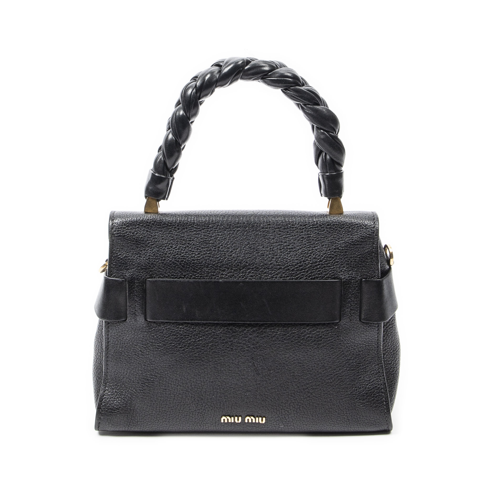 Miu Miu Shoulder Bag Click Braided Top Handle in Black Madras Leather and Gold hardware. The product is in Excellent Condition (A).