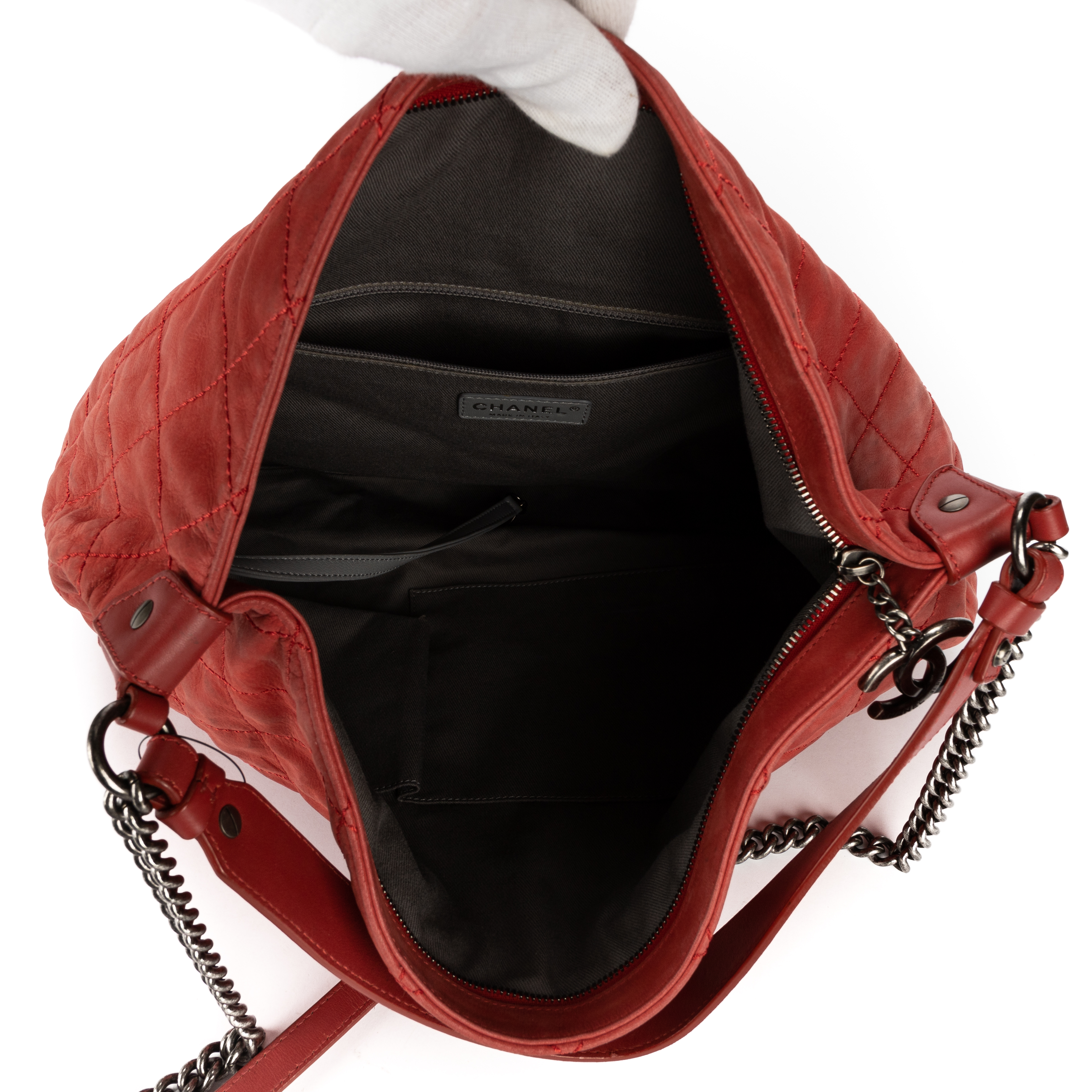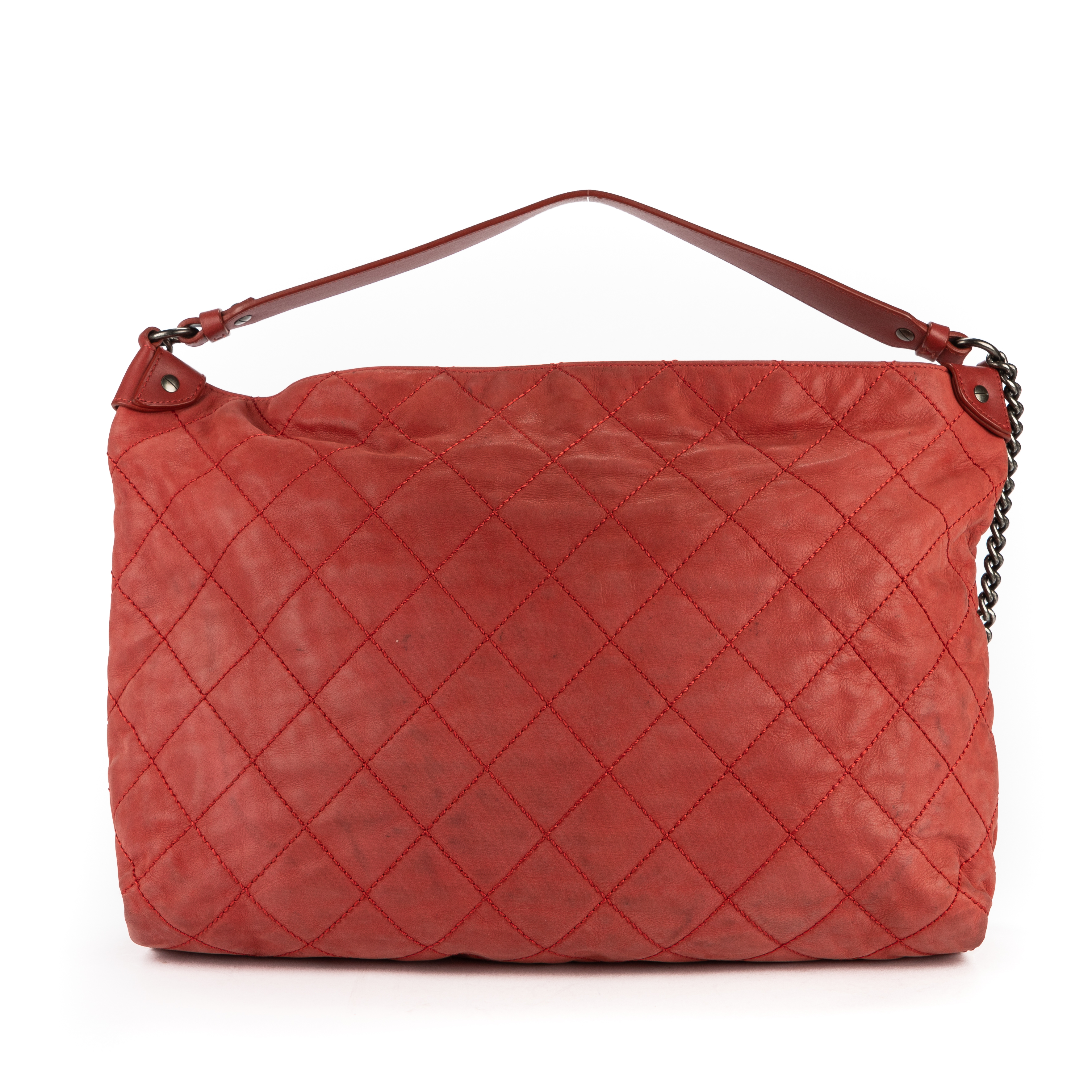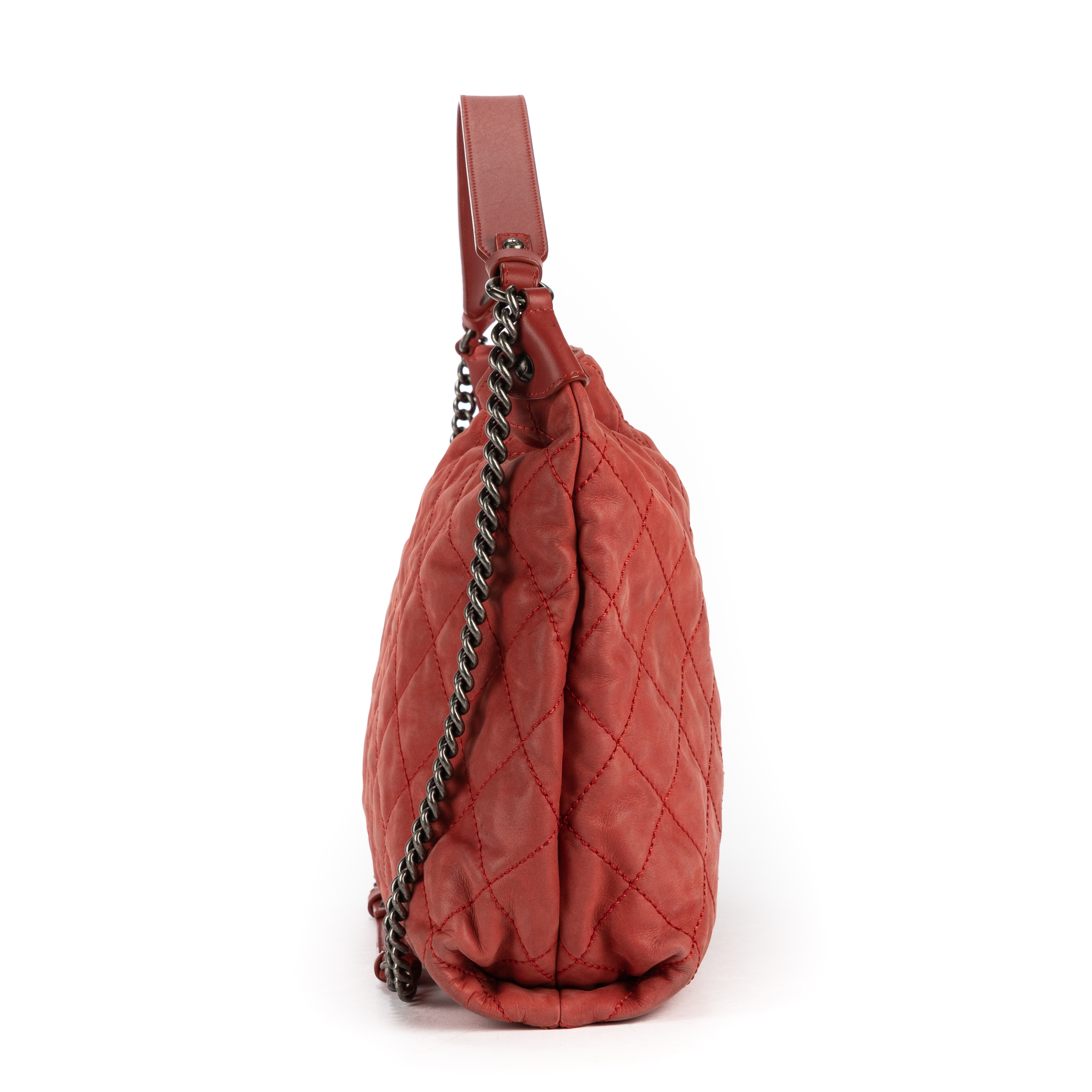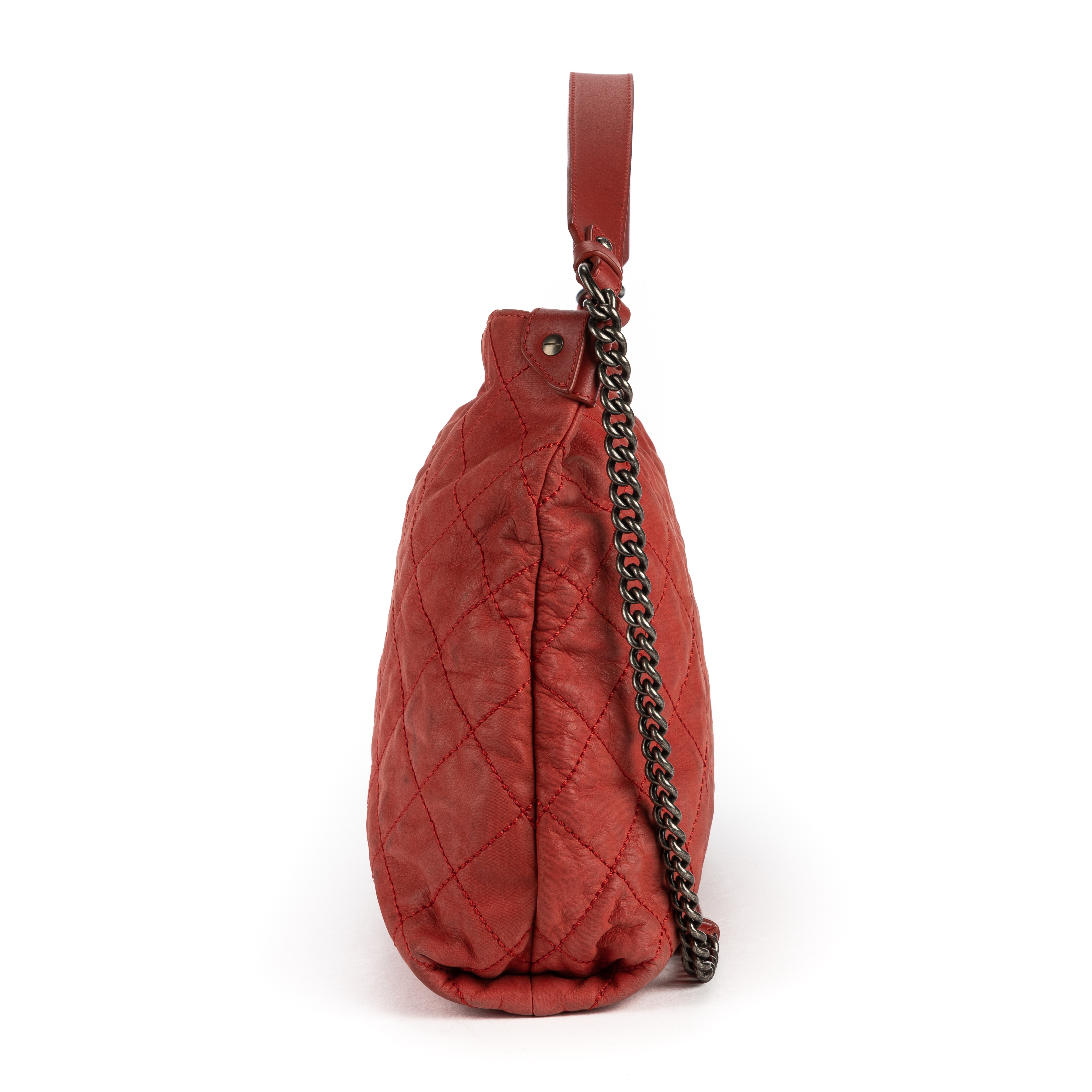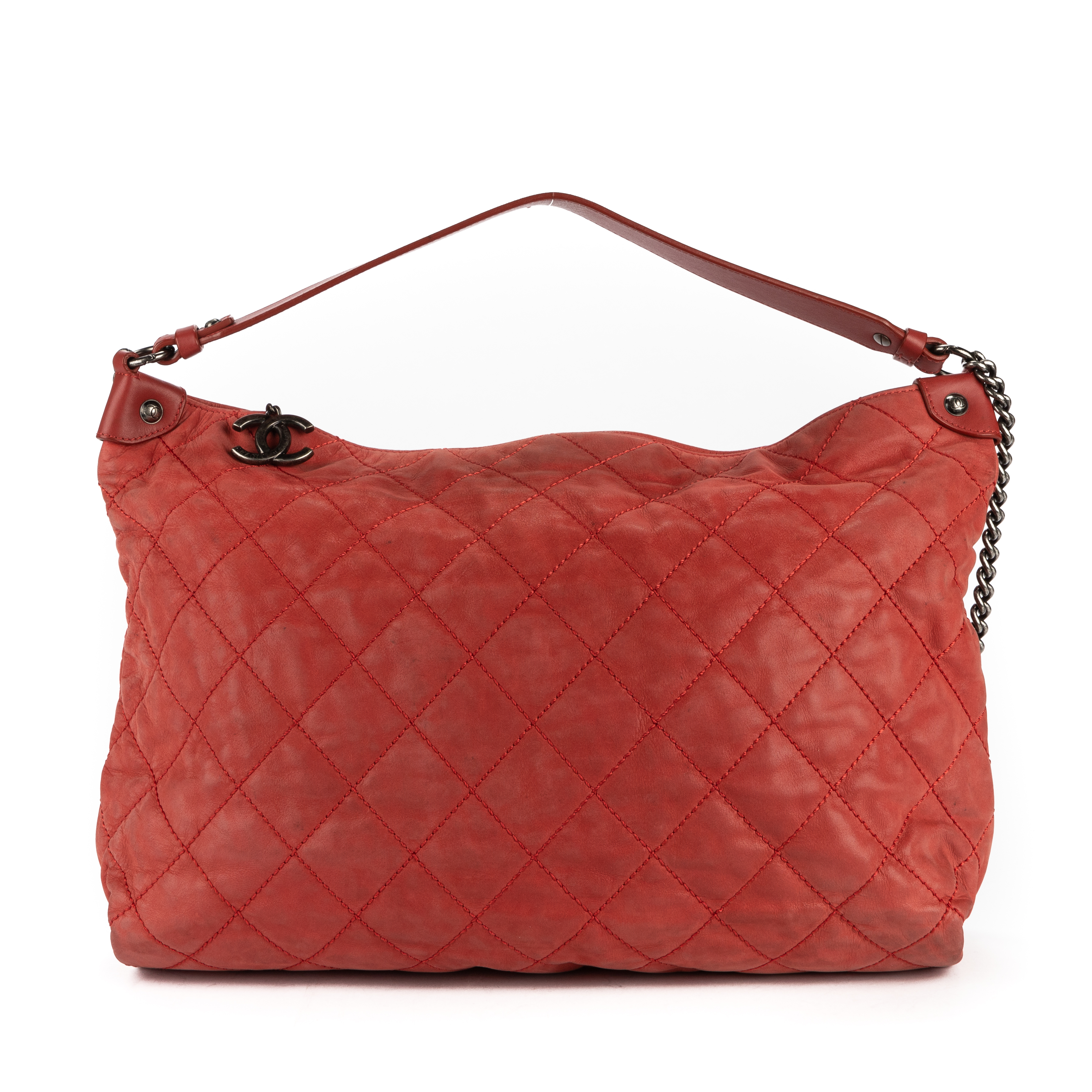 Chanel Shoulder Bag Coco Daily Hobo in Red Quilted Leather and Silver hardware. The product is in Very Good Condition (AB).