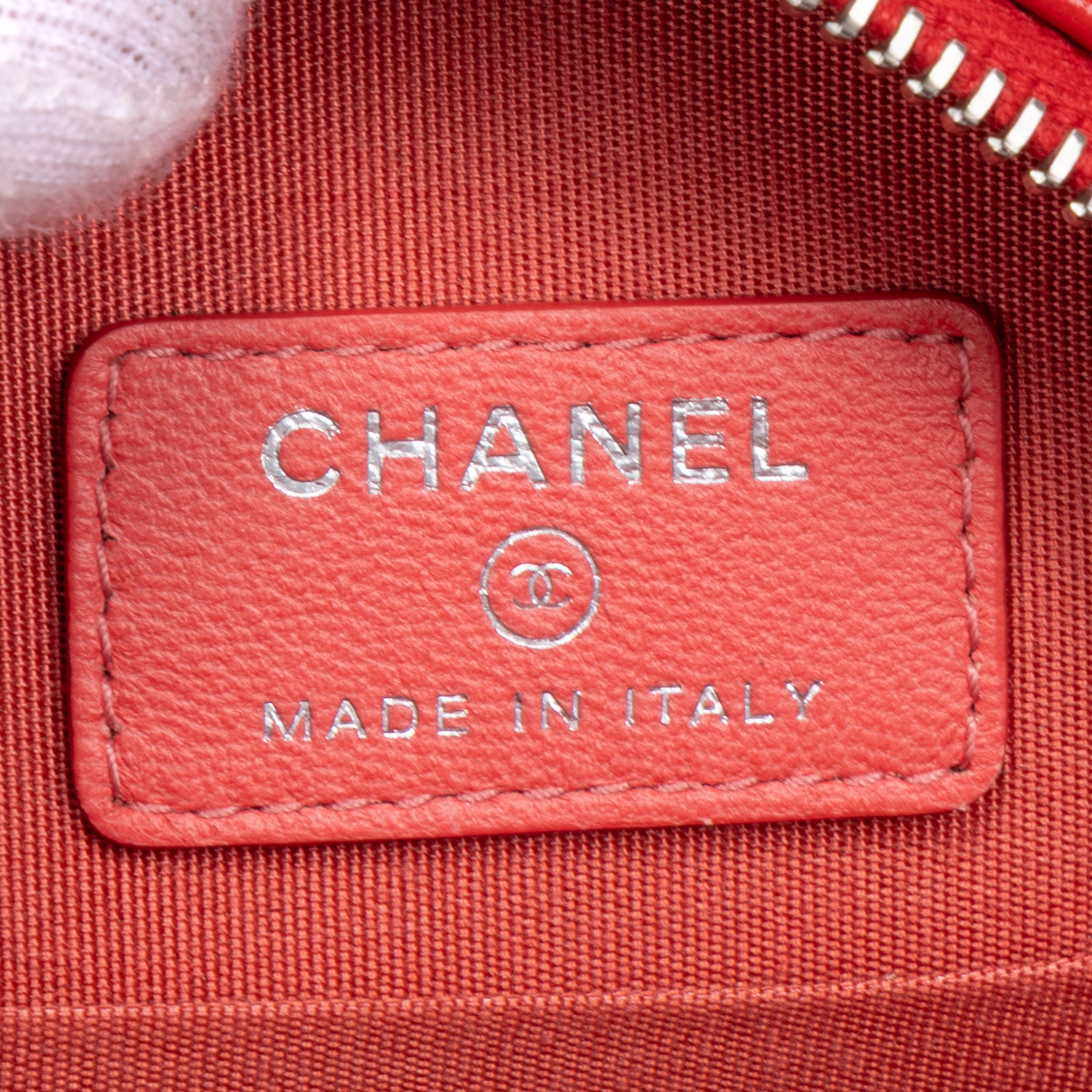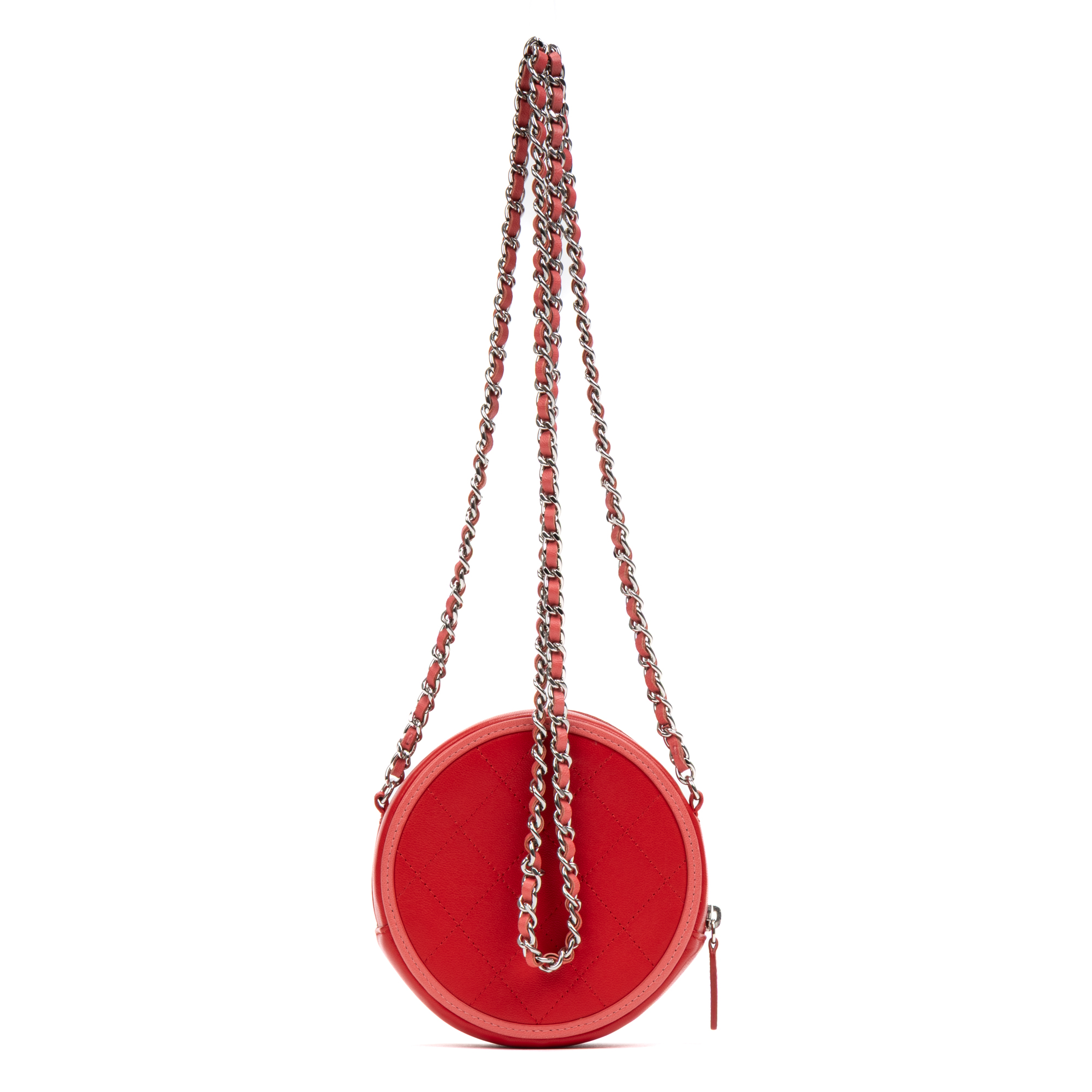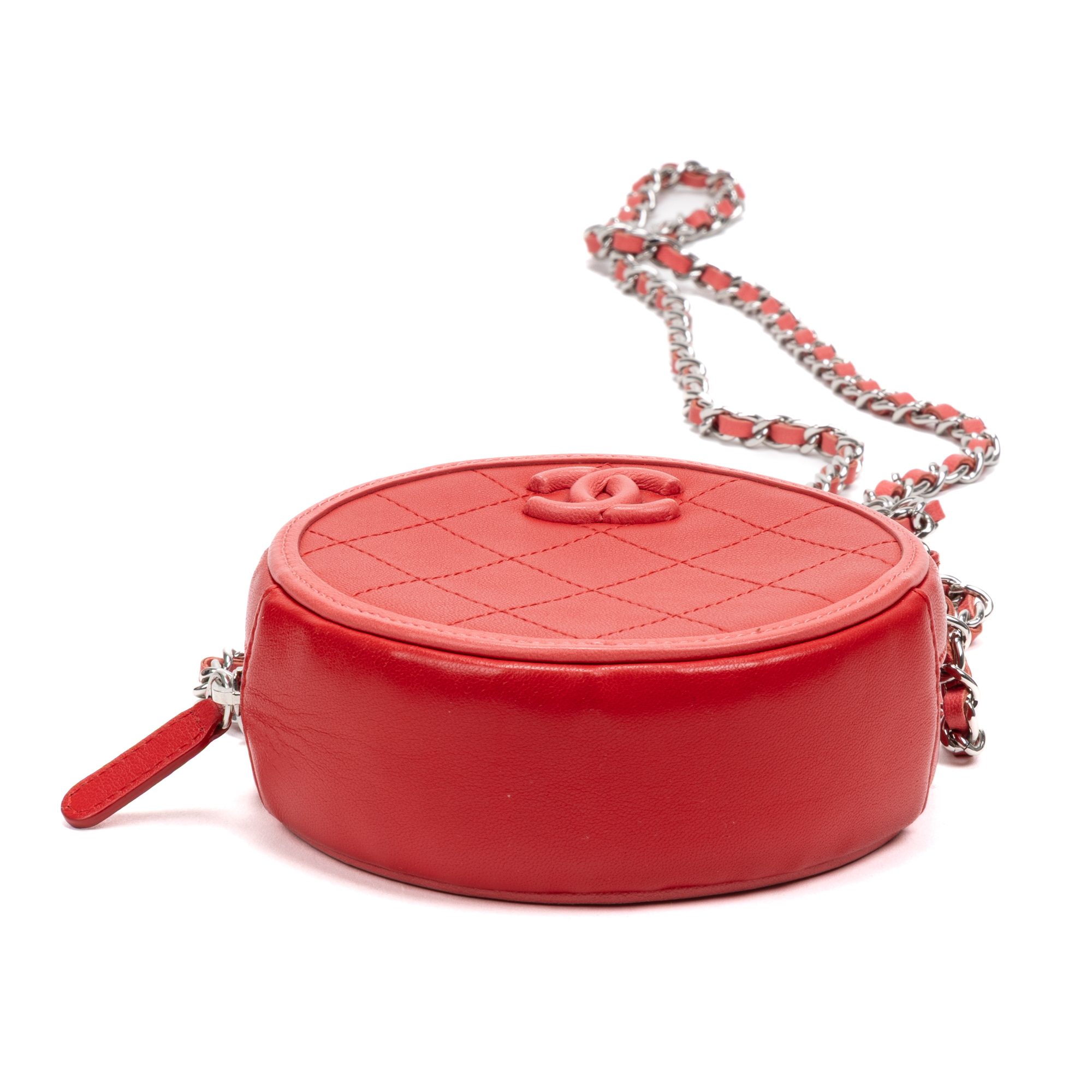 Chanel Shoulder Bag Color Pop Round Chain Clutch in Pink Lambskin Quilted Leather and Silver hardware. The product is in Excellent Condition (A).