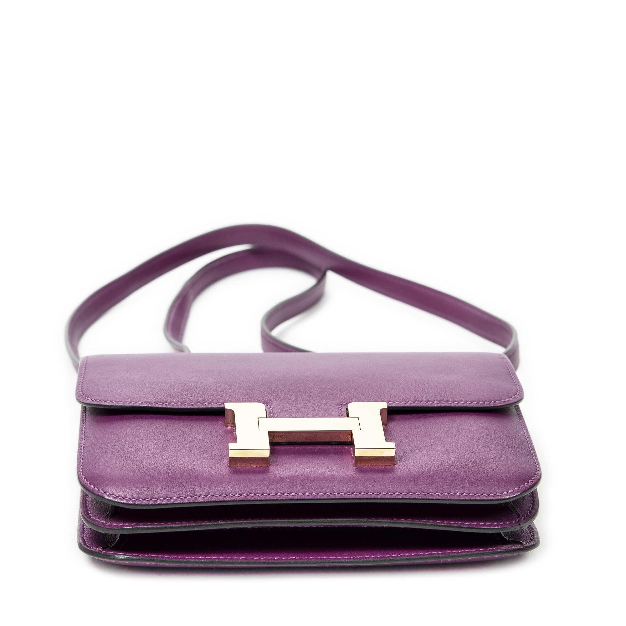 Hermès Shoulder bag Constance 18 in Anemone Swift Leather and Gold hardware. The product is in Excellent Condition (A).