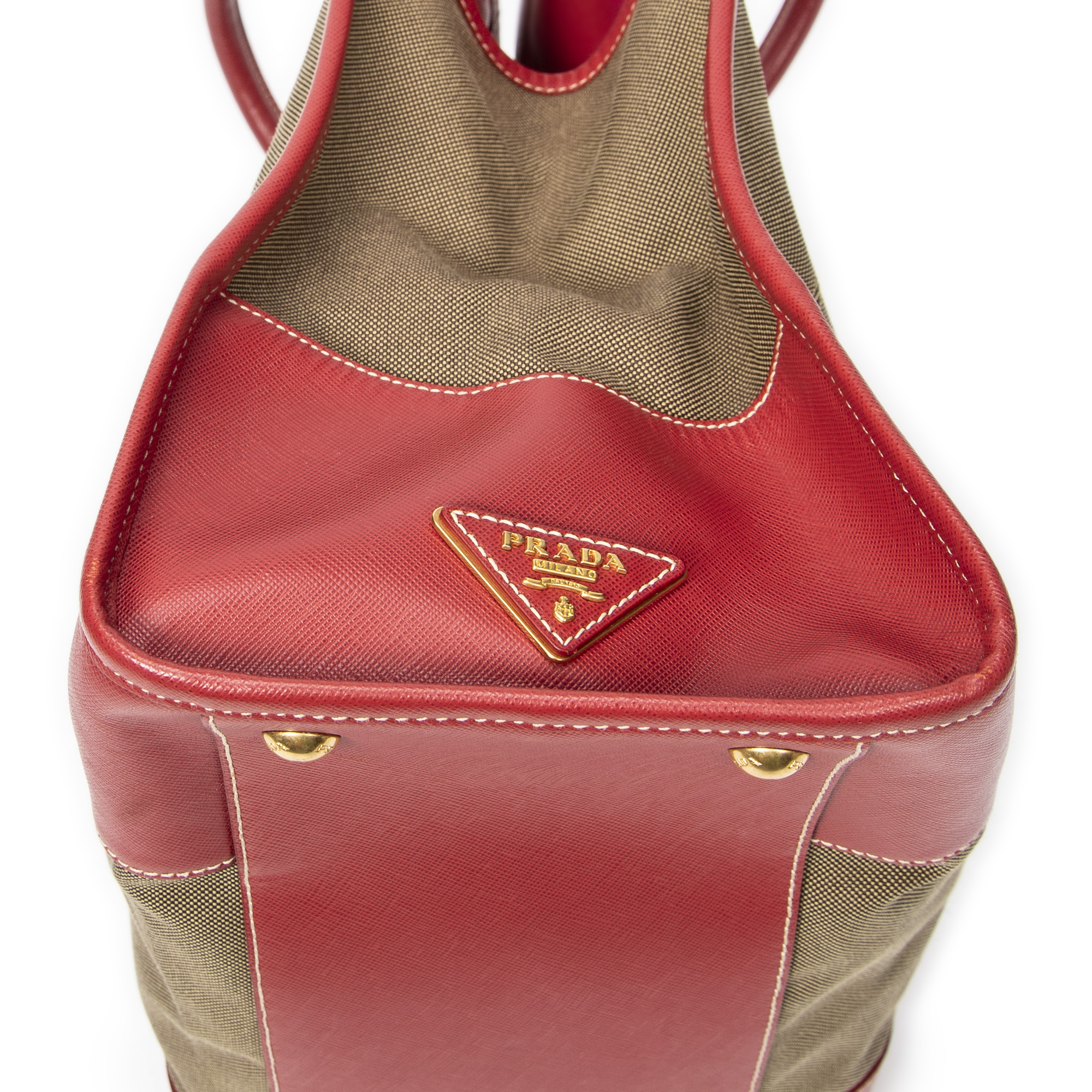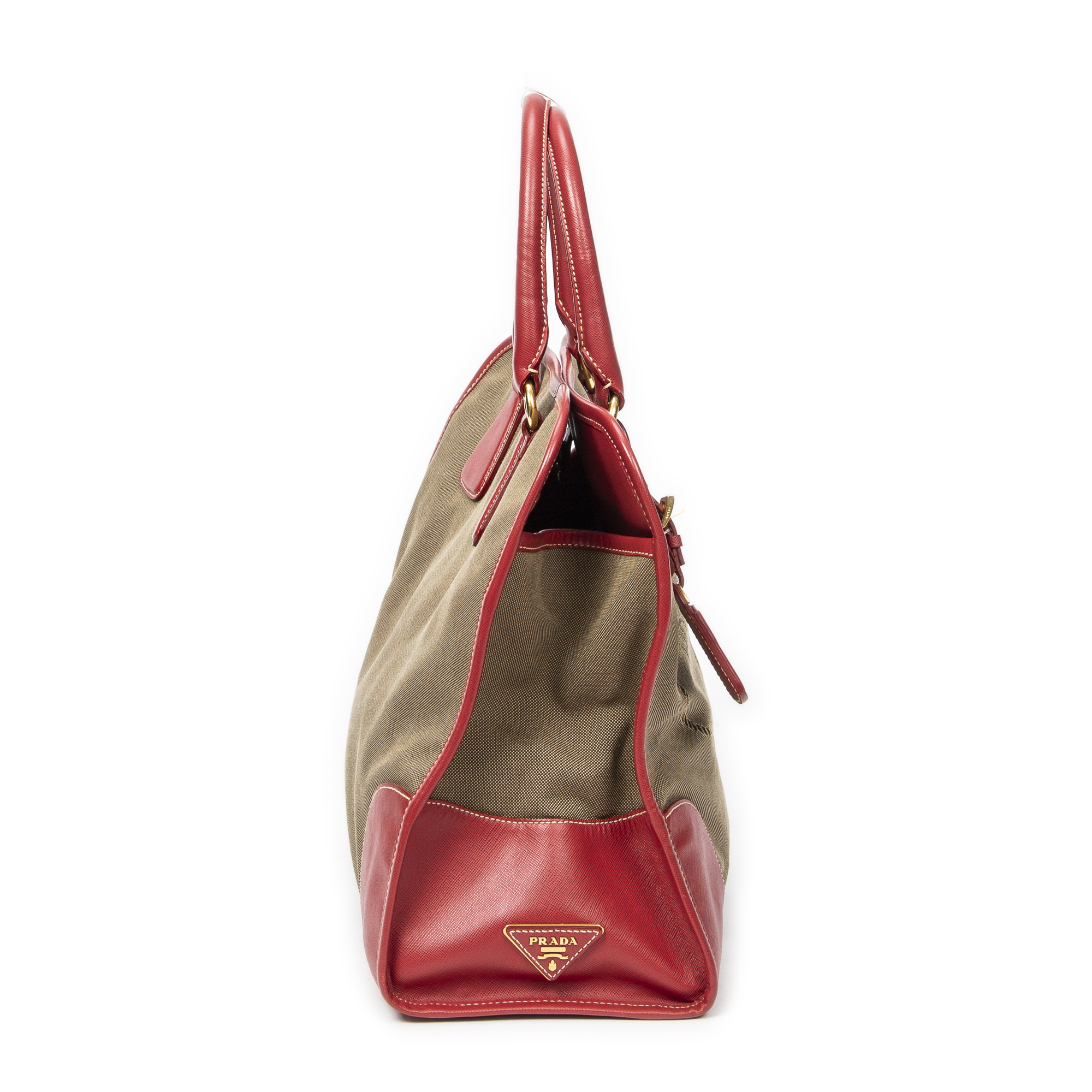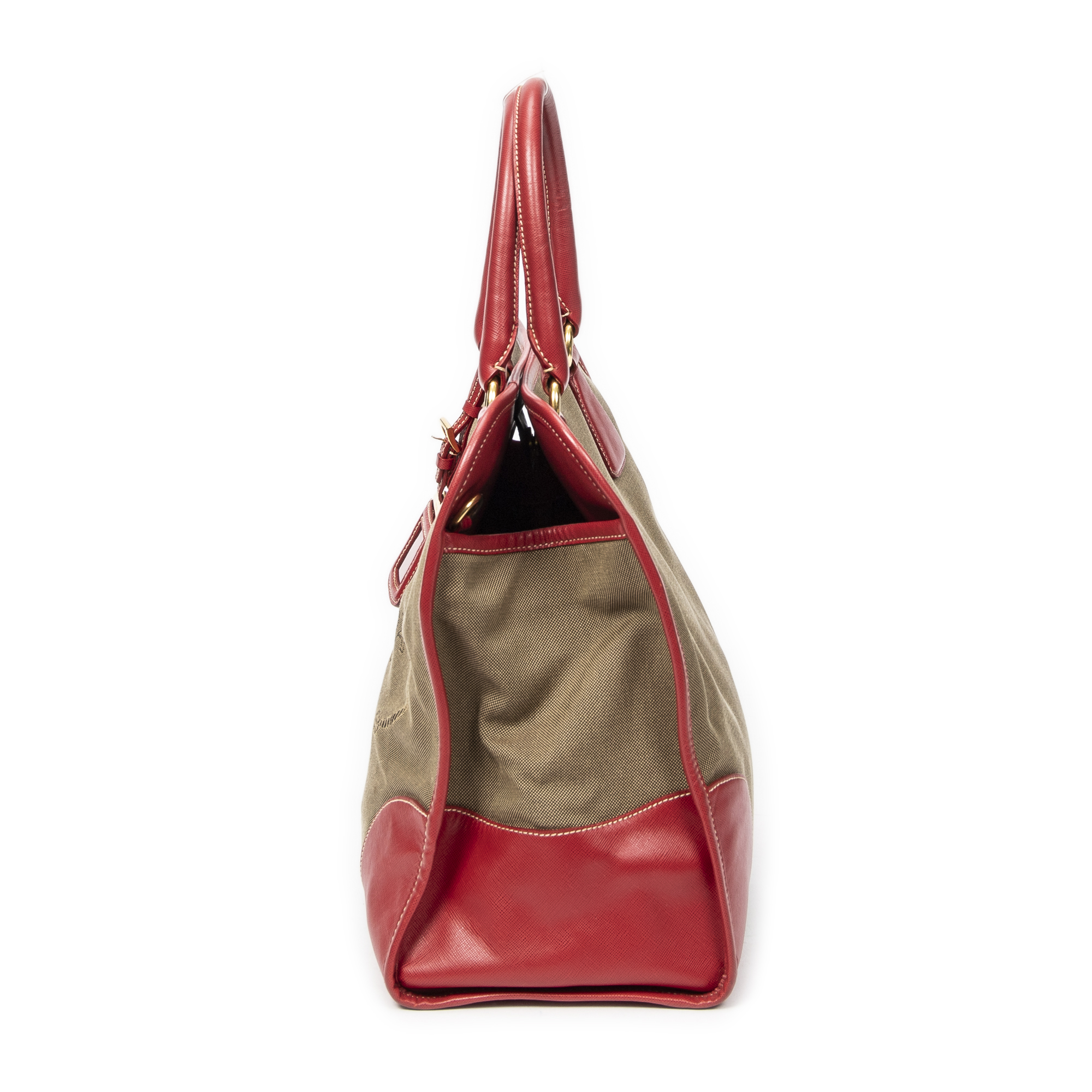 Description : Prada Shoulder Bag Convertible Jacquard Logo Tote in Khaki/Red Jacquard Canvas and Gold hardware. The product is in Excellent Condition (A). Dimensions: 31x30x16 cm SKU: ABC1401 Serial number: 194 Accessories Included: Strap; Luggage Tag Delivery: We have a 5 to 7 business days delivery policy, hassle-free and duties/tariffs included! BrandCo Paris finds rare and top condition items at great deals, they are worth your patience! Shop with confidence - All BrandCo Paris items are carefully selected and authenticated by our team of experts. All the items come with an authenticity certificate and packaging delivered by BrandCo Paris. Item Condition Grading Table N (Like New) AA (Perfect Condition) A (Excellent Condition) AB (Very Good Condition) B (Good/Fair)