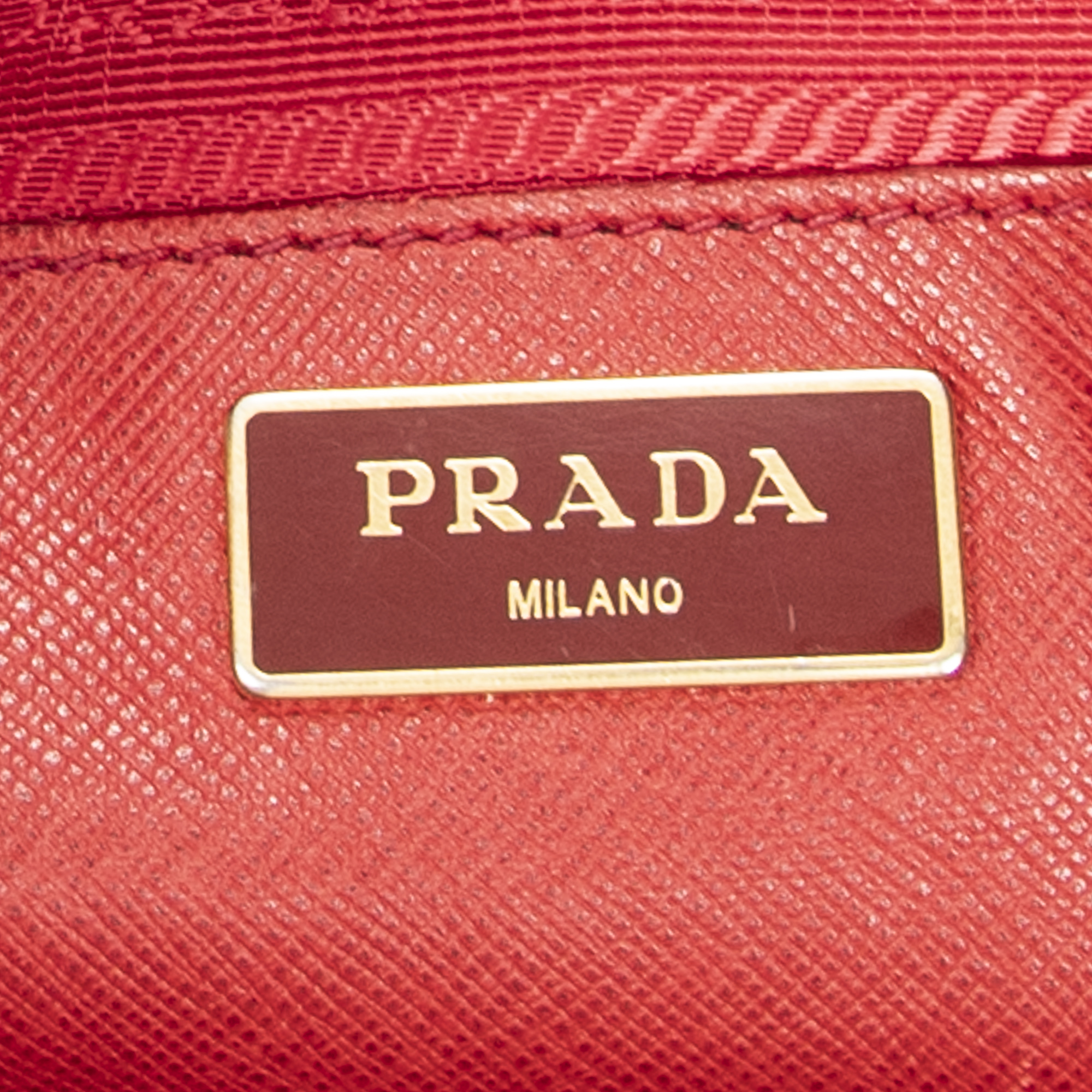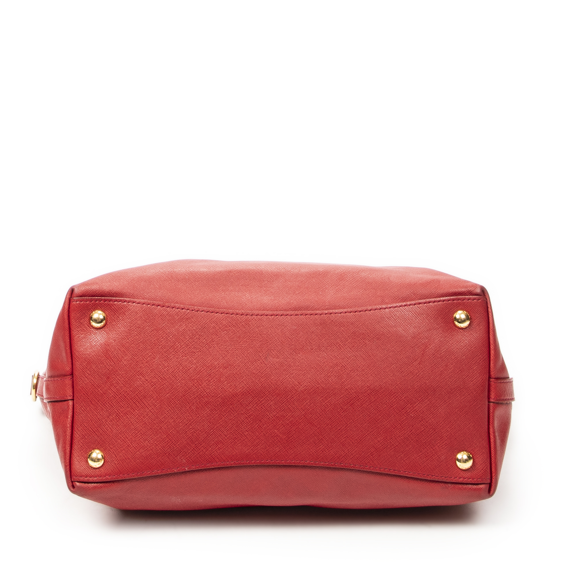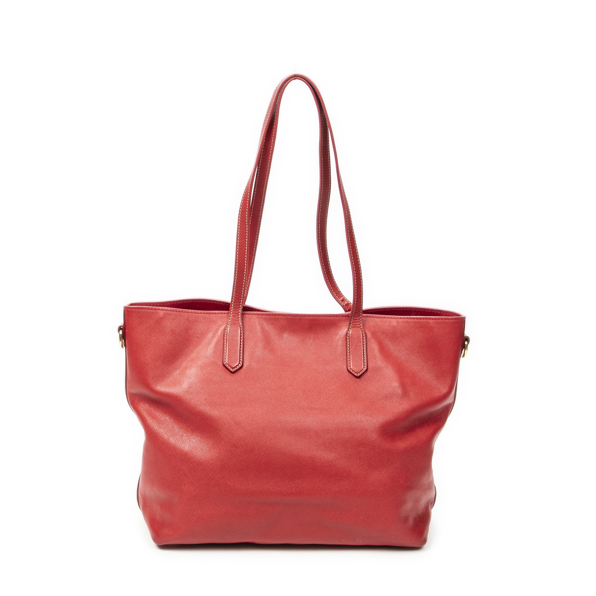 Prada Shoulder Bag Convertible Open Shopping Tote in Red Saffiano Leather and Gold hardware. The product is in Very Good Condition (AB).
