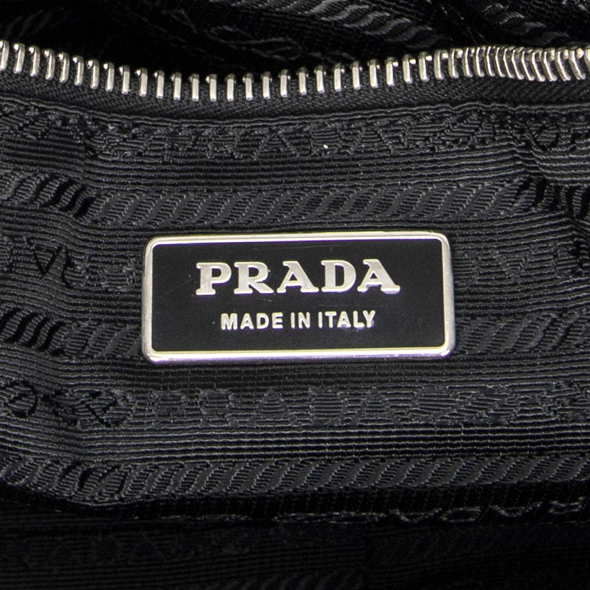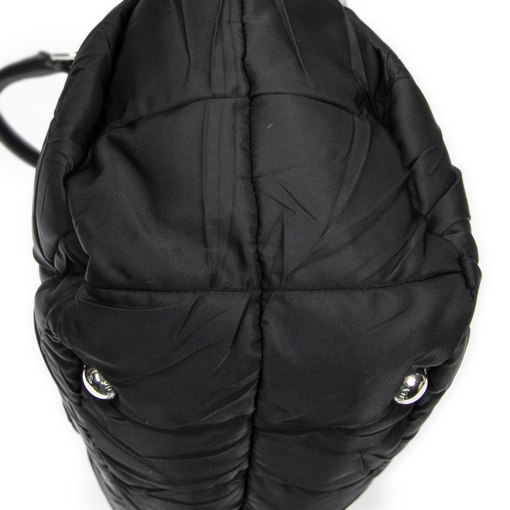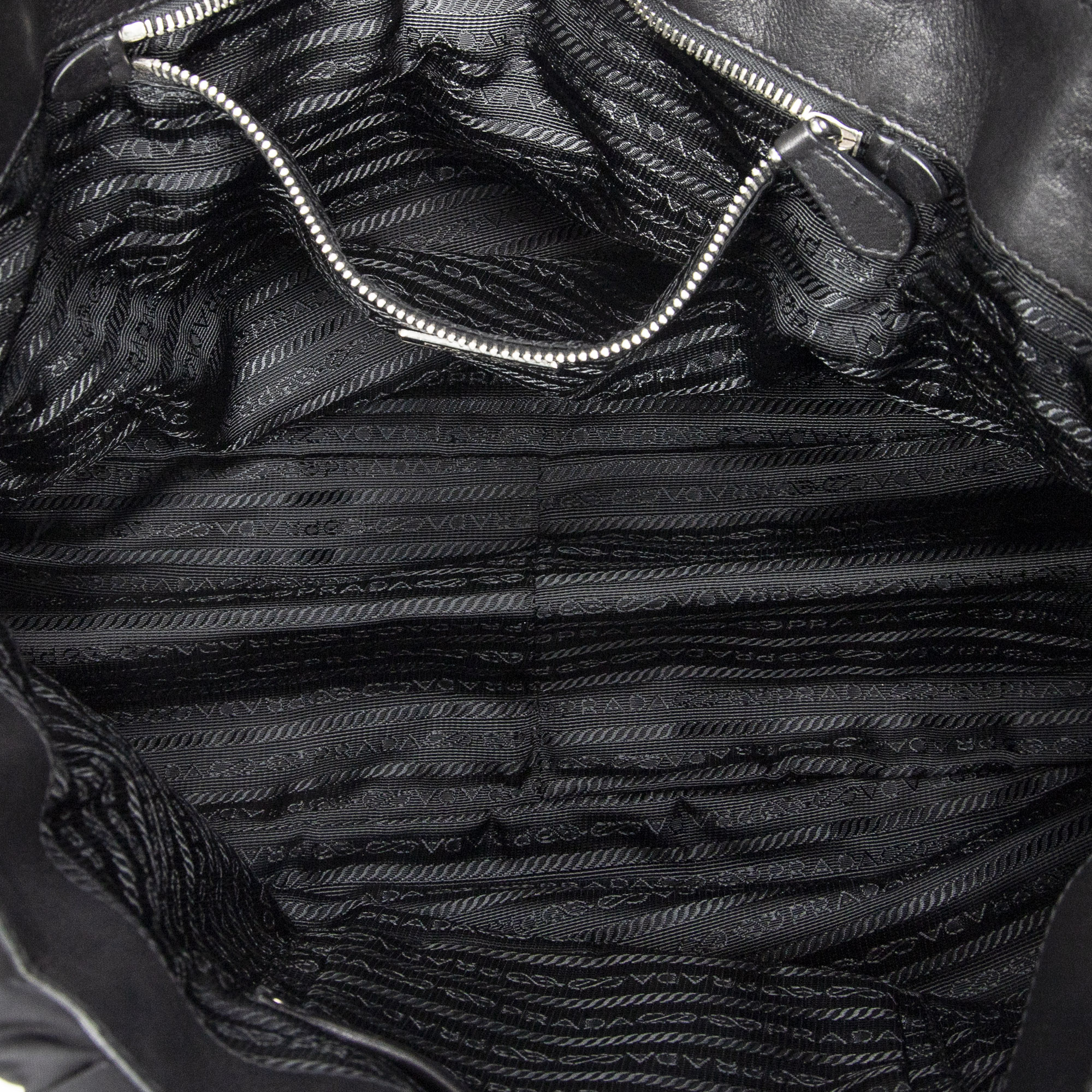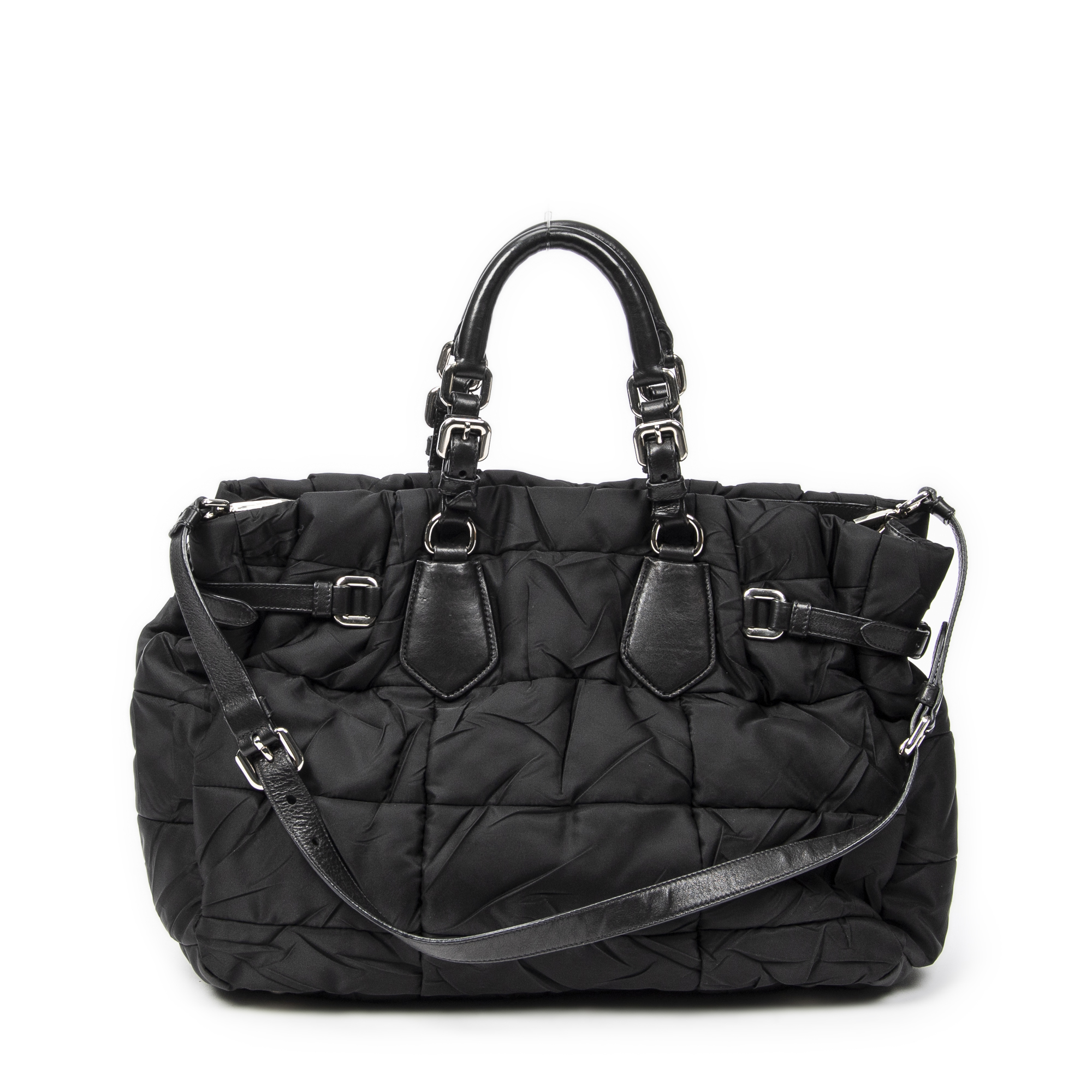 Prada Shoulder Bag Convertible Shopper Tote in Black Quilted Nylon Canvas and Silver hardware. The product is in Excellent Condition (A).