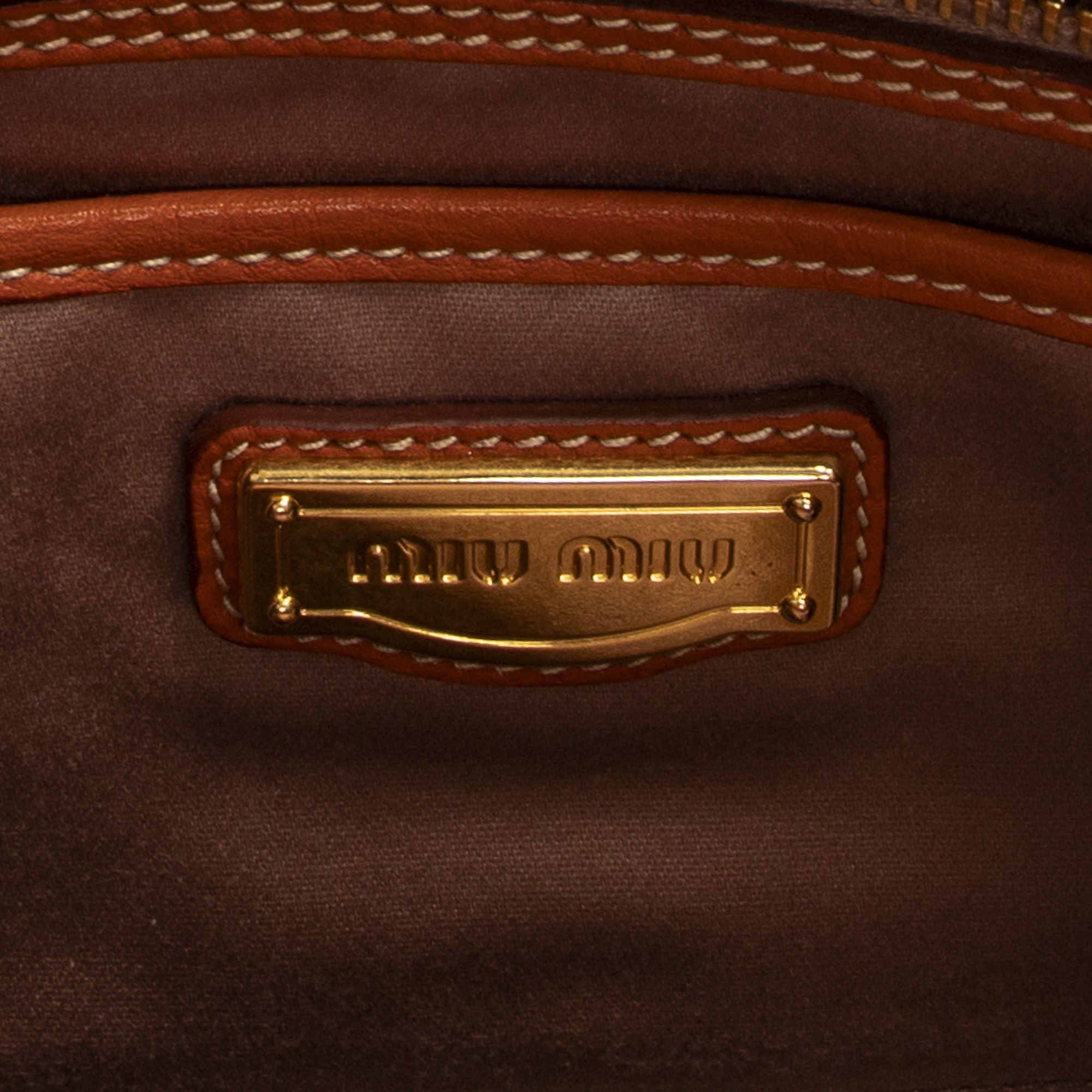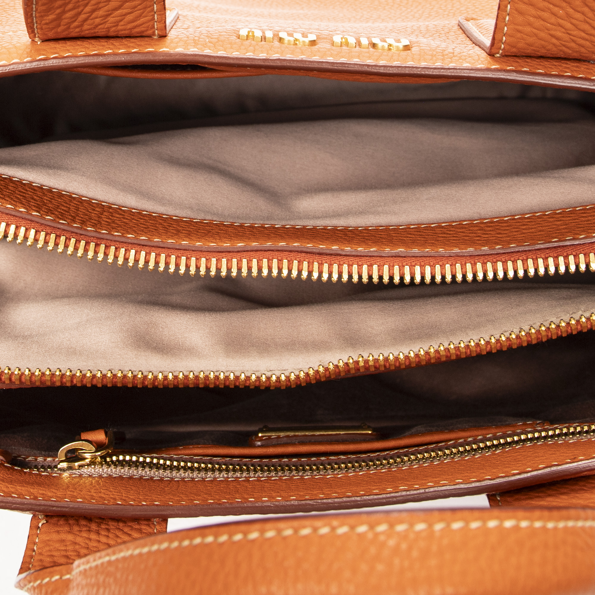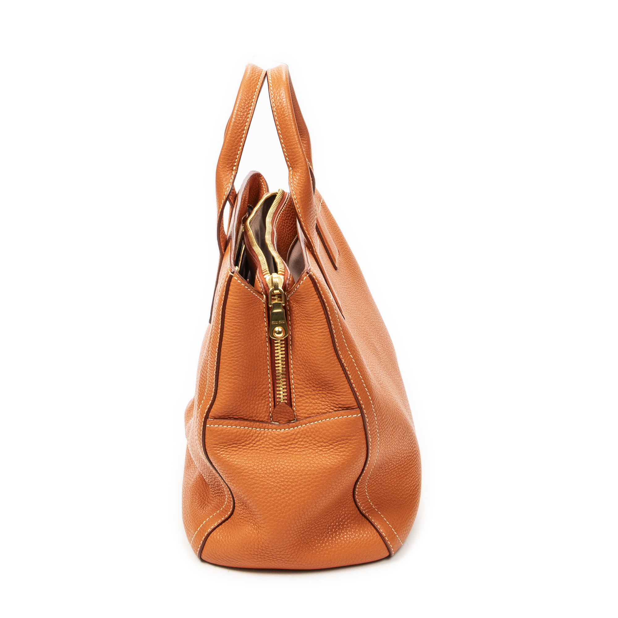 Miu Miu Shoulder Bag Convertible Zip Tote in Orange Vitello Caribu Leather and Gold hardware. The product is in Excellent Condition (A).