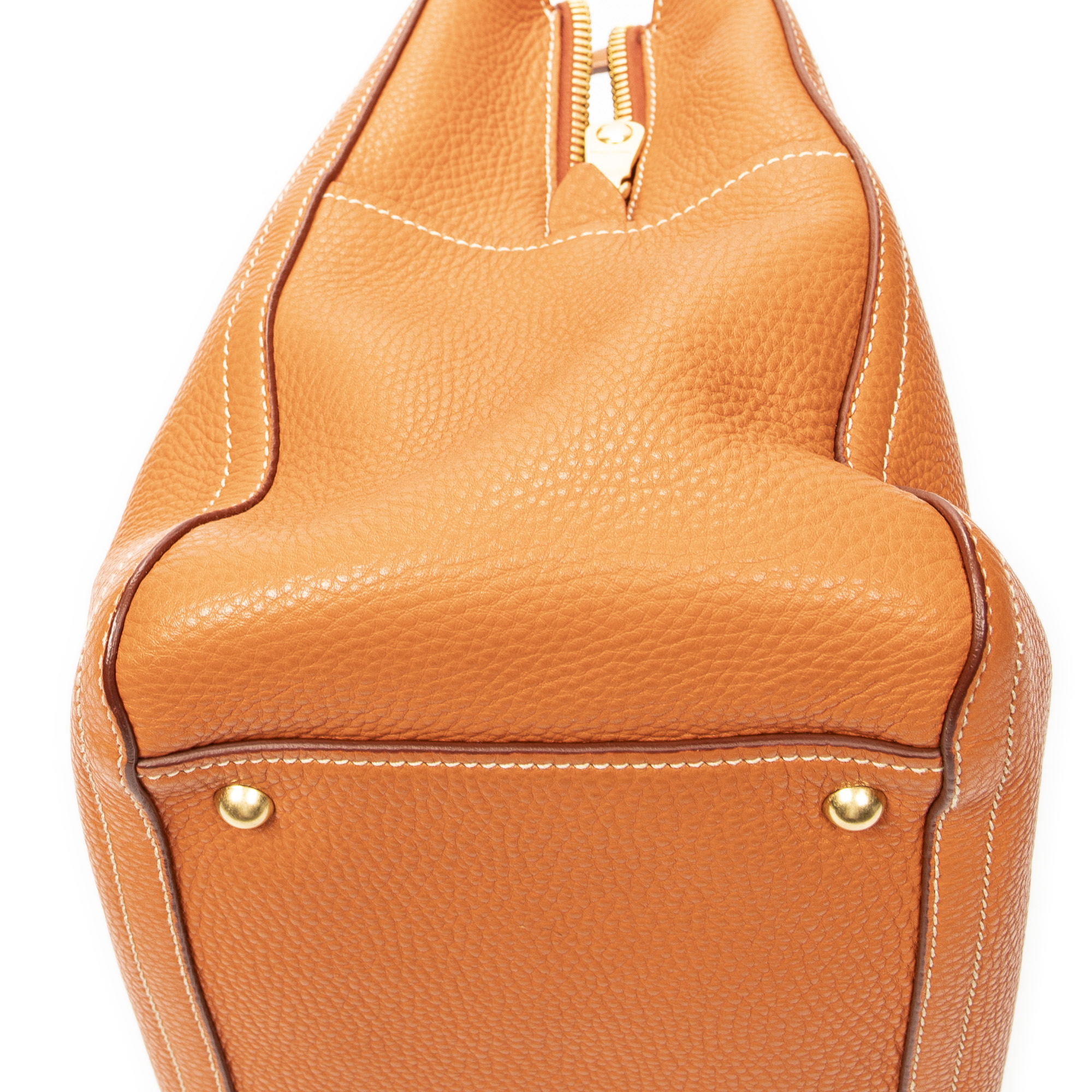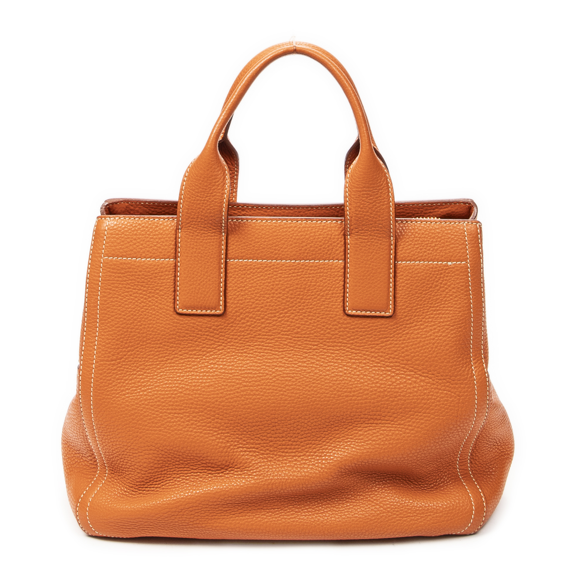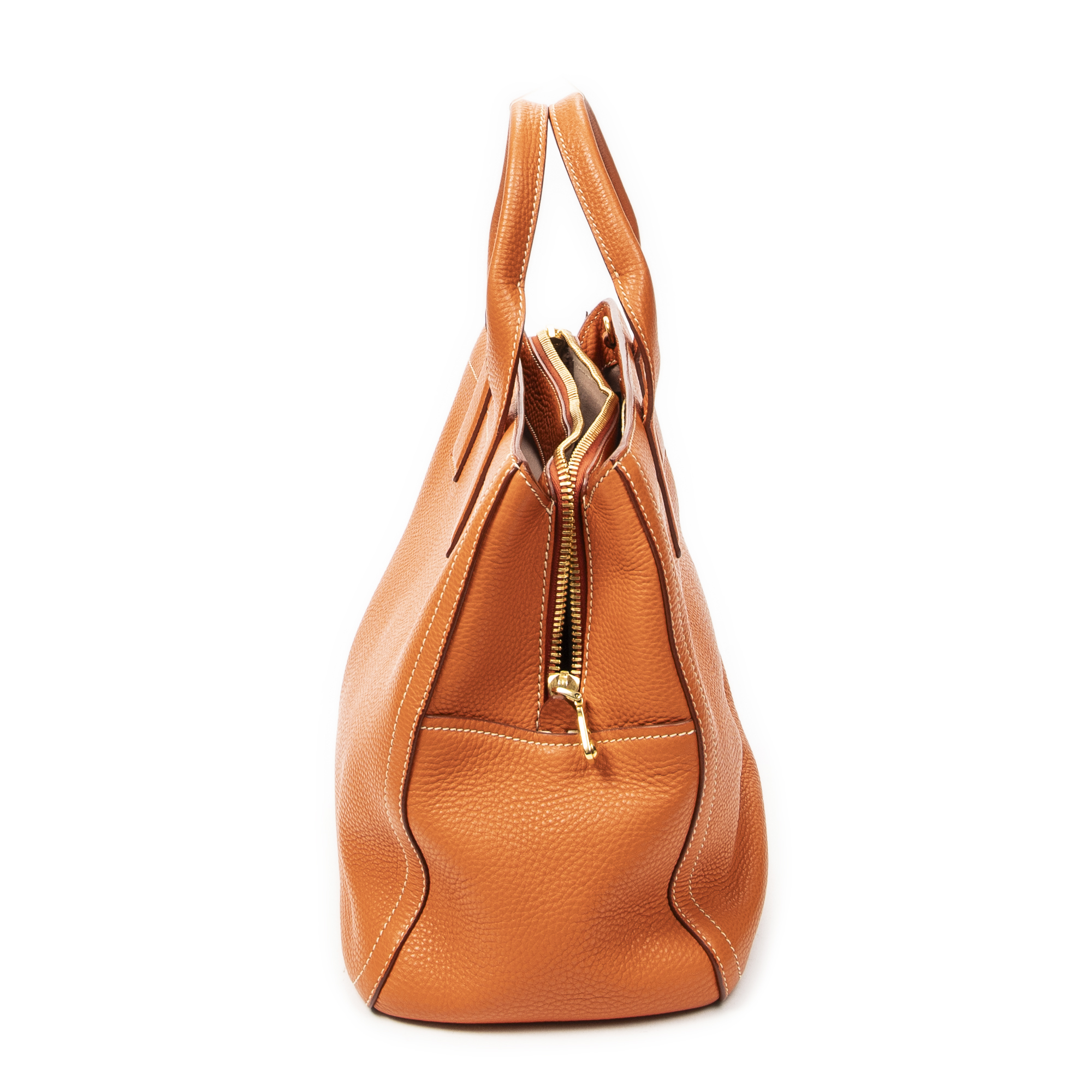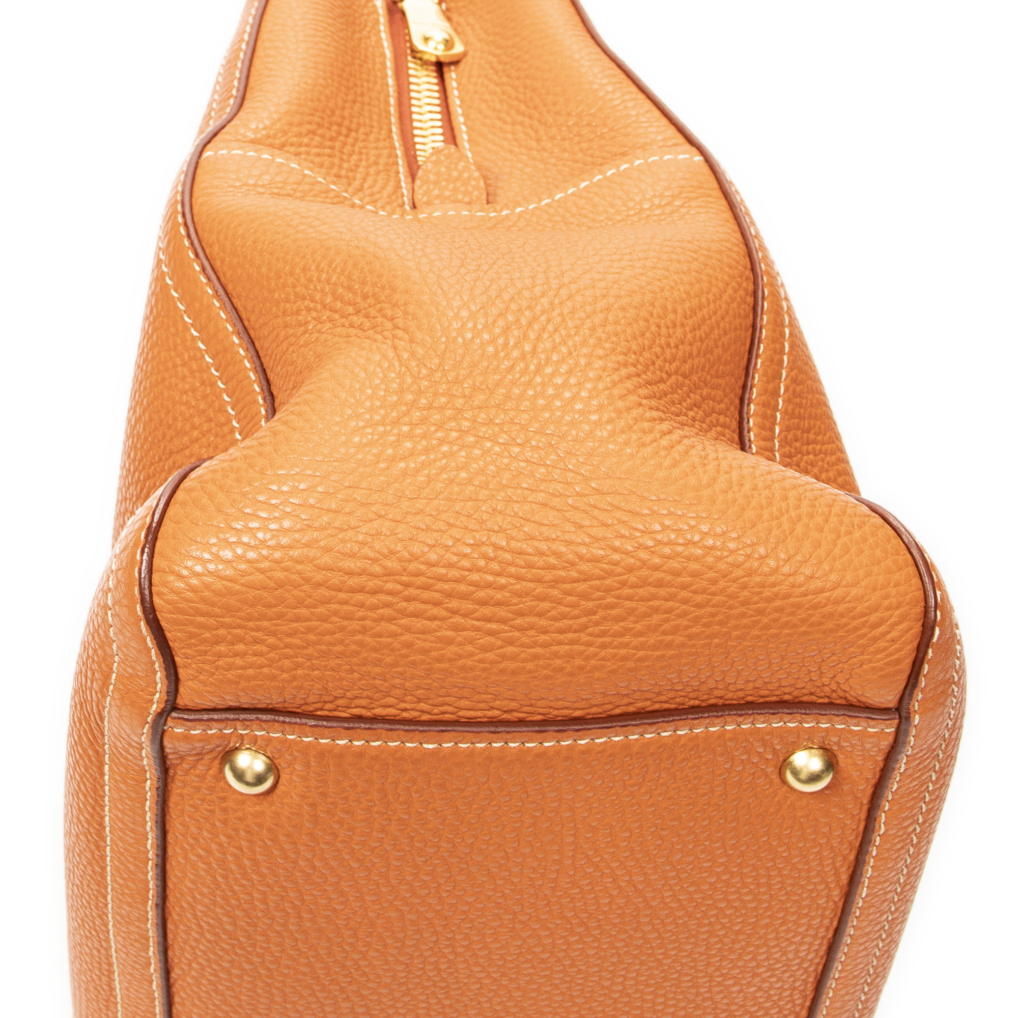 Miu Miu Shoulder Bag Convertible Zip Tote in Orange Vitello Caribu Leather and Gold hardware. The product is in Excellent Condition (A).