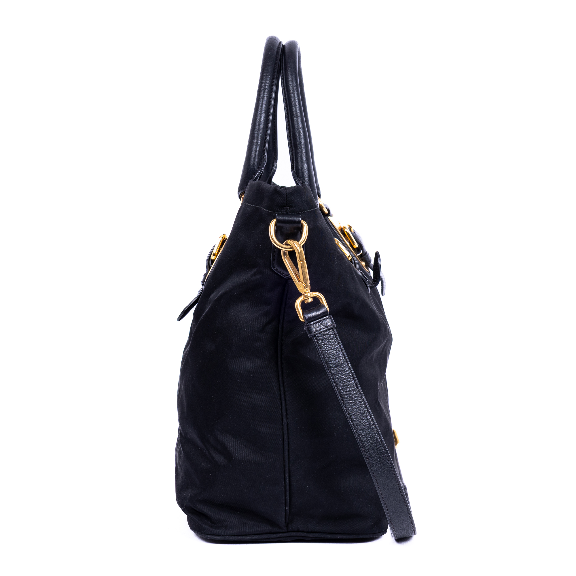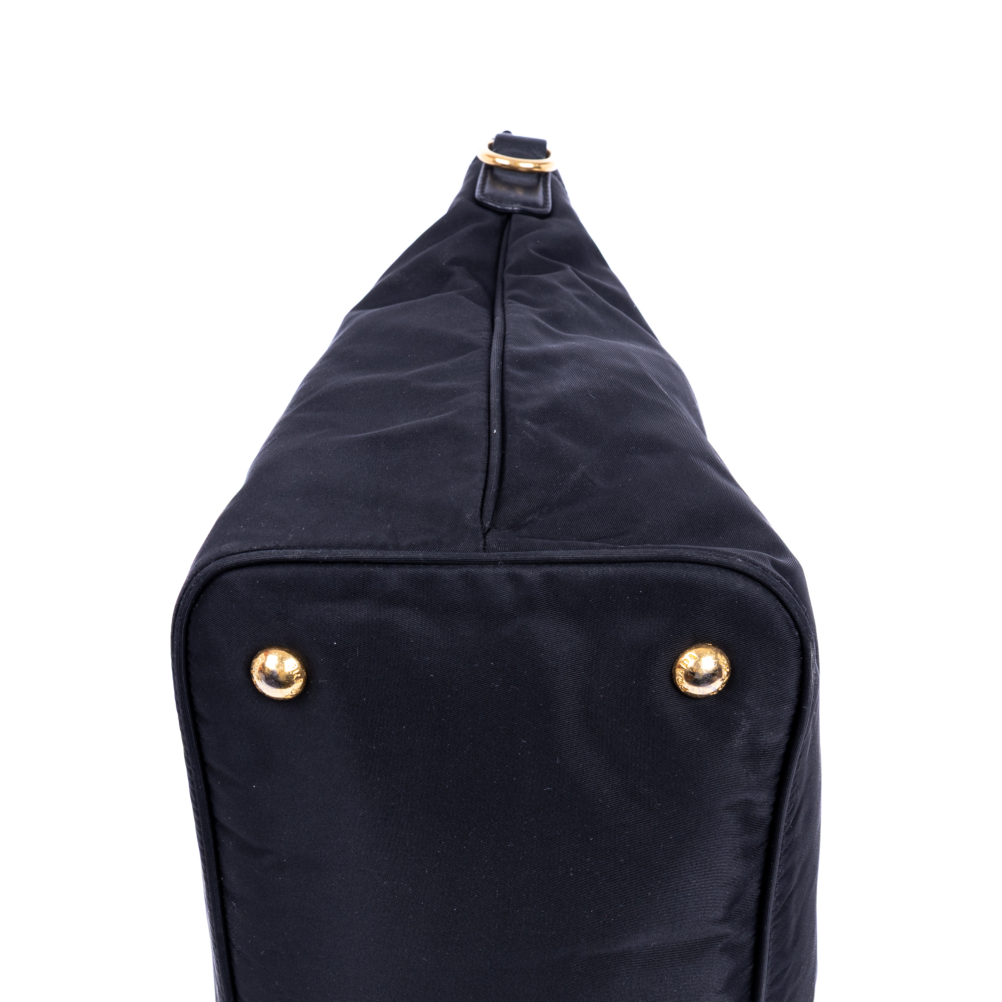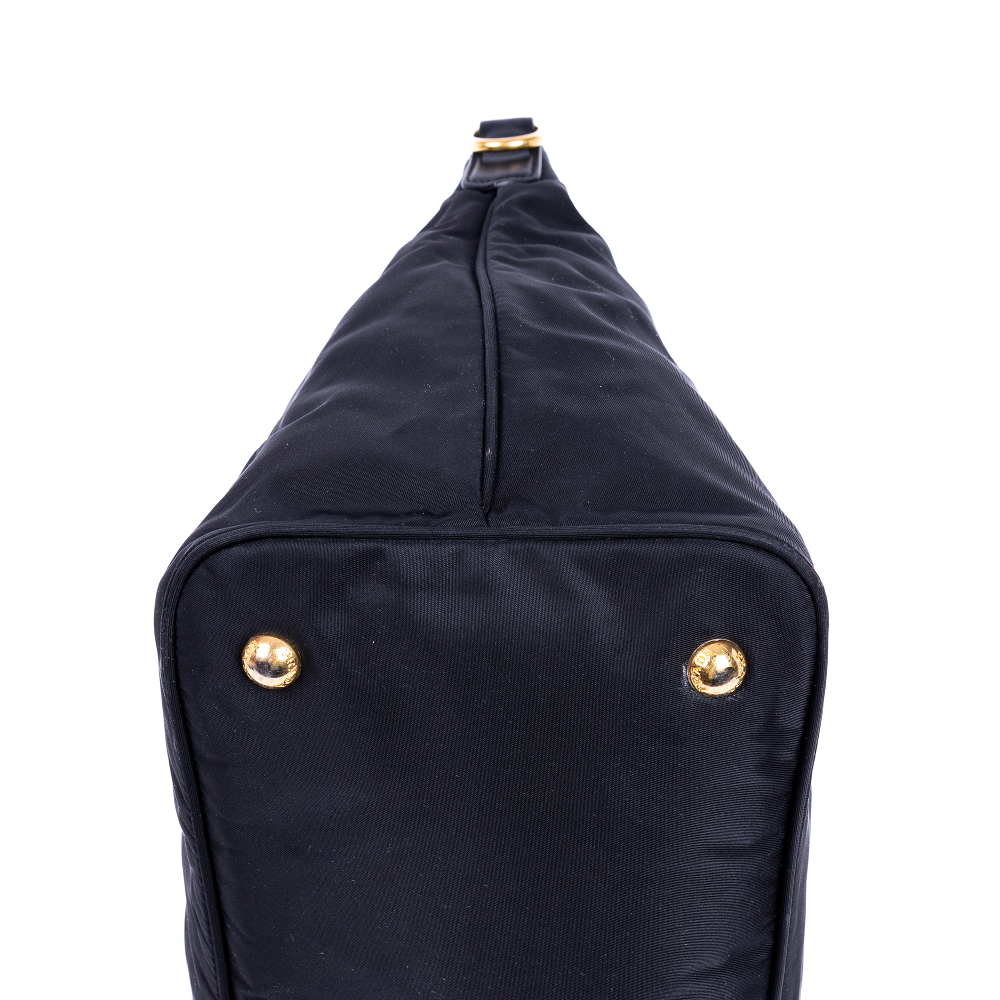 Prada Shoulder Bag Crossbody Shopping Tote in Black Tessuto Nylon Canvas and Gold hardware. The product is in Excellent Condition (A).