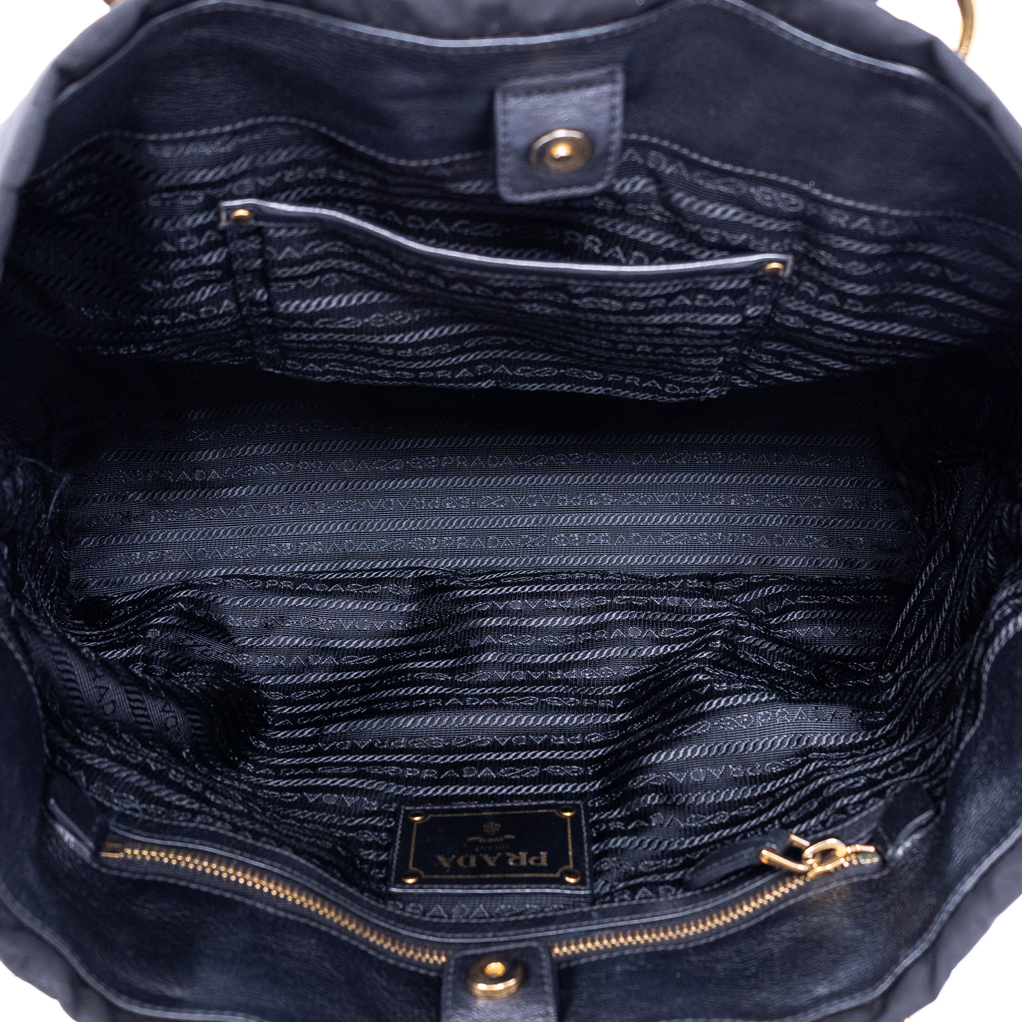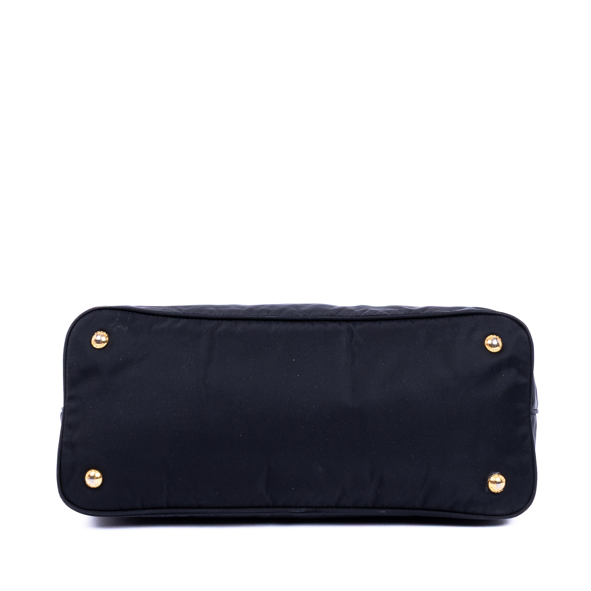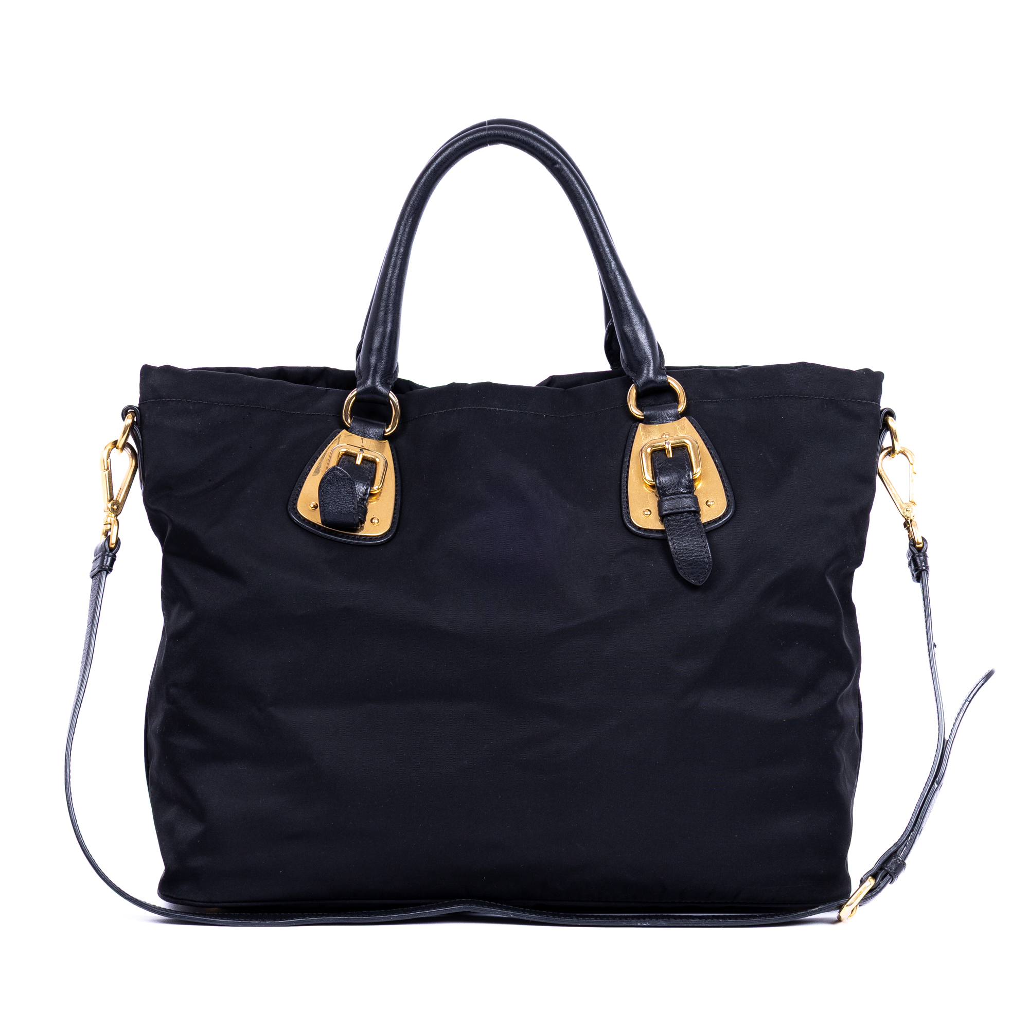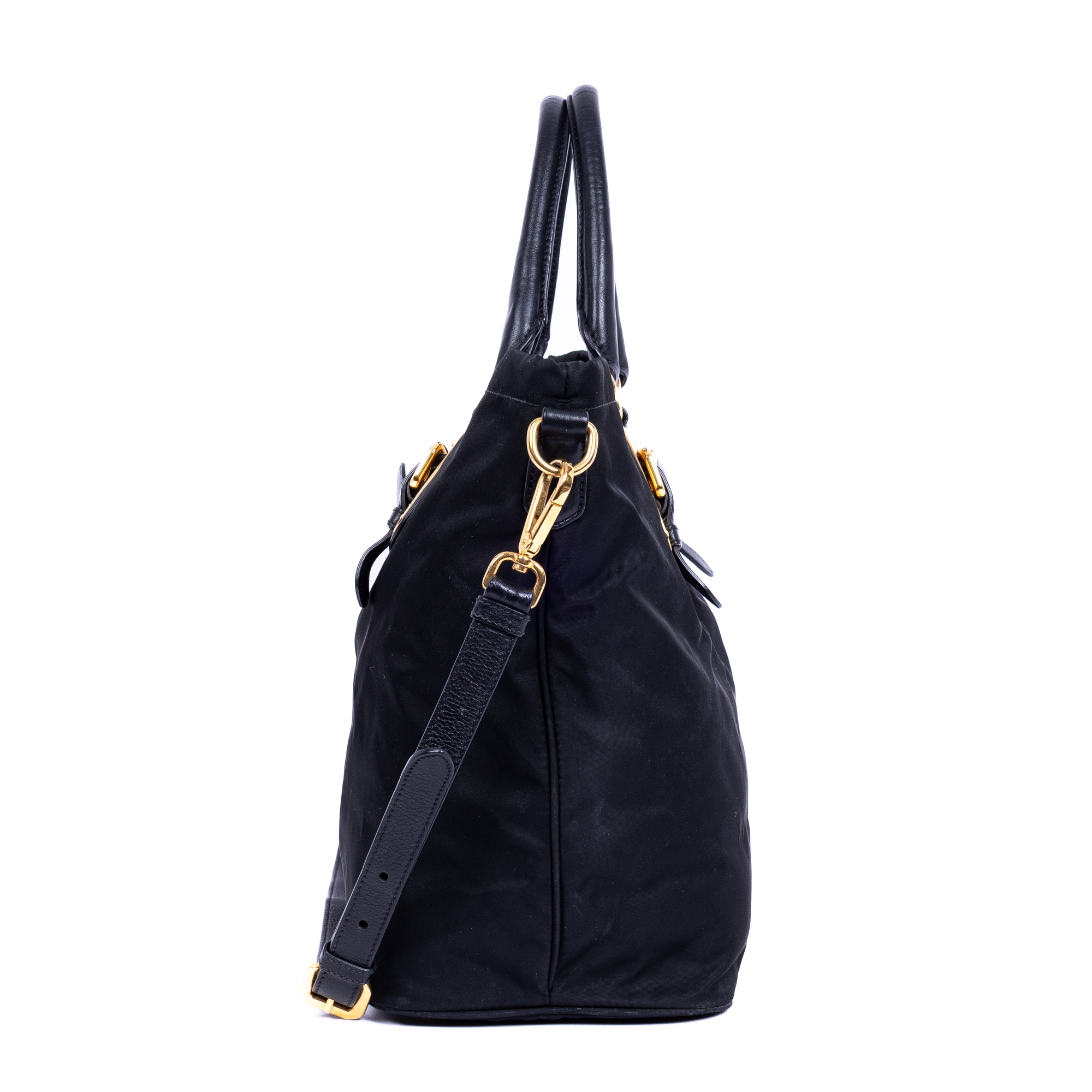 Prada Shoulder Bag Crossbody Shopping Tote in Black Tessuto Nylon Canvas and Gold hardware. The product is in Excellent Condition (A).