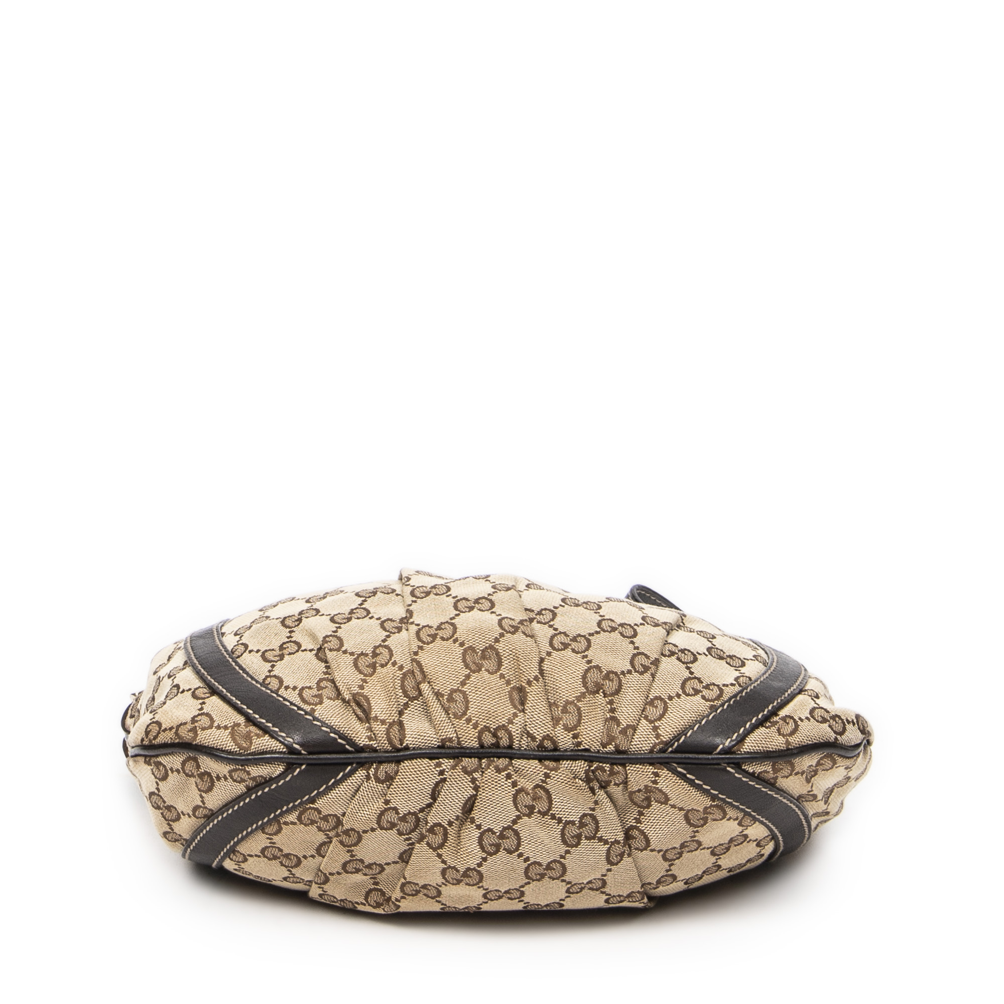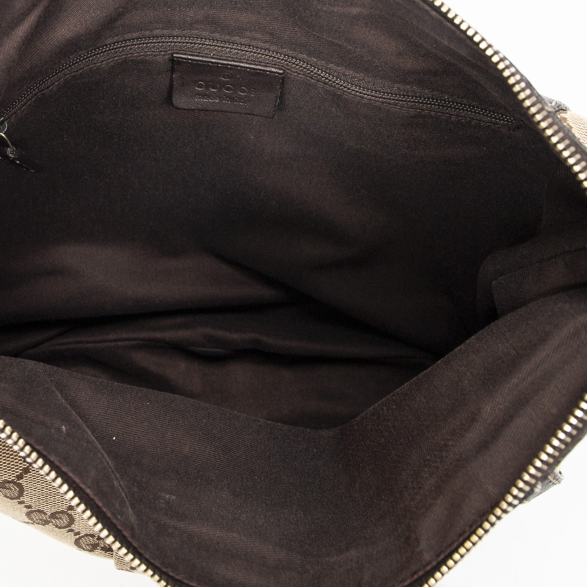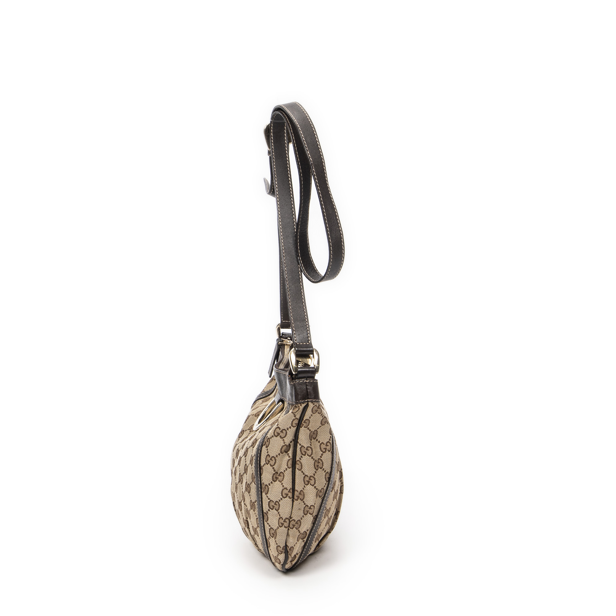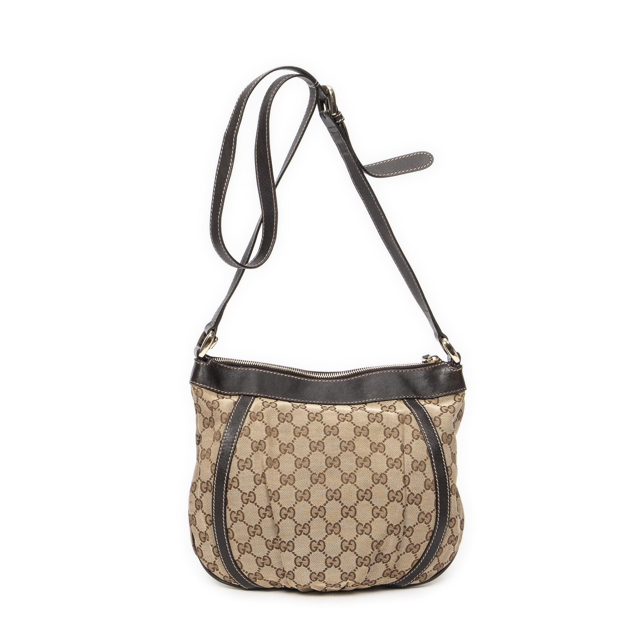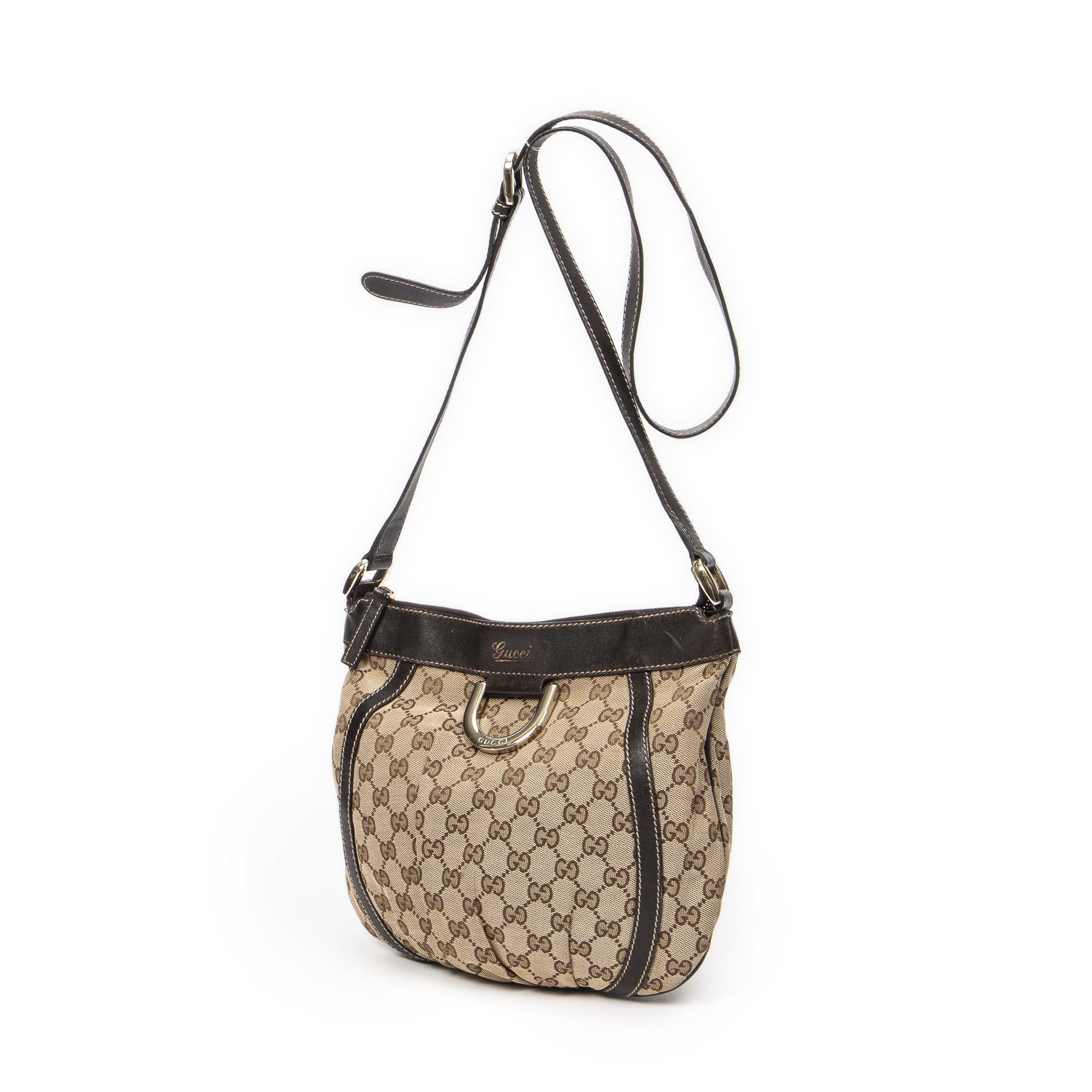 Gucci Shoulder Bag D Ring Messenger in Brown/Beige Monogrammed Canvas and Gold hardware. The product is in Very Good Condition (AB).