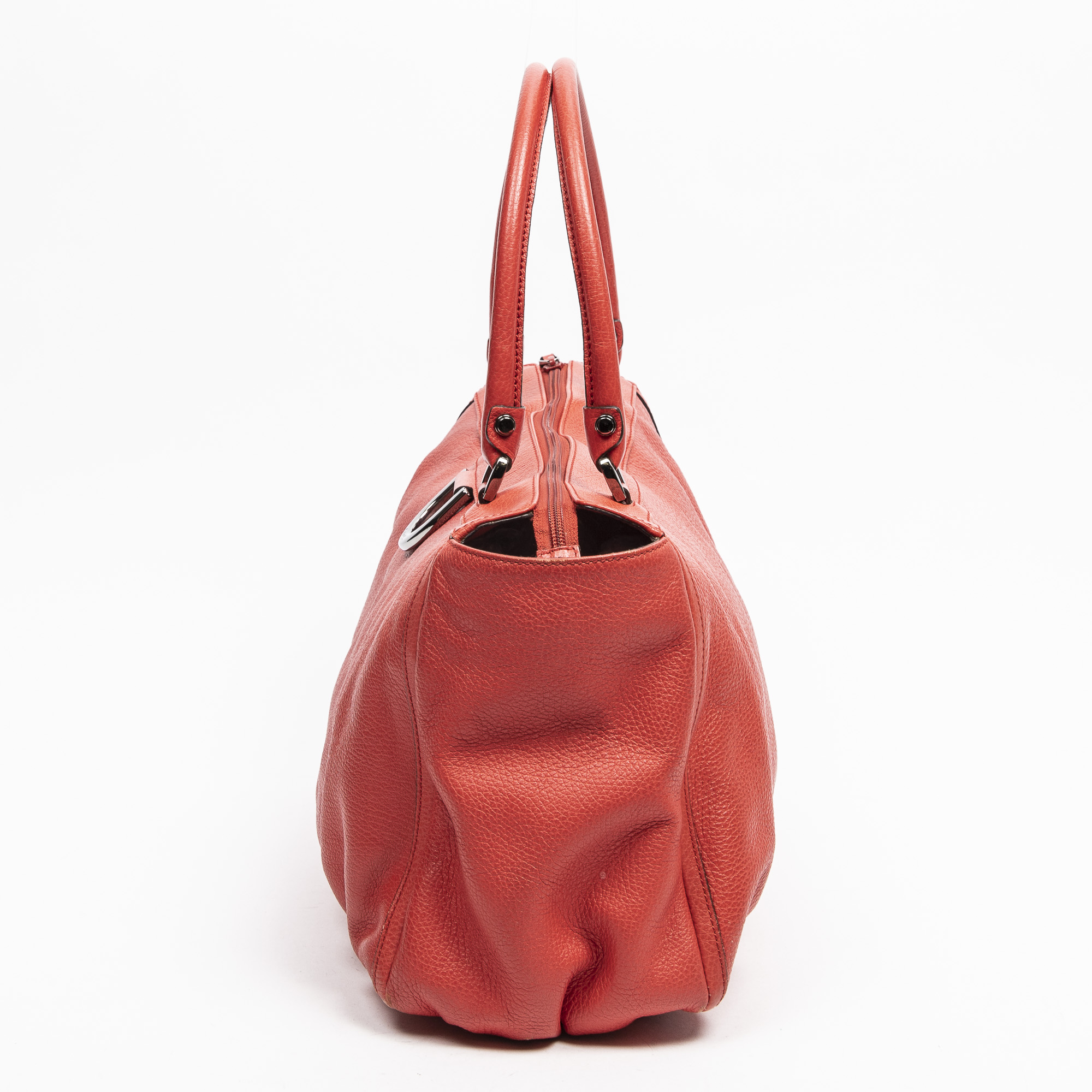 Gucci Shoulder Bag D Ring Shoulder Tote in Red Grained Leather and Silver hardware. The product is in Excellent Condition (A).