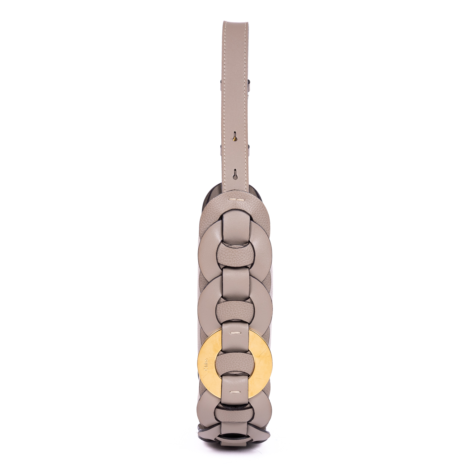 Chloé Shoulder Bag Darryl Hobo in Grey Grained Leather and Gold hardware. The product is in Perfect Condition (AA).