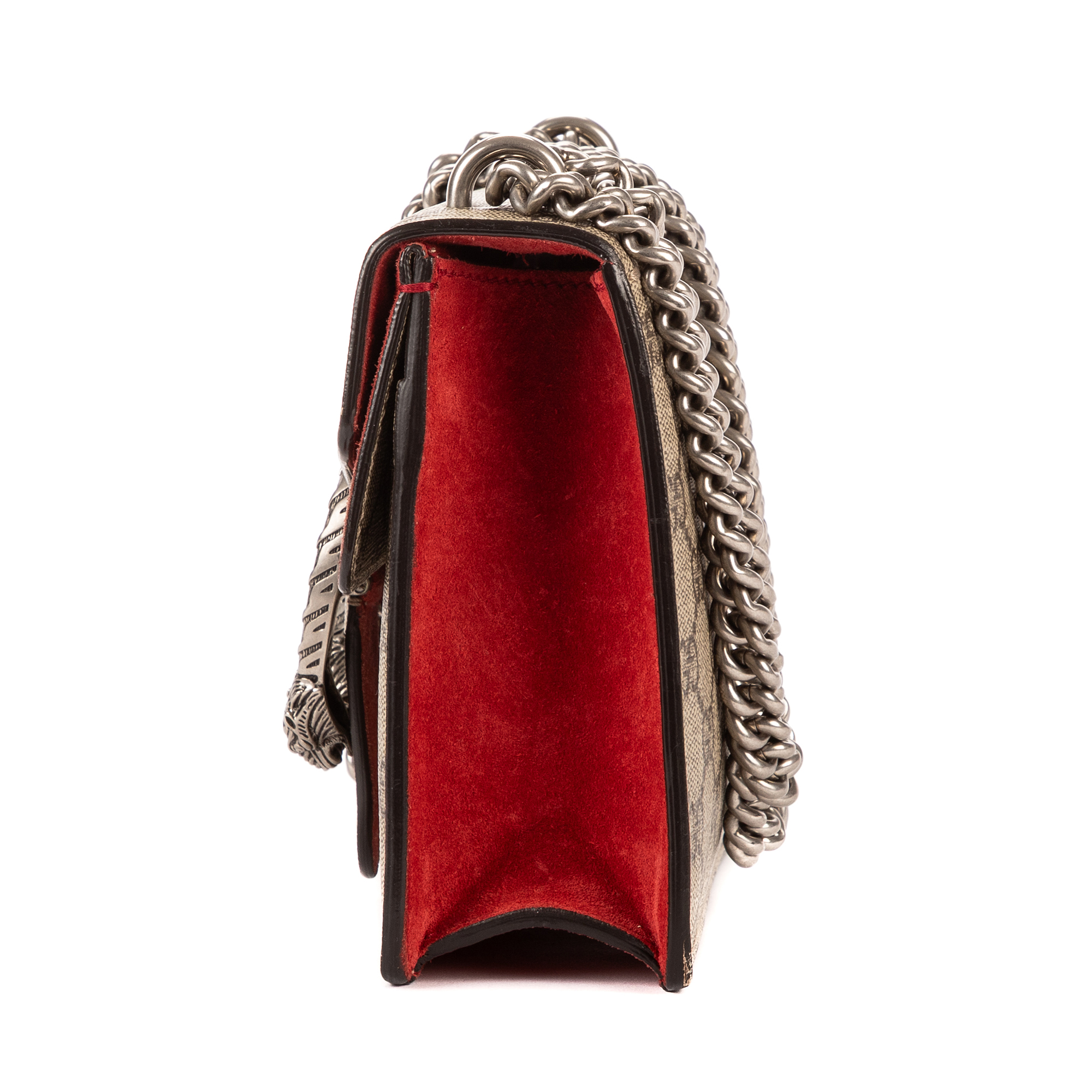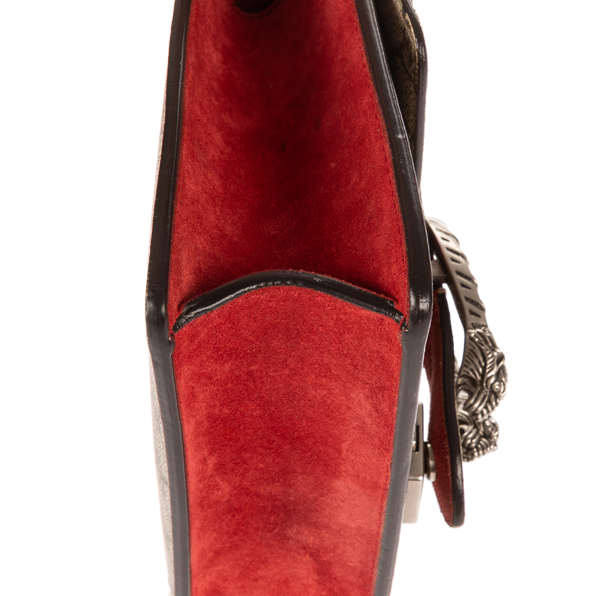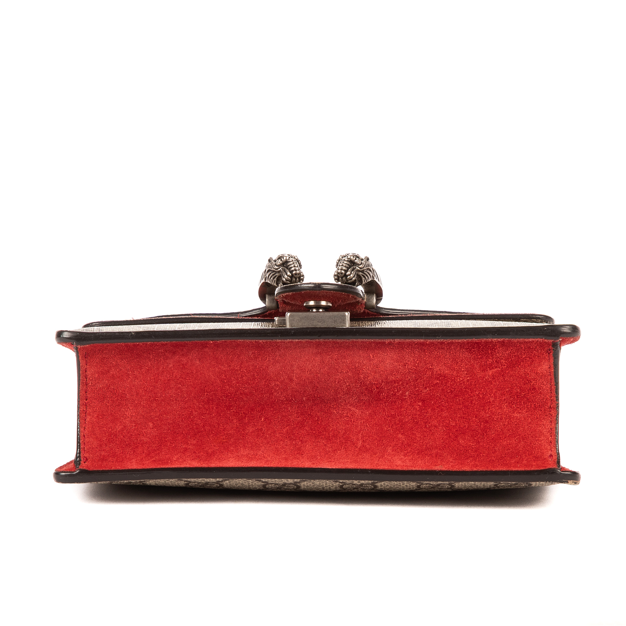 Gucci Shoulder Bag Dionysus Mini in Beige/Red Supreme Coated Canvas/Suede Leather and Silver hardware. The product is in Excellent Condition (A).