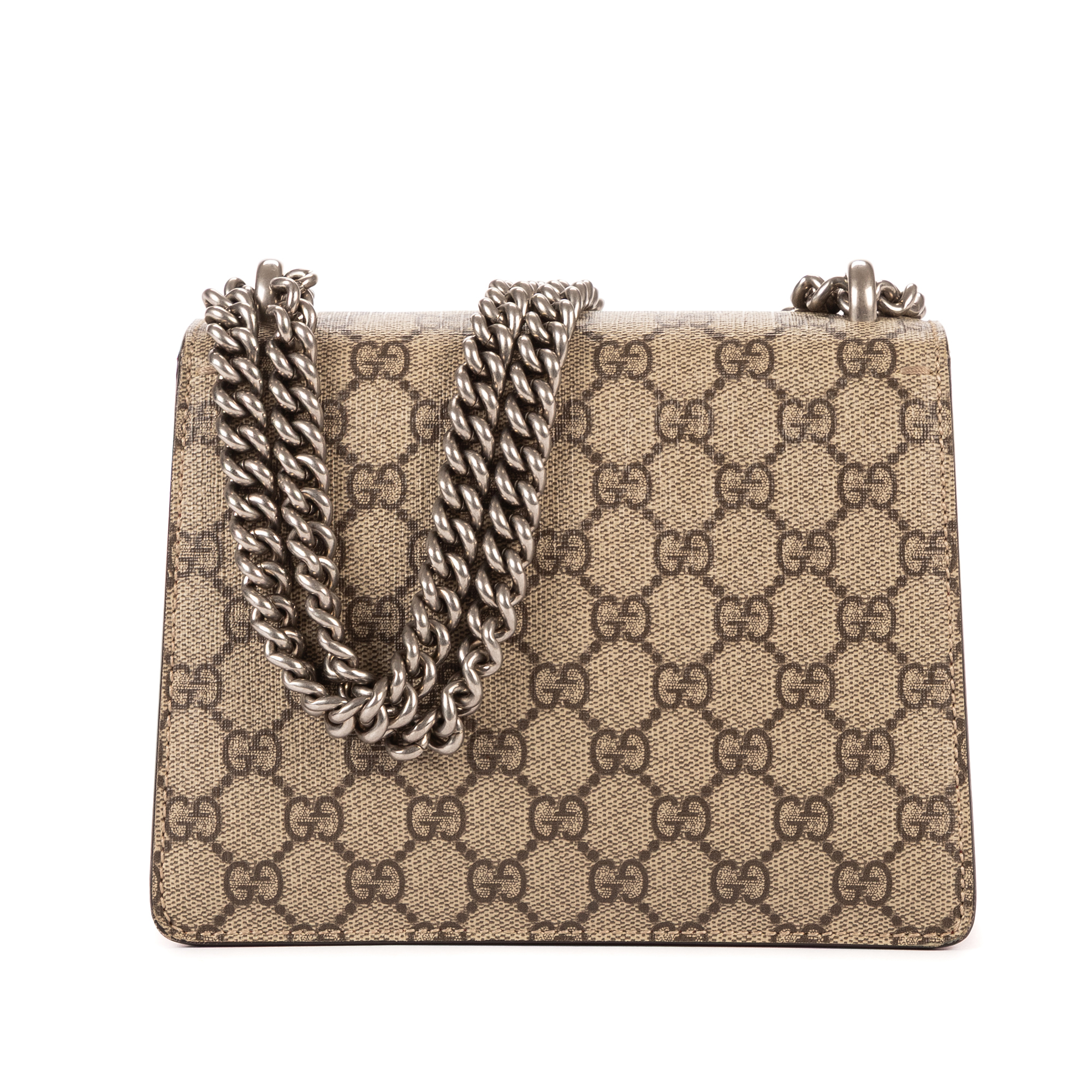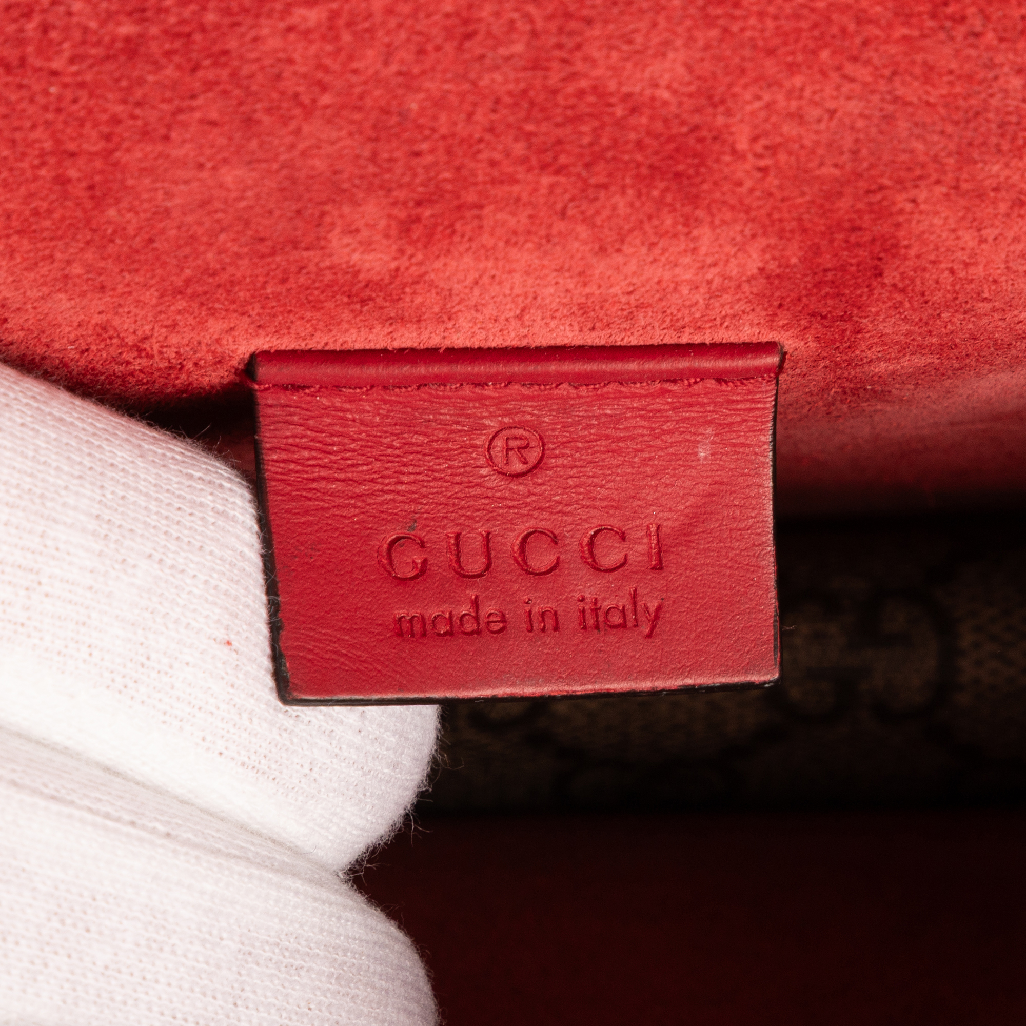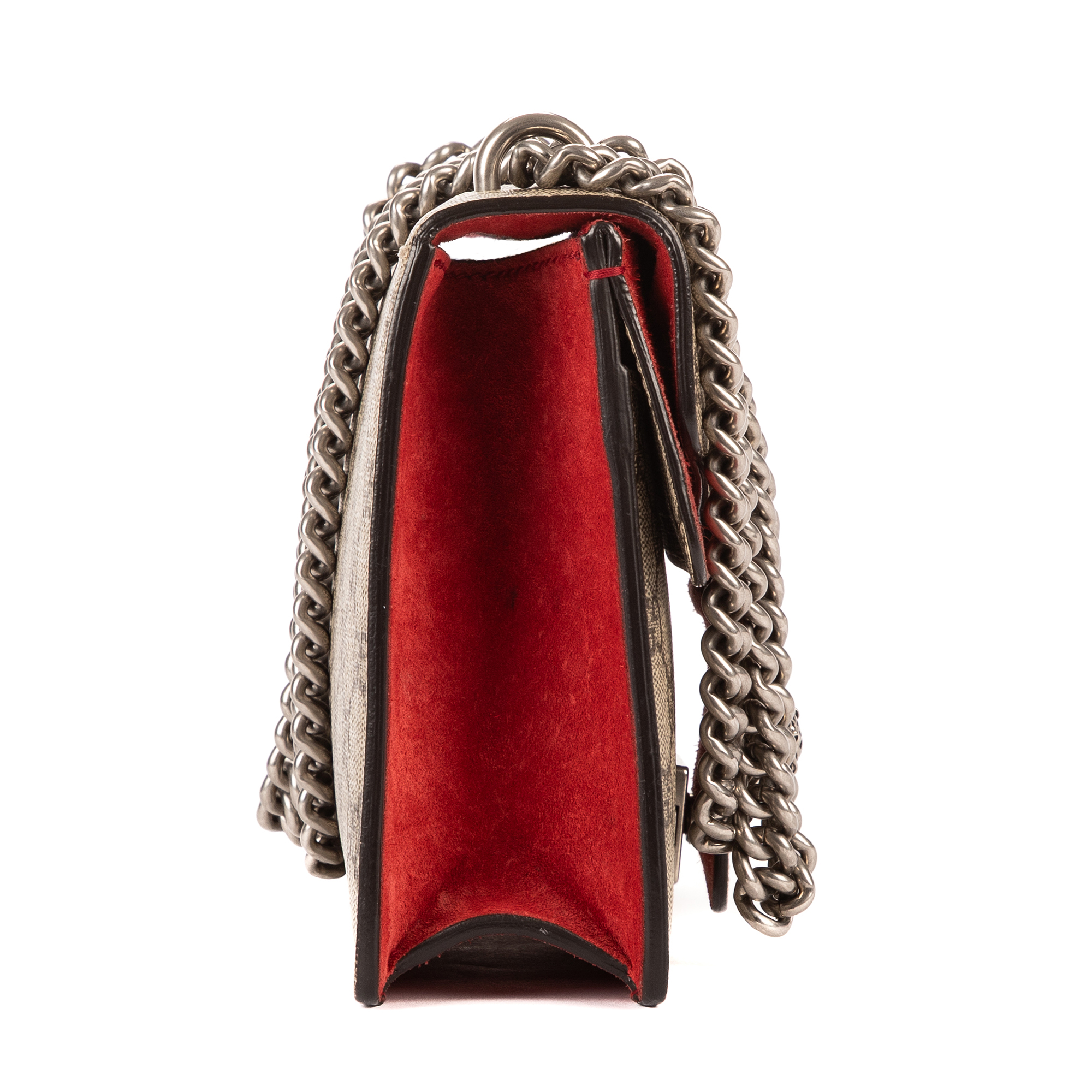 Gucci Shoulder Bag Dionysus Mini in Beige/Red Supreme Coated Canvas/Suede Leather and Silver hardware. The product is in Excellent Condition (A).