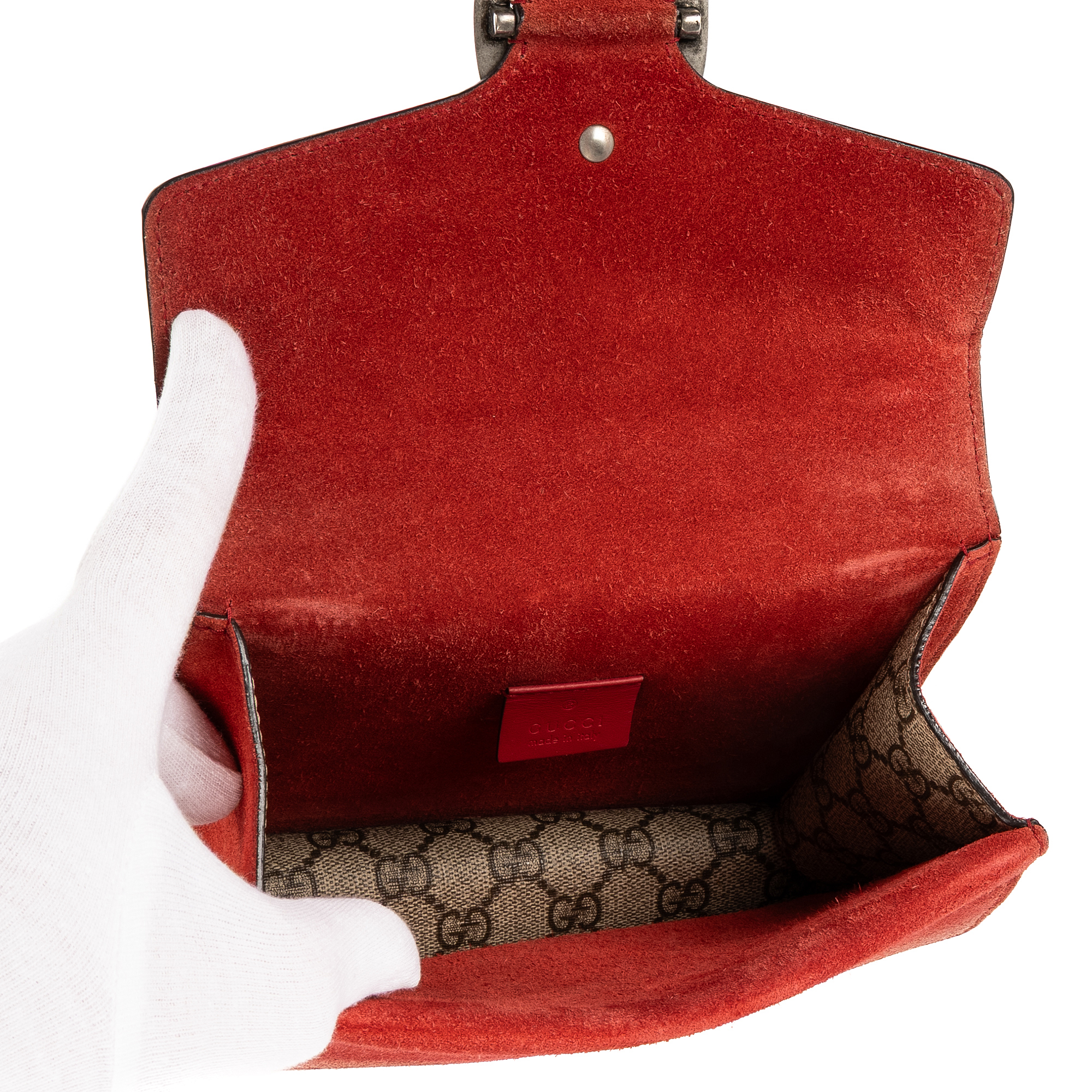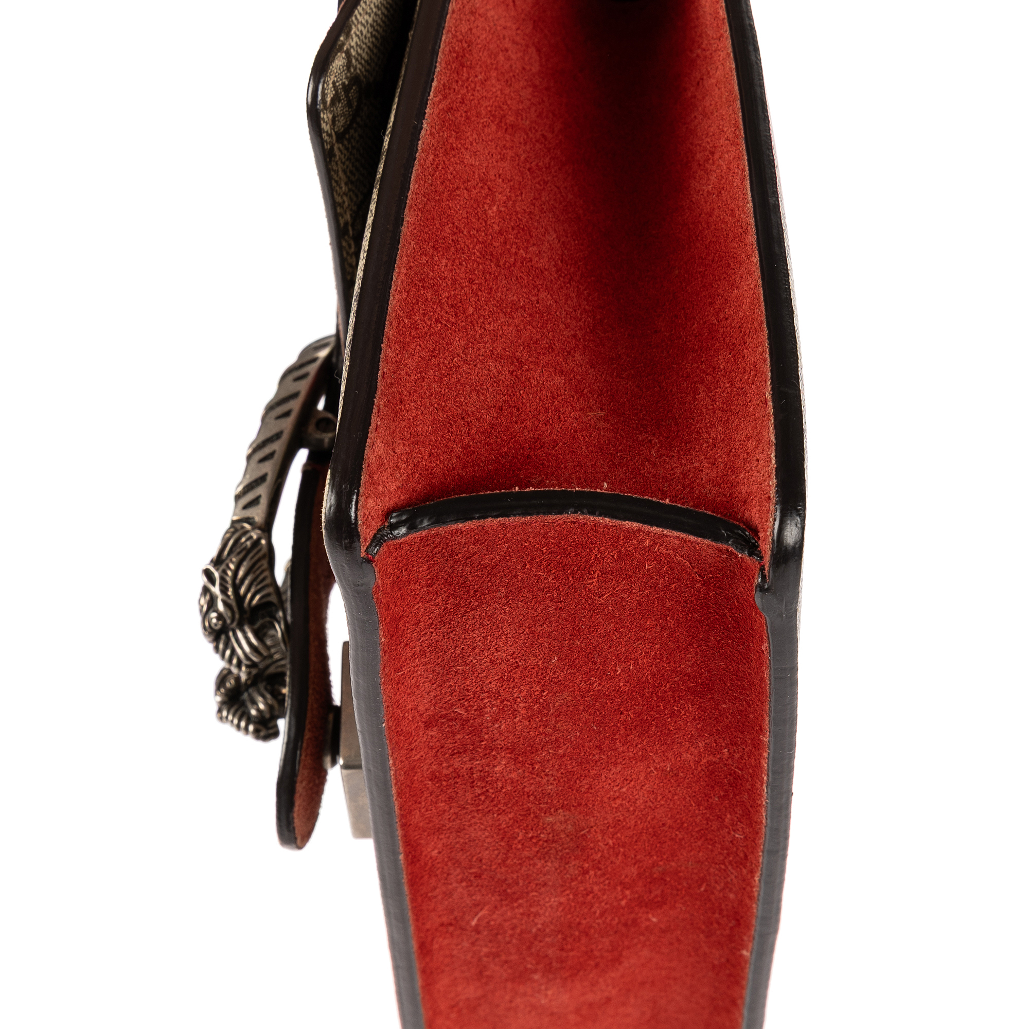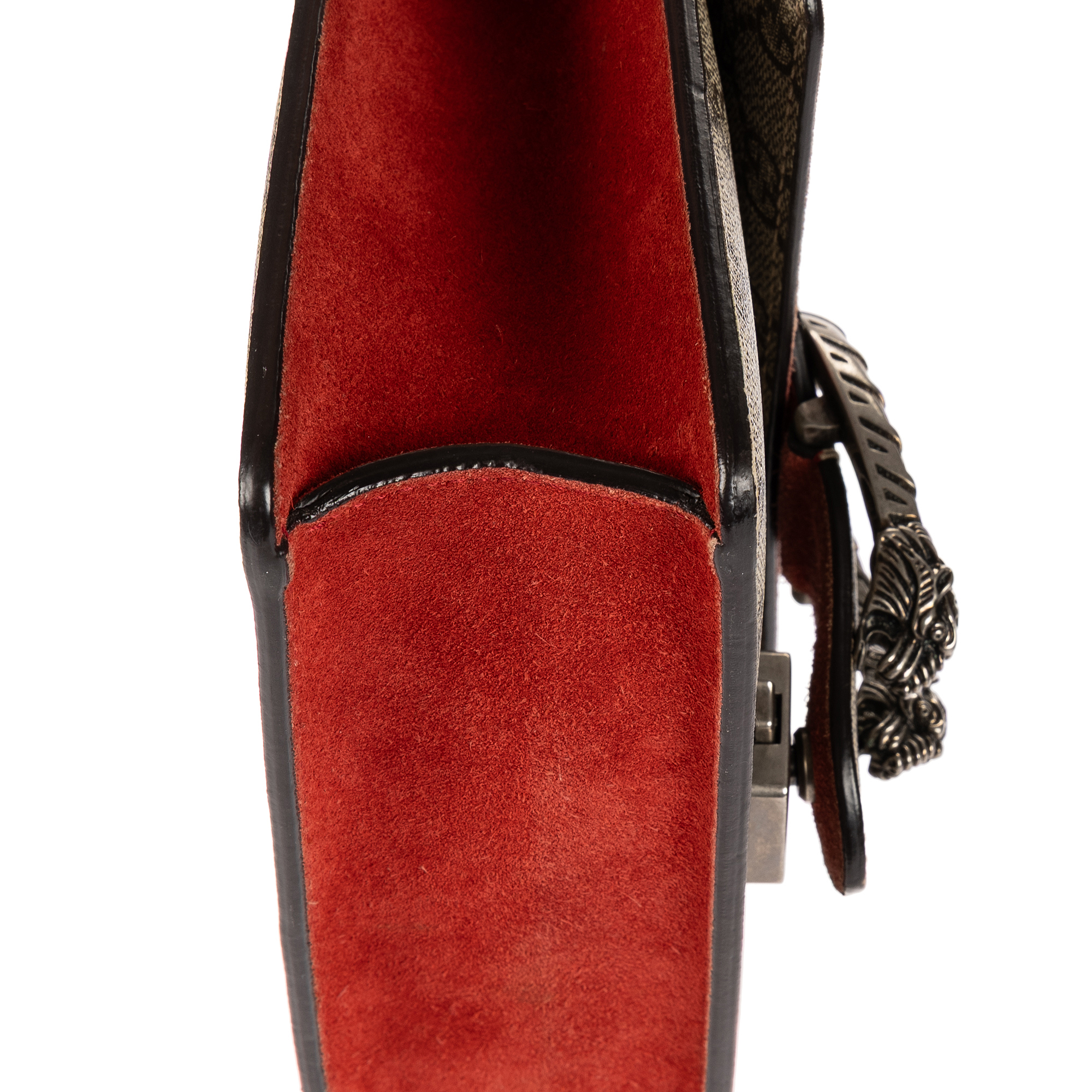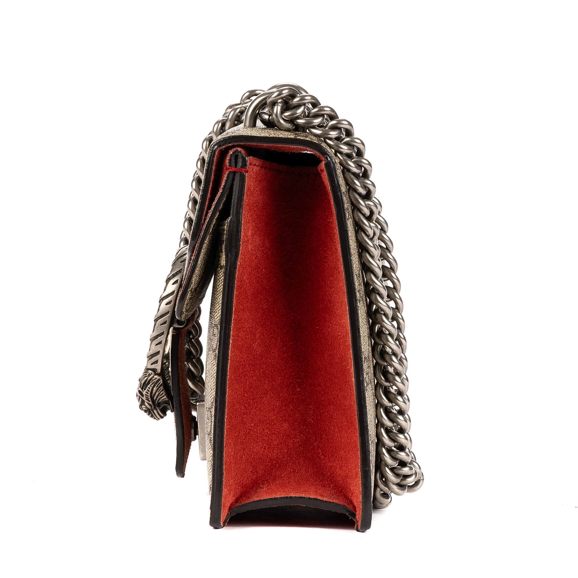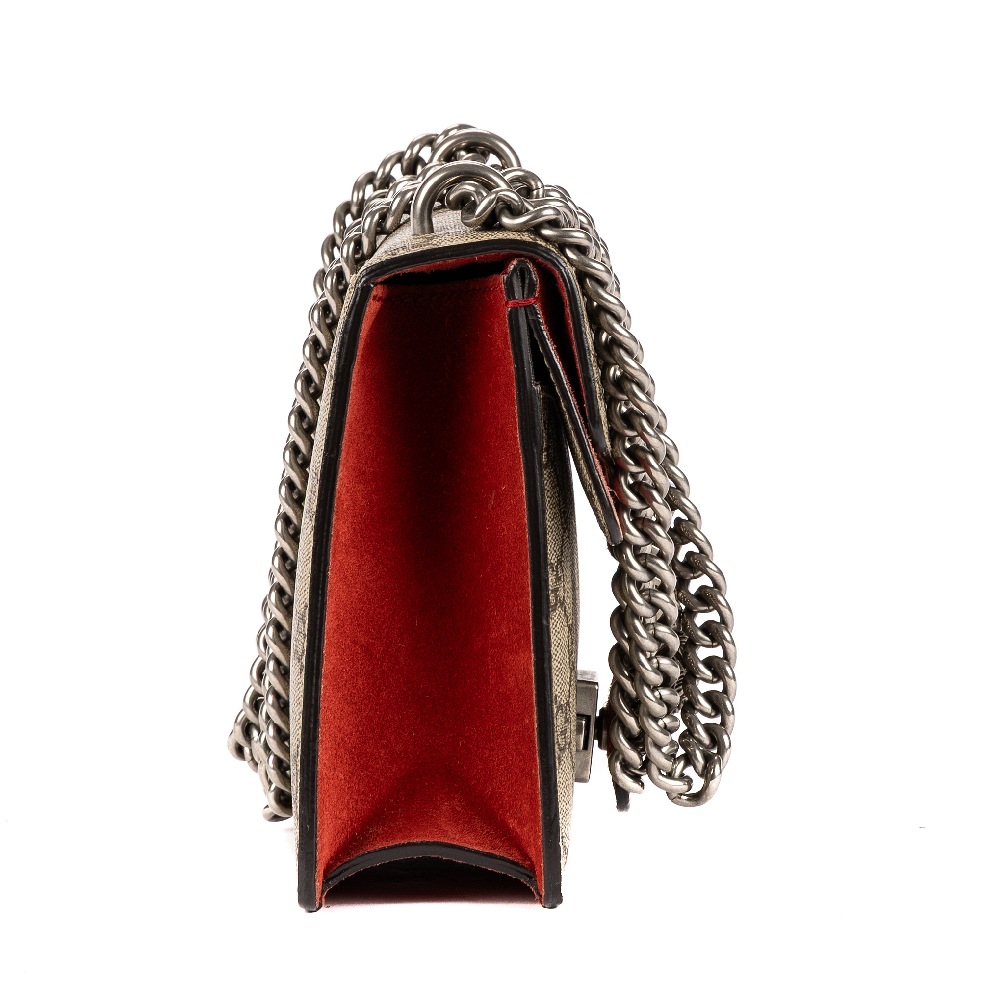 Gucci Shoulder Bag Dionysus Mini in Beige/Red Supreme Coated Canvas/Suede Leather and Silver hardware. The product is in Excellent Condition (A).