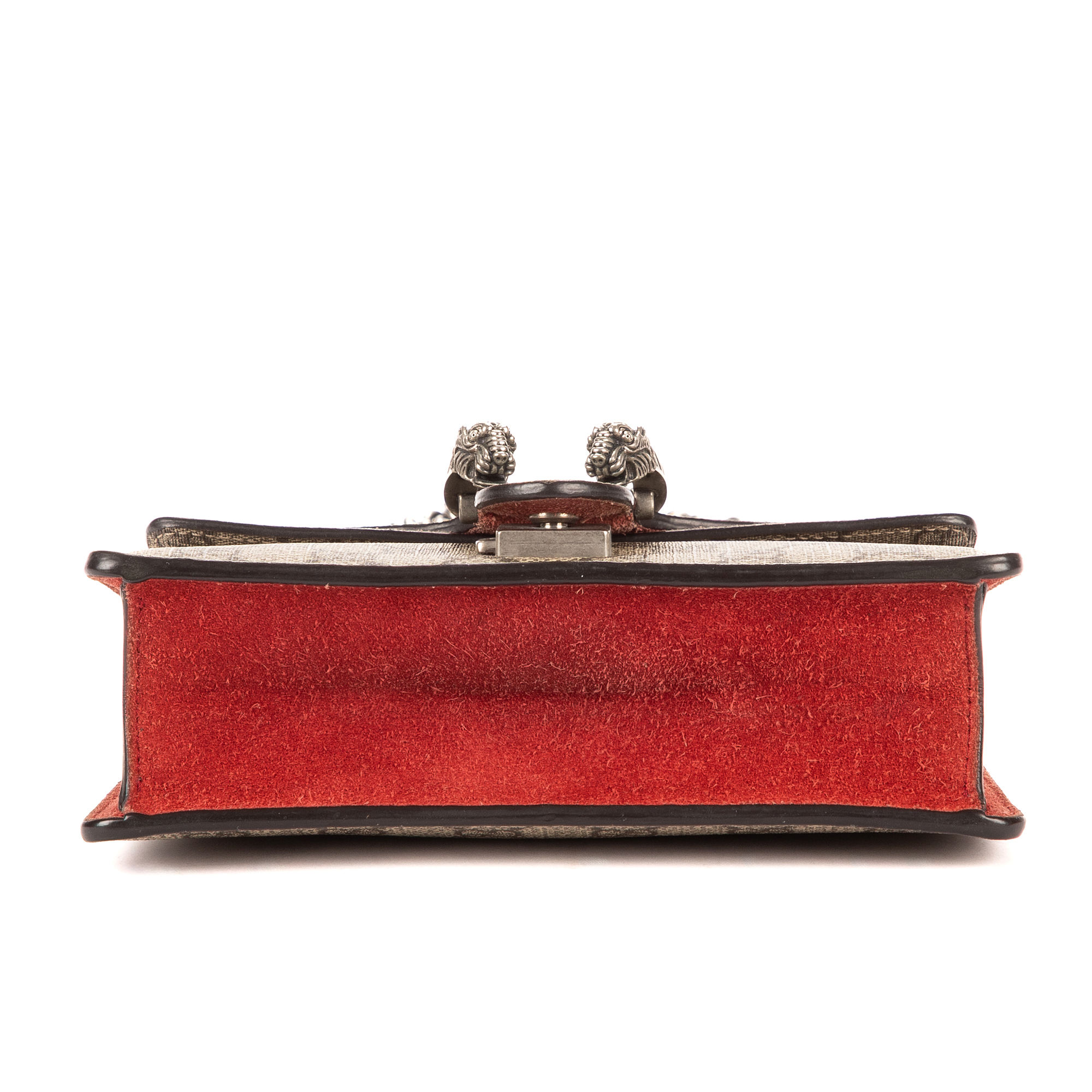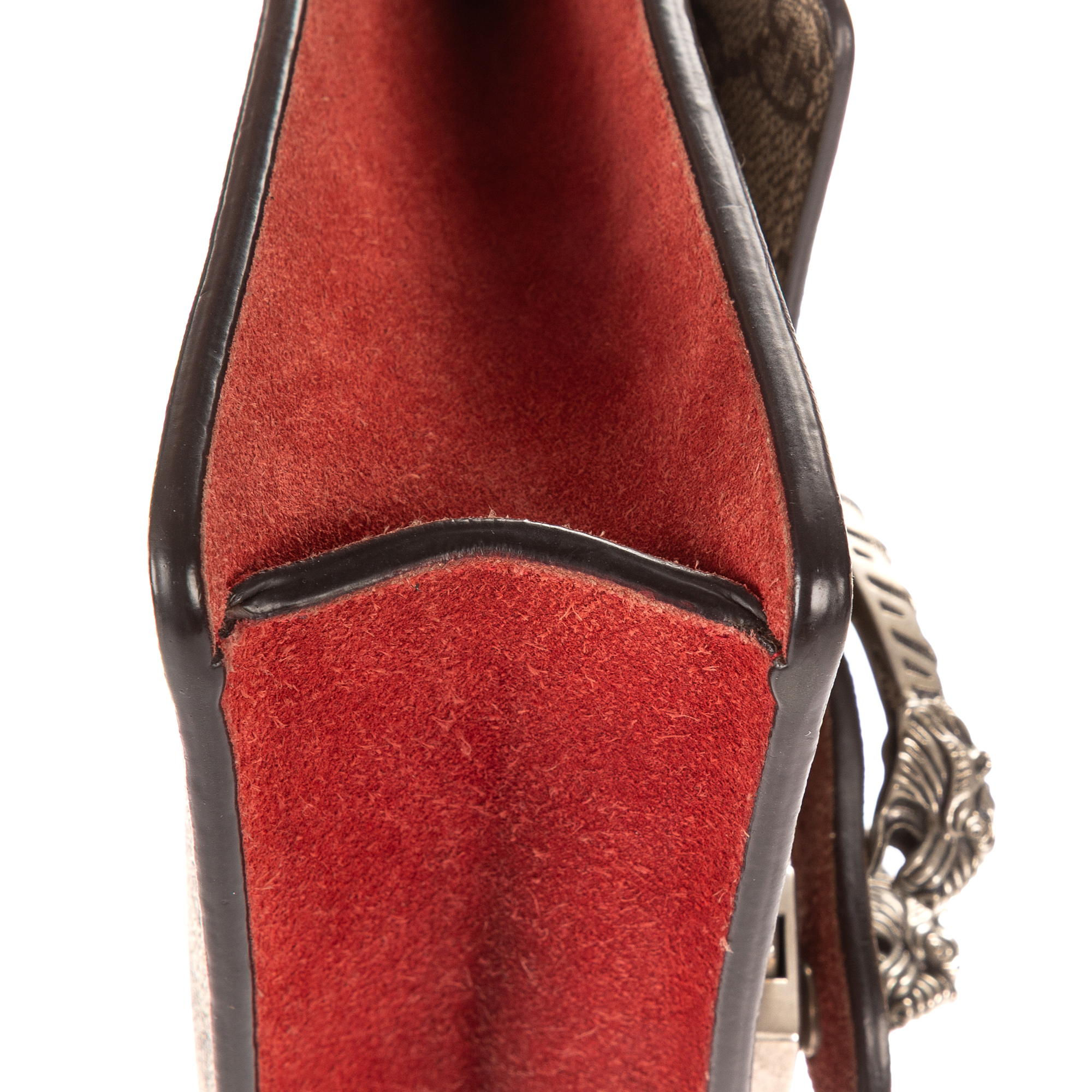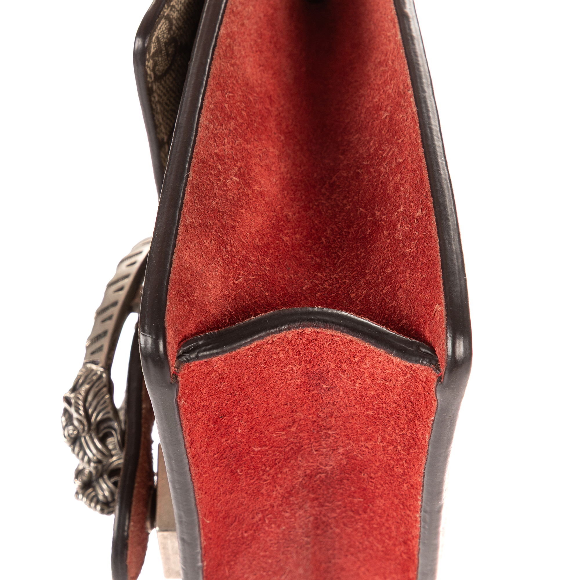 Gucci Shoulder Bag Dionysus Mini in Beige/Red Supreme Coated Canvas/Suede Leather and Silver hardware. The product is in Excellent Condition (A).